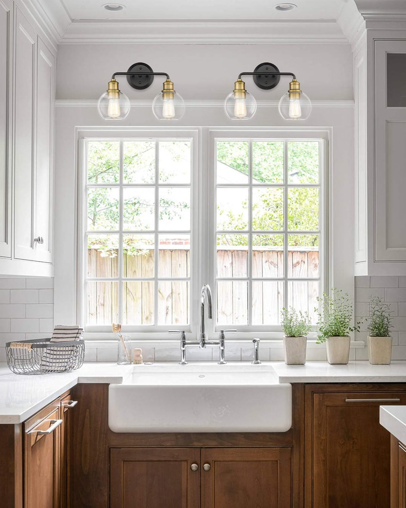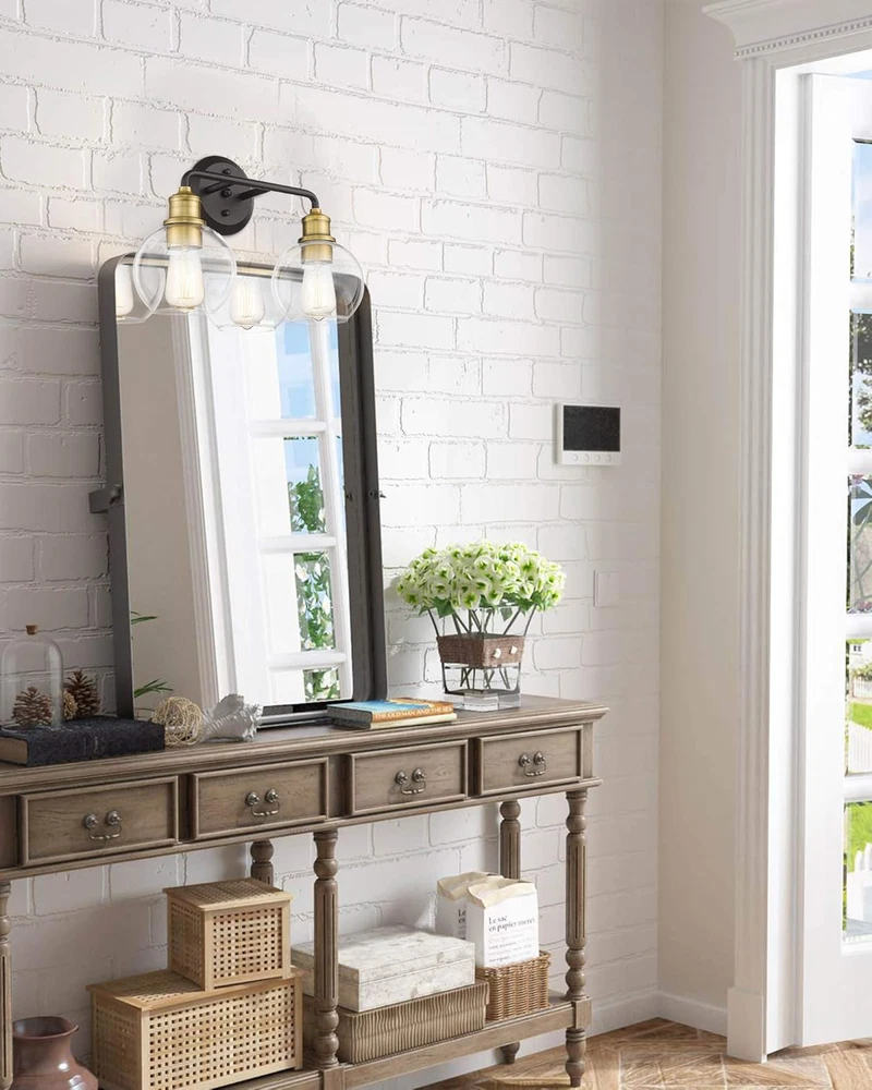 Store New Arrivals Add to Favorite View Feedback Contact 2-Light Bathroom Vanity Lights, Bathroom Light Fixtures over Mirror with Clear Glass Shade, Matte Black & Antique Brass Finish Farmhouse Wall Lights, KW-7221-2 Description Item model number KW-7221-2 Light Source Type LED, Incandescent, Compact Fluorescent Light (CFL) Style Contemporary Number of Items 1 Power Source AC Fixture Type Non Removable Number of Light Sources 2 Control Method Remote Warranty Type Limited Theme Vintage Contemporary Batteries Included? No Lighting Method Adjustable Maximum Compatible Wattage 60 Watts Specification Met UL Controller Type Push Button Unit Count 1 Count Room Type Bathroom, Wash Room, Powder Room Assembly Required Yes Product Dimensions 16"L x 7"W x 11"H Material Glass, Metal Installation Type Flush Mount Model Name KW-7221-2 Finish Type Matte Black & Antique Brass Specific Uses For Product Home Bulb Features Dimmable Indoor/Outdoor Usage Indoor Country of Origin China Batteries Required? No Item Weight 2.43 pounds Light fixture form Vanity Special Features This lamp can be mounted facing up or down to suit all kind of mirror and lighting need. Special Feature This lamp can be mounted facing up or down to suit all kind of mirror and lighting need. Bulb Base E26 Shade Color Clear Mounting Type Wall Mount Color Black Wattage 60 watts Voltage 120 Volts Plug Format A- US style Recommended Uses For Product Indoor, Bathroom, Vanity Shade Material Glass Finish types Matte Black & Antique Brass Size 2 Light ANTIQUE DESIGN: This bathroom vanity lighting features a vintage appearance highlighted by matte black & antique brass finish with clear glass lampshade, perfect suit for industrial, farmhouse, rustic, traditional, vintage styles home decor. PERFECT ADDITIONS: This lighting fixture is ideal for bathroom vanity, dressing table, mirror cabinets, vanity table, powder room, kitchen sink, and bedroom, living room, dining room, foyer, hallway, staircase, coffee room, restaurant, etc DIMENSIONS MEASURE: 15.5”(L) x 6.5”(W) x 11”(H). This vanity light fixture can be mounted facing upward or downward to meet all kinds of mirror and lighting needs BULB REQUIREMENTS: Compatible with E26 medium base LED, Incandescent, CFL light bulbs. 2 x ST64 LED Edison light bulb recommended (Max 60W, bulbs and dimmer are NOT included). EASY TO INSTALL: Including all required accessories and illustrated instruction. The black and gold bathroom lights can be installed quickly Product Description ABOUT US We offer the best prices around on high quality products. Our E-store includes media such as books, movies, music and games while offering electronics, toys, sporting apparel, clothing, tools, general home, garden items and more. SHIPPING We are always working hard to ensure your package arrives as soon as possible. Please understand that some factors like weather, high postal traffic, and the performance of shipping companies are outside of our control. We offer free shipping to the lower 48 states and ship within 2 business days of payment, usually sooner. We do not accept P.O. Boxes. Please provide a physical address. For shipping outside of the continental USA, we only use eBay's Global Shipping Program.The item is shipped to KY and then sent to the rest of the world. International customers are responsible for all duties and taxes. Continue to check out in order to calculate costs for shipping the item to your country. Messages regarding eBay's Global Shipping Program MUST be directed at eBay EXCLUSIVELY. RETURNS We offer a 30-Day Return Policy on items which you are not completely satisfied with. You have the option for a full-refund or an exchange of the item. No returns are available on items shipped outside of the USA. PAYMENT We accept PayPal. CONTACT US This page content is yet to come Please ad us to your favorite seller and visit again later Thank You CUSTOMER SATISFACTION We try our very best to make sure every customer is completely satisfied. If there's a problem, message us! We're happy to help. WE ACCEPT Copyright © 2021 AutoDS. | All Rights Reserved