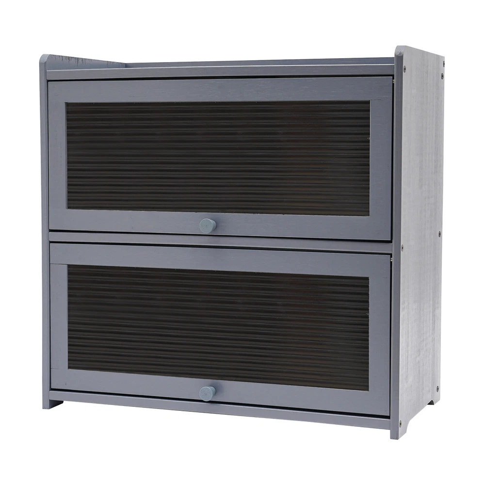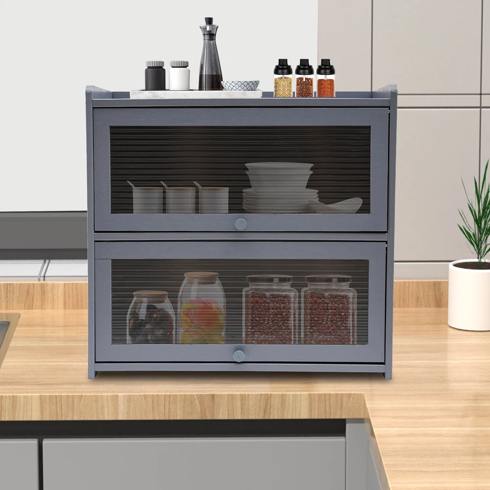 This stylish 2-tier storage cabinet is a game-changer for organizing small spaces! The sleek gray bamboo and acrylic design fits perfectly in kitchens, bedrooms, or studies. I love how sturdy it is—each shelf holds up to 15kg, perfect for my books, cosmetics, and kitchen essentials. Assembly was quick, and the modern rectangular shape looks great on countertops. Super versatile and surprisingly spacious for its compact size!