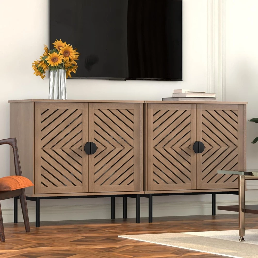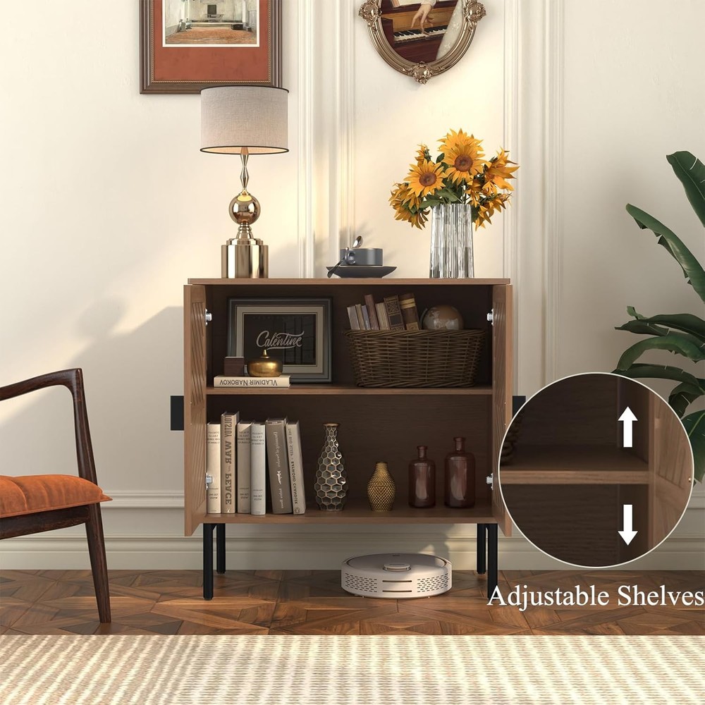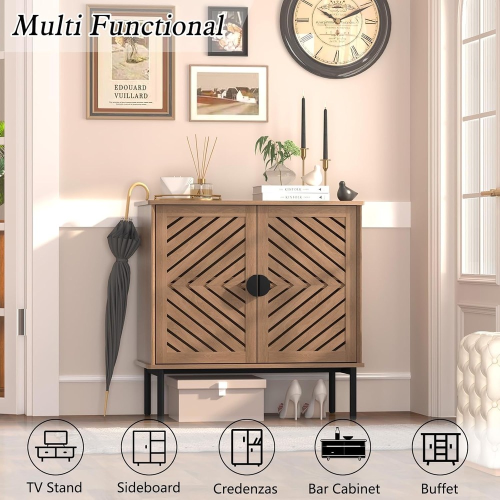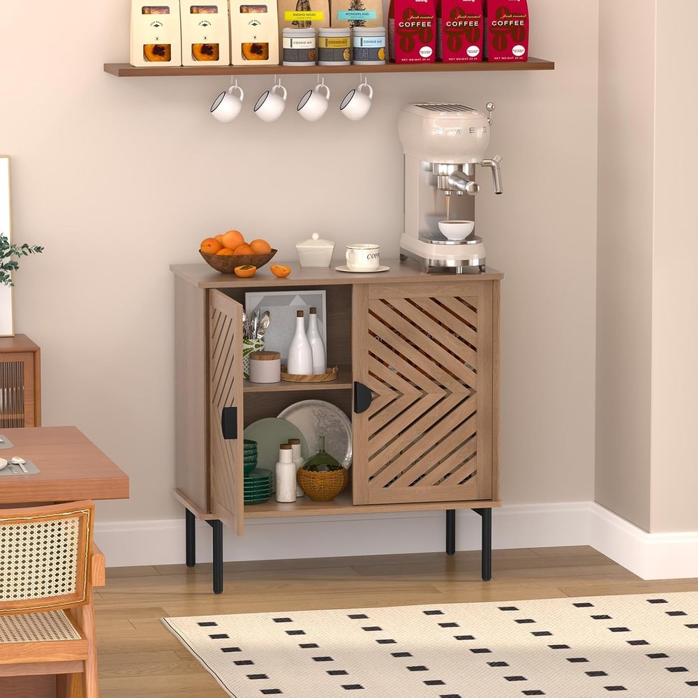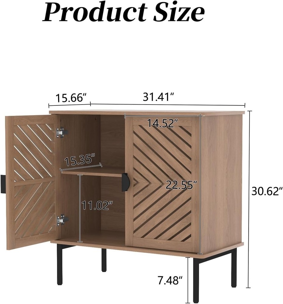 Product Description About this item Sleek Design - This buffect cabinet features a modern and contemporary design that provides a great focal point in your space. The hollow doors contribute to its aesthetic appeal, and goes with the coloring and style perfectly. The metal handle adds a modern and industrial vibe, while ensuring durability. Versatile Storage Solution - The accent cabinet offers ample storage space for your living room, kitchen, dining room, or entryway. Its adjustable shelves allow you to customize the interior to fit your specific needs, making it ideal for storing various items such as books, dinnerware, and other decorative accessories. Seamless Integration into Your Home - The sideboard cabinet with storage is designed to seamlessly blend into any interior style. Whether your home is decorated in a minimalist, modern, or traditional style, this decorative credenza will complement your existing furniture and enhance the overall aesthetic of the space. Durable Construction - Crafted with high-quality materials, this credenza is built to last. The sturdy construction ensures stability and durability, making it a reliable storage solution for years to come. The adjustable shelves are made to support heavy items without sagging, providing peace of mind and convenience. Easy Assembly - With clear instructions, the assembly process of this storage cabinet is so easy. In addition, the smooth surface make maintenance a breeze. Simply wipe it clean with a damp cloth to keep it looking fresh and new. If you encounter any problems during assembly, please feel free to contact us. Previous page Multiple Uses Multiple Uses Next page Details Different Scenes Previous page Next page Different Size