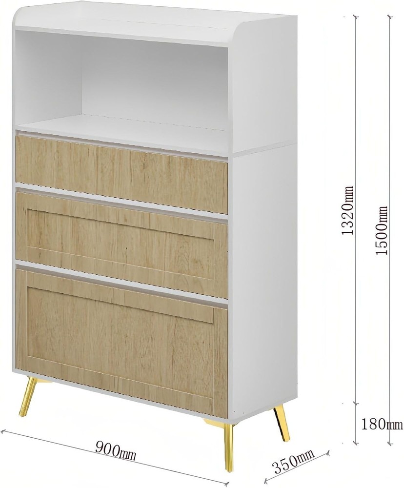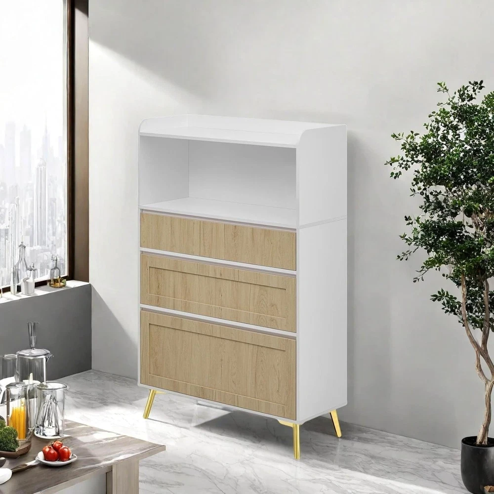 Product Description About this item MODERN STORAGE SOLUTION: This versatile white kitchen hutch combines style and functionality with sleek lines and minimalist design. Features two smooth-gliding drawers, a textured glass cabinet door, and multiple open shelves to organize and display your essentials INTEGRATED POWER ACCESS: Built-in USB ports and electrical outlets in the upper section let you conveniently charge devices or power small appliances, making this cabinet perfect for modern living needs while keeping cords organized QUALITY CONSTRUCTION: Crafted from solid pine wood frame with MDF and particle board panels for reliable stability. Black hardware accents provide elegant contrast against the clean white finish, complementing any home décor VERSATILE PLACEMENT OPTIONS: Measuring 47.24"W × 15.75"D × 59.06"H, this slim sideboard fits perfectly in kitchens, dining rooms, hallways or living spaces as a buffet server, pantry cabinet, entertainment center, or decorative display unit AMPLE STORAGE CAPACITY: The combination of enclosed storage behind the ribbed glass door, two spacious drawers, and multiple open shelves provides 109 lbs capacity Specifications: -Main Material: Particle Board+MDF+Pine Wood -Product Dimensions: Assembled Length (in.):35.43 Assembled Width (in.):13.78 Assembled Height (in.):59.06 -Product Weight (lbs.):90.00 -Assembly Required: Yes 1. The color of the actual product may differ from the image due to the lighting or the monitor’s display. 2. Manual measurement has been used; there may be some reasonable error. Package includes: 1 x Storage Cabinet