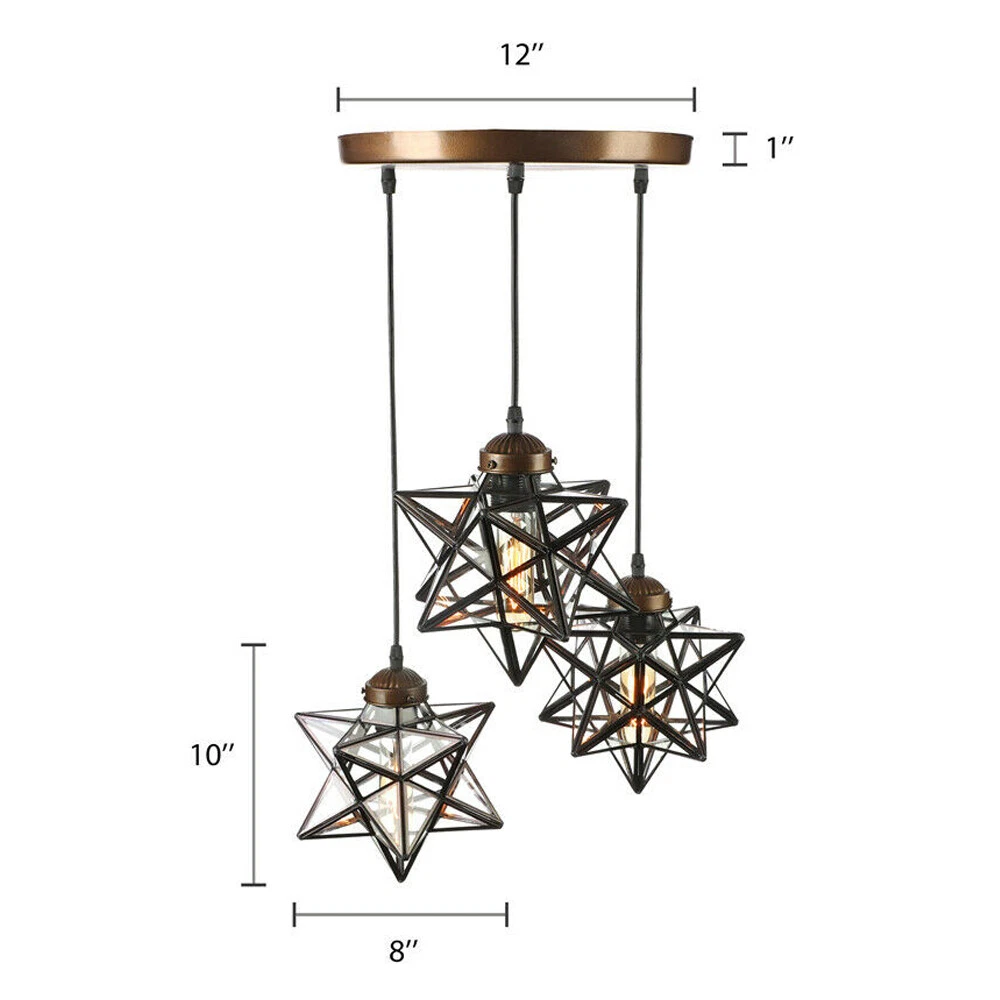 Absolutely love this 3-light Moravian star pendant! The brown metal and glass design adds a warm, modern touch to my dining area. The adjustable cord makes installation easy, and the sturdy foam packaging ensured it arrived safely. Perfect for creating a cozy yet stylish vibe in cafes, bars, or even at home. Just add LED bulbs, and it instantly elevates any space! Highly recommend for its quality and elegant look.