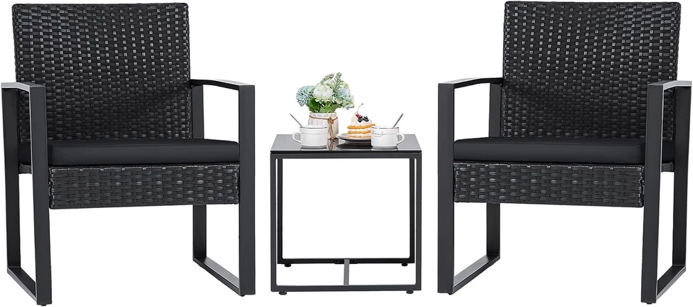 Simple & Practical: Closed armrest and leg design makes the chair simple but modern and no need to worry about the rattan falling off when they are used after a long time. Sturdy & Durable: The powder coated steel frame are rust-proof and high-quality hand woven weather-resistant PE wicker won't fade.Each seat supports up to 250 pounds. Upgraded Comfort: The wide and deep chairs cushioned by very soft padded seat cushions will make you forget your fatigue and enjoy your leisure time completely. Widely Used: The set is simple and stylish,it will be perfect for decorating your yard, poolside, balcony, patio and home.You won't regret buying it. Easy to Clean: The cushions feature removable black polyester covers for easy cleaning;Tempered glass on the table adds more convenience to clean if any drinks drops on it. Product Description 1 Terrace 2 Patio 3 Porch Product Details Product Dimension Hot Products Add to Cart Add to Cart Add to Cart Add to Cart Add to Cart Customer Reviews 4.3 out of 5 stars 25 4.7 out of 5 stars 37 4.2 out of 5 stars 484 4.4 out of 5 stars 45 4.5 out of 5 stars 32 4.5 out of 5 stars 2,561 Price $74.99 $ 74 . 99 $99.99 $ 99 . 99 $119.99 $ 119 . 99 $99.99 $ 99 . 99 — $109.99 $ 109 . 99 Material Wood Rattan Wood Wood Plastic Metal & Rattan Assembly Required ✔ ✔ ✔ ✔ ✔ ✔ Optional Color Color Size None Color Color Scene Indoor/Outdoor Indoor/Outdoor Outdoor Outdoor Indoor/Outdoor Outdoor Suitable For Lounge Lounge Lounge Lounge Lounge Lounge