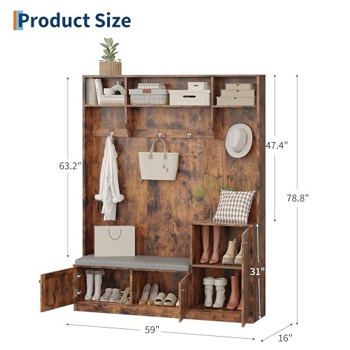 Return Policy Fast Delivery Trusted seller 3-in-1 Modern Entryway Bench with Coat Rack, Hall Tree with 4 Hanging Hooks, 3 Open Compartments & Adjustable Shelf, Coat Rack Freestanding for Entryway, Living Room, Rustic Brown Product Description Ample Storage for an Organized Entryway: Features 2 large cabinets, 3 versatile shelves, and 4 double hooks, this hall tree with bench and shoe storage keeps coats, hats, shoes, and daily essentials organized, perfect for entryway, hallway, or mudroom Space-Saving Design: Enjoy true space efficiency with this 3-in-1 hall tree with bench and shoe storage, perfectly sized at 59.06''x15.75''x78.74'' for narrow entryways. The sleek minimalist design maximizes storage and style in small rooms or apartments Comfortable Seating & Shoe Organization: Enjoy a high-density foam cushioned bench for comfortable shoe changes, while two enclosed cabinets keep footwear organized and out of sight, helping maintain a clutter-free entryway every day Modern Minimalist Design: Contemporary hall tree with sleek lines and classic details complements any entryway or home decor, blending style and function, a timeless choice that elevates your home's first impression Safe & Easy Assembly: Comes with an anti-tipping device for extra safety, clear instructions and all necessary parts make assembly simple, allowing you to set up your entryway shoe holder and coat rack quickly and enjoy a clutter-free, organized space Shipping Returns Payment Shipping Shipping is FREE to all addresses other than APO/PO boxes in the lower 48 states. All our stock ships from US-based warehouses. Shipped via USPS or UPS (depending on location and package weight) Unless stated otherwise, all orders will ship within 24-72 hours of your payment being processed. Check our feedback to see the great reviews of FAST shipping we offer. Returns Seller does not accept returns Payment We currently accept payment via eBay managed payments only. Once payment is cleared, we will dispatch your shipment within 1-3 business days. Please refer to the "Shipping" tab for more information regarding shipping speed to your destination.