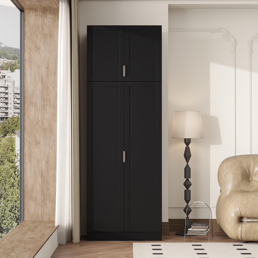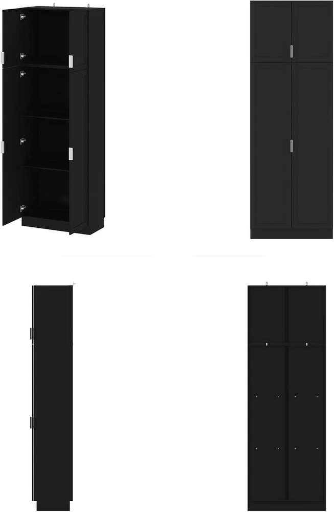 Product Description About this item • Minimalist Storage Cabinet: This cabinet is a pure black tall cabinet with a simple and elegant appearance. It has a 4-door design for the upper and lower zones, paired with silver long handles to add a touch of sophistication. The cabinet body is tall and slender, combining a concise shape with practical functions to create a calm and modern atmosphere • Sturdy Construction: This modern cabinet boasts high-quality materials. The main body uses P2 grade MDF, which is robust and durable. It’s equipped with aluminum handles, featuring a delicate and sturdy texture. Metal hinges are adopted at the cabinet door joints, with strong load-bearing capacity and smooth opening • Large Capacity: This bookcase with doors features an ingenious storage design. The upper part is a separate small cabinet, ideal for storing small items. The lower large cabinet has three internal shelves, with neat space to store books, sundries, etc • Versatile: This tall bookcase is highly versatile. It can serve as a bookshelf, with 4 layers for categorized book storage. It also works as a storage cabinet for sundries and collections. Suitable for the living room to decorate corners, for the study to organize books, and for the office to store documents, switching scenarios flexibly to meet diverse needs • Simple to Install: Each assembly part of the bookshelf is numbered accordingly, just follow the instructions step by step to get a large storage bookshelf Timechee Storage Cabinet Practical, Modern, Sturdy This large black storage cabinet makes storing books and sundries a breeze. It fits various spaces, being both practical and stylish! Specifications: Material: P2 Grade MDF Color: Black Overall Dimensions: 16.4"D x 31.5"W x 90.6"H Metal Handles Sturdy Connection Thickened Base Anti-tipping Kit Timechee Storage Cabinet Color Black Overall Dimensions 16.4"D x 31.5"W x 90.6"H Material P2 Grade MDF Package Includes 1 x Storage Cabinet, 1 x Instruction On Aug 15, 2025 at 00:27:29 PDT, seller added the following information: