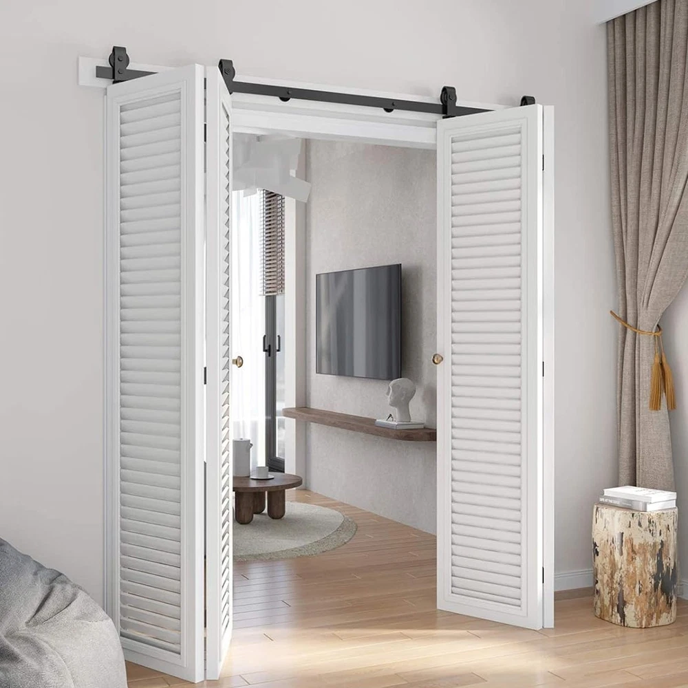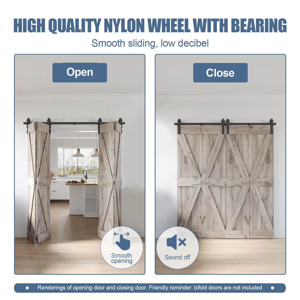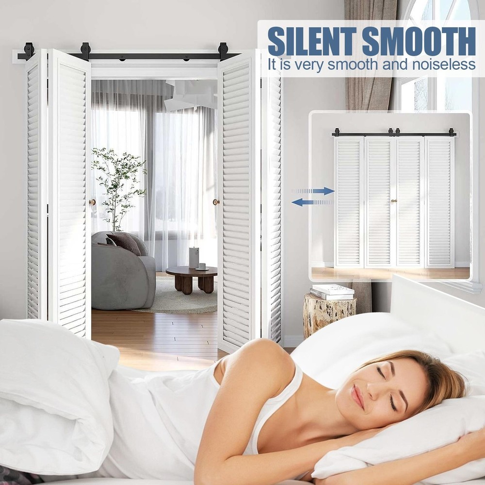 64in Bifold Sliding Door Track,Sliding barn door hardware kit,Black,Brand New-