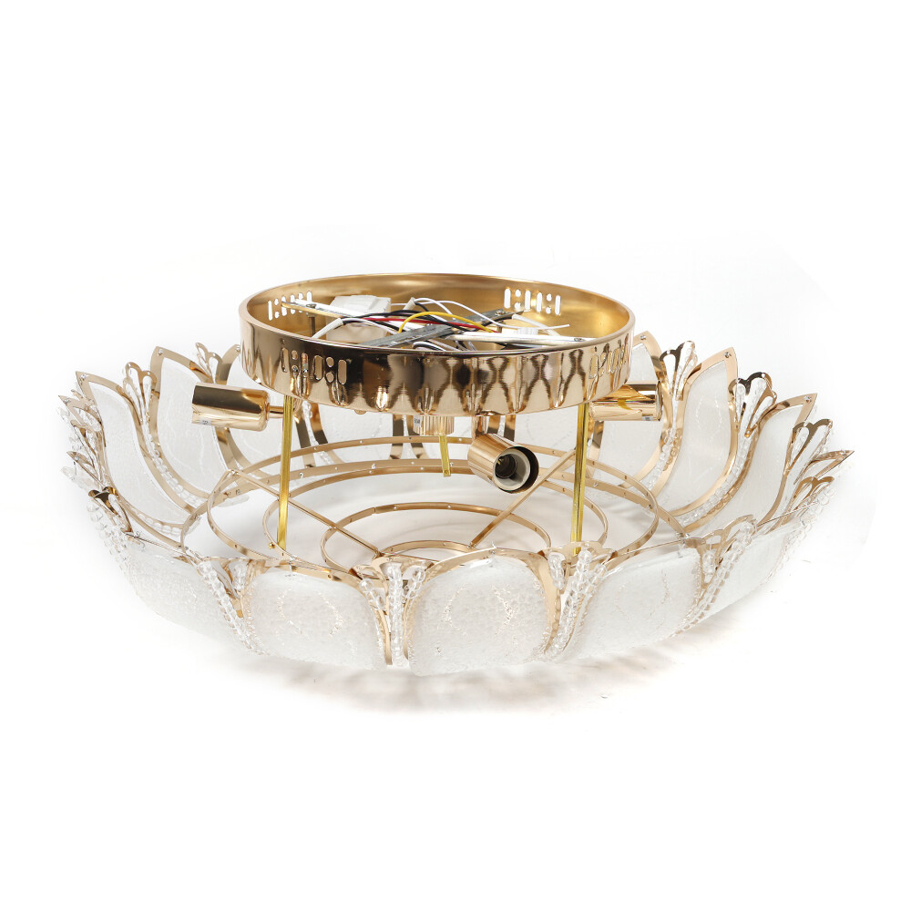 Specifications: Pure copper motor(15 years warranty)+polishing Model: with remote control (Three gears brightness ) • Type:Flush Mount • Material: Crystals+ABS+Metal • Style:Modern • Color:Gold • Suggested Room:Fit Dining Room, Bedroom, Living Room • Suggested Room Size:18-23㎡ •Diameter: 60cm/23.5" • Mount type:Flush In order to avoid shipping damage, the glass sheet is not installed, you need to install it yourself • Bulb Base:E12 (Bulb NOT Included) • Voltage: 110V • Frequency: 50-60 (Hz) • Power:MAX 40W 💖welcome to aaertu~💖 Notice: You Need to Buy E12 Bulbs by Yourself; In Order to Avoid Shipping Damage, the Glass Sheet Is Not Installed, You Need to Install It Yourself. Description Modern Lotus Crystal 7-Head Pendant Light Flush Mount 23.5" Chandelier Remote Control Specifications Model: with Remote Control (Three Gears Brightness ) Pure Copper Motor(15 Years Warranty)+Polishing Type: Flush Mount Material: Crystals+ABS+Metal Style:Modern Color:Gold Suggested Room: Fit Dining Room, Bedroom, Living Room Suggested Room Size:18-23㎡ Mount Type:Flush Bulb Base:E12 (Bulb Not Included) Voltage: 110V Frequency: 50-60 (Hz) Power:Max 40W Number of Lights: 7 Lights What's Included? 1x Chandelier With Remote Control Features&Highlights High Good Material Made of Crystals+ABS+Metal Remote Control Prepared With Remote Control to Adjust Brightness Elegant Design With Elegant 7 Gold Lotus Leaves Design and Crystal Drops Three Gears Brightness 3 Adjustable Brightness Support With Remote Control Easy Installations Flush Mount installations,instrucions Sheet Provided Wide Applications Fit Dining Room, Bedroom, Living Room *Pure Copper Motor(15 Years Warranty)+Polishing *Power:Max 40W *Number of Lights: 7 Lights *Material: Crystals+ABS+Metal *Remote Control Support INSTALLATIONS Payment Delivery details Terms of sales About us Contact us Payment We accept ebay payment 。 Fees such as import duties, taxes are not included in the item price or shipping costs. These charges are the buyer's responsibility. Delivery details Shipping: 2-9 working days to: USA Terms of sales We maintain high standards of excellence and strive for hundred percent customer satisfaction. Feedback is very important to us. We hope that you contact us immediately before you give neutral or negative feedback, so that we can address your concerns. It is impossible to address issues if we do not know about them! About us Your satis faction is our ultimate goal. We work hard to earn your trust and future business. Our certified technicians have tested each item before shipping. The unit comes with 1 year limited warranty on all manufacturing defects. a) If you receive a defective item, you may return it or ask for a discount. Please contact us within 14 days after you receive the package. b) What you returned must be intact and in its original packaging as re? u. Customer is responsible for shipping costs of the returned item. c) We will cover the cost of shipping back t with the shipping rate indicated in the registration page. We will send you a new unit or refund the full payment you paid. Thank you. Contact us Business Hour Business Hour: Monday To Friday: 8:30 AM to 5:00 PM (Beijing China time) Due to time zones, our reply to your questions may not be immediately. But within above working time, we will reply your email within 24 hours. If it's non-workdays, please kindly be patient and wait till Monday. Please contact us with ebay message. Please feel free to contact us if you have any questions. Monday To Friday: 8:30 AM to 5:00 PM (Beijing China time) Due to time zones, our reply to your questions may not be immediately. But within above working time, we will reply your email within 24 hours. If it's non-workdays, please kindly be patient and wait till Monday. Please contact us with ebay message. Please feel free to contact us if you have any questions.