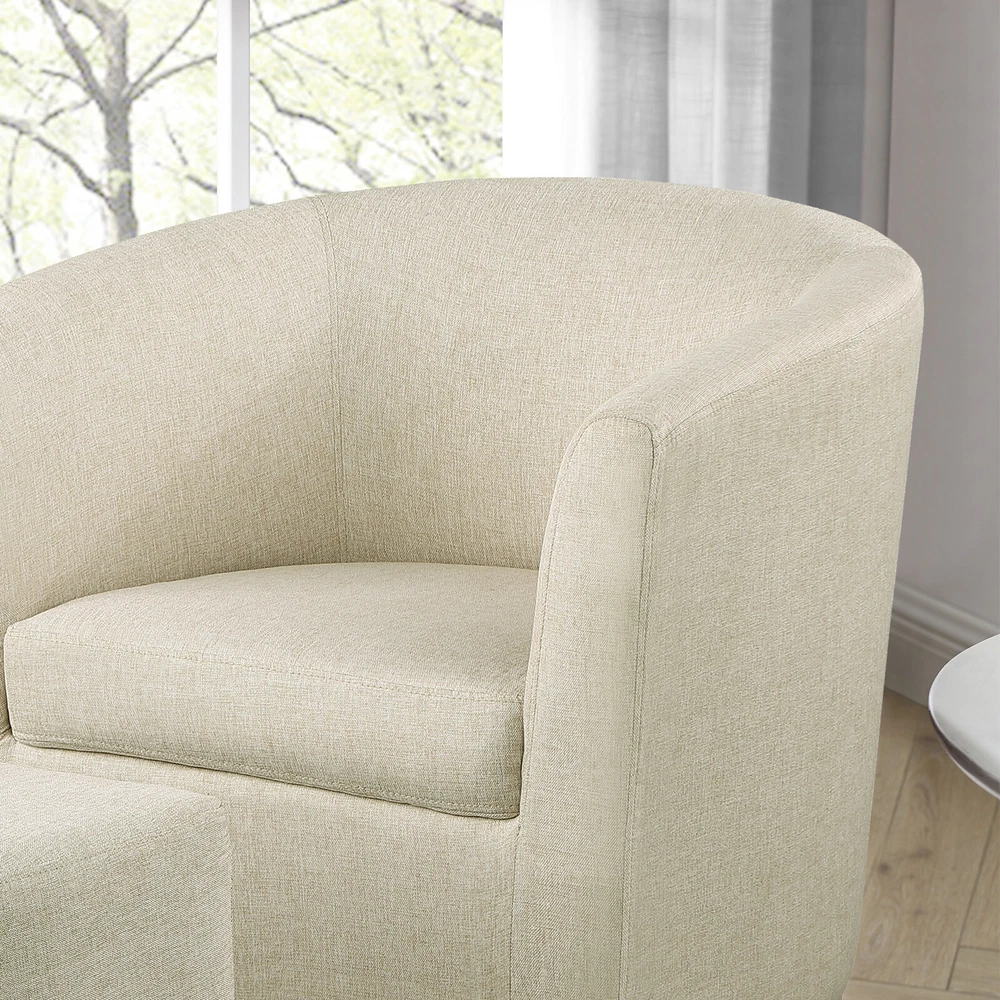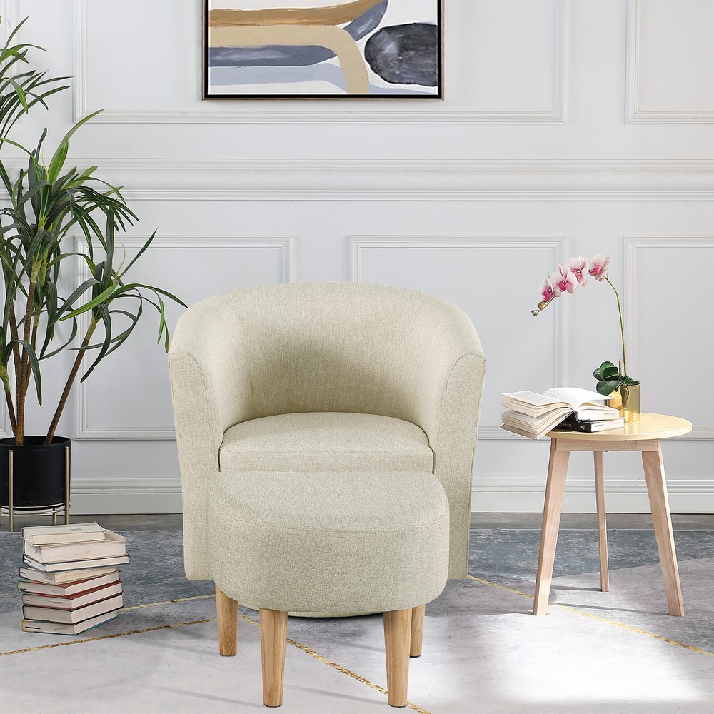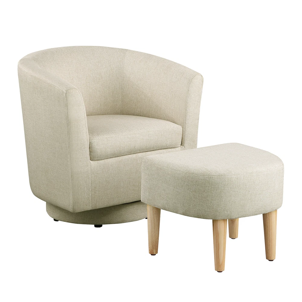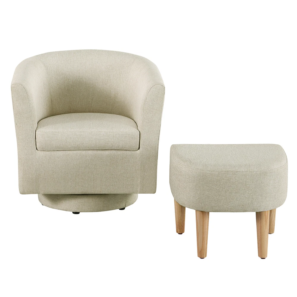Modern Accent Swivel Armchair Fabric Single Sofa w/Ottoman Chair for Living Room Features: Comfortable Stylish Modern Swivel Accent Chairs with Ottoman: DAZONE modern comfy accent swivel chair with tub barrel style backrest makes you relieve your tiredness, makes a perfect addition to your living room, bedroom, den, recreation area, guestroom, waiting room small spaces apartment, office or studio. Sturdy Barrel Chair with Ottoman: This DAZONE accent chair for living room make of solid wood legs, soft sponge and sturdy wooden frame to ensure durability and stability of this reading chair The heavy duty 360-degree swivel base features Made of high-quality iron with steel beads accent base detail & allows great flexibility in the home. Upholstered accent swivel chair for bedroom: Ergonomically designed soft armrest, comfortable and breathable sherpa fabric of this DAZONE accent sitting chair to enjoy your comfy modern club chair style in your space and adds a touch of beauty to your home Easy to Install Living Room Chairs: It is esy to set up this small comfy corner chair within minutes. Simple assembly is required. Only need to screw the solid wood legs to DAZONE arm chair with bare hands and done Size & Load Capacity of this sherpa Chair and Ottoman Set: 26.4"(L)"*25.2"(W)*27.6"(H) ; ottoman:18.5"(L)*17"(W)*15.4"(H) ; Iron Plate Size:7.87"(L)"*7.87"(W)*0.79"(H), and weight capacity: 330 lbs. Please note it. Specification: Color: Beige Leg Material: Solid Wood Frame Material: Solid Wood Style: Curved Back Barrel Swivel Chair with Ottoman Chair with Ottoman Material: Iron + Wood + Sherpa fabric +Sponge Assembly Required: Yes(only Ottoman leg) Seat Depth:19.1" Seat Height:18" Weight: 46 lbs Curved Backrest Chair: 26.4"(L)"*25.2"(W)*27.6"(H) Ottoman: 18.5"(L)*17"(W)*15.4"(H) Iron Plate Size: 7.87"(L)"*7.87"(W)*0.79"(H) Weight capacity:330lbs Package Included 1* Swivel Accent Chair with Ottoman Set Contact us: Payment: Shipping: Warranty Return Contact us: We have always been trying to provide the best service and reliable products for every customer, however, accident may happen sometimes, please contact us to resolve any issue before leaving a negative feedback. Payment: 1. All payments must be prepaid before shipping. 2. We only accept payment via PayPal. Please kindly check if you can do the payment via PayPal before placing an order. Shipping: 1. Item will be shipped same business day if paid 4 pm EST 1 pm PDT (except weekends and holidays) and shipped from US. 2. Orders from the United States will all be shipped out via starnding shipping or economy shipping. The shipment usually takes 3-7 business days(Saturday and Sunday excluded), if you need the item urgently, please contact us for detail before purchase. Orders from overseas will be shipped via DHL Express, 3-5 business days. 3. Local pick up is not available. Warranty . The warranty shall not apply to the following circumstances: a) Damage caused by undue wear&tear, misuse, improper installation or operation, neglect, accidents. b) Damage caused by natural disasters, flood, fire, lightning or pollution. c) If item was opened, any parts removed or repaired by any unauthorized person. Return (1).We stand behind our items and offer 60 days warranty. All items are in brand new condition unless specified otherwise elsewhere in the description. (2).All returns - defective or otherwise - have to be preauthorized. Please contact us to get an authorization and returning address before sending the item back.If an item is returned because of an undeliverable shipping address, buyer agrees to pay the cost for re-shipment. (3).Please note that If the return/replacement is not a result of our mistake (not defective or wrong item), the buyer is responsible for return shipping, as well as a 20 percent restocking fee. (4).Replacement or refund will be made upon receipt of the returned item. If you do not want to wait for the replacement, you can just reorder one and then send the first one back for a refund.