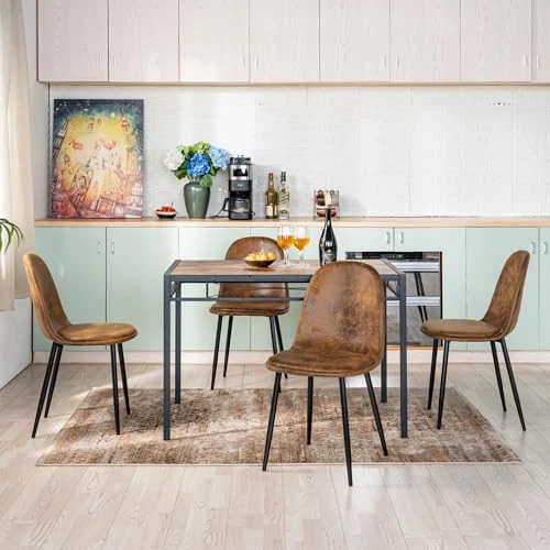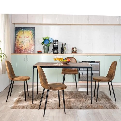 These chairs are a fantastic addition to any dining space! The modern armless design looks sleek and fits perfectly with my table. The soft cushions are super comfortable, and the durable metal frame feels sturdy. The suede brown color adds a touch of elegance, making them ideal for both casual meals and gatherings. Fast delivery and great customer service made the purchase even better—highly recommend!