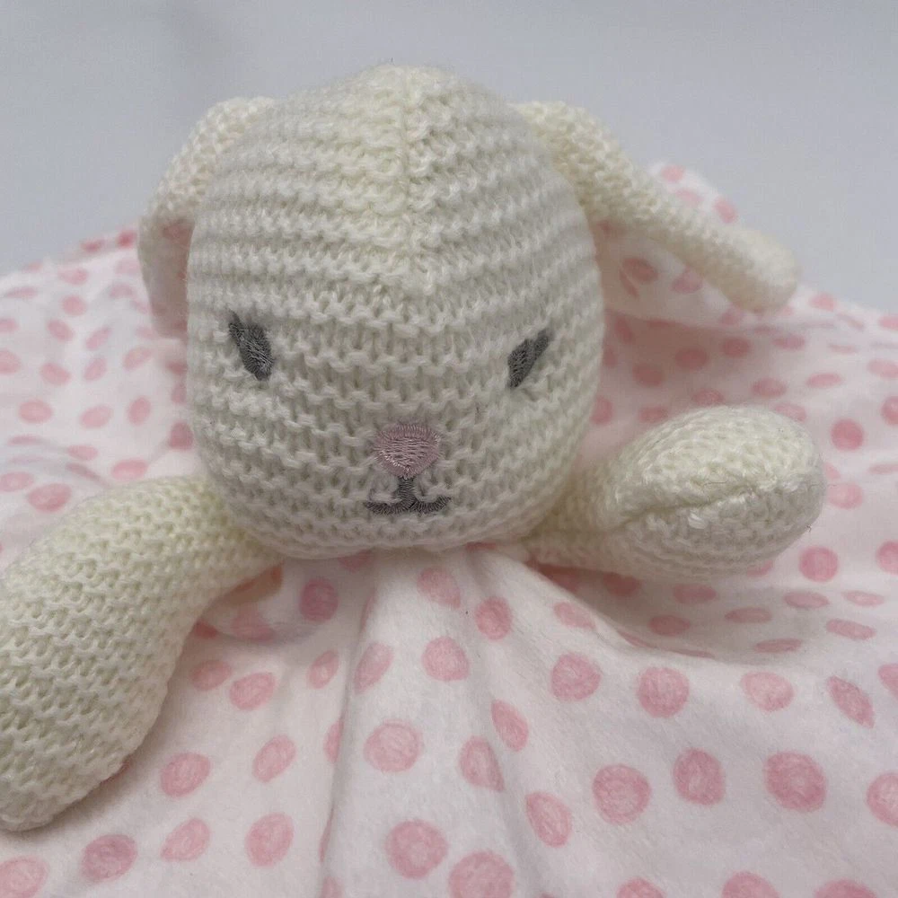Enhance the snuggling experience of your little one with this lovely security blanket from Modern Baby. The pink dotted snuggle blankie, made of plush material, is designed to soothe sore gums and provide ultra-soft comfort. The bunny rabbit theme adds an adorable touch to this baby blanket, perfect for your little one. Measuring 12x12 in size, this security lovey is machine washable and easy to care for. It comes with a teether , rattle and features a bunny rabbit character family. Previously owned, cleaned (non fragrance) and in very good condition. Sold as seen in pictures, please feel free to reach out with any questions prior to purchase. Thank you!