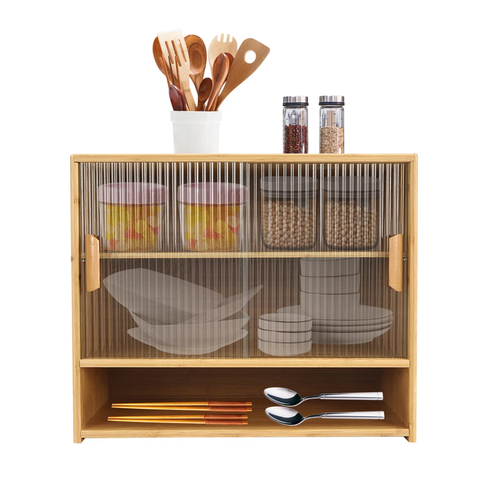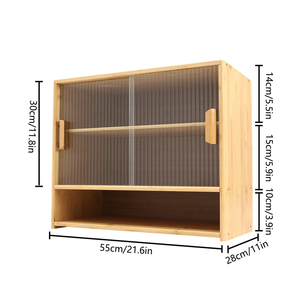 Specification Material: Bamboo, Glass, Laminated Board Color: Log-colored Process: Painting Style: Modern Shape: Rectangular Assembly Required: Yes Number of Tiers: 3 Installation Type: Desktop Installation Maximum Load Per Tier: About 15kg/33.06lbs Product Size: 55*28*46 cm/ 21.6*11*18.1 in Cabinet Door Height: 30cm/11.8in First Tier Height: 10cm/3.9in Second Tier Height: 15cm/5.9in Third Tier Height: 14cm/5.5in Package Included 1 * Small Bamboo Kitchen Pantry Sideboard All Accessories for Installation 💖 Fast Shipping & High Quality 💖 Description Storage cabinets are an integral part of our lives. Whether it's in your home, office, or campground, storage cabinets play a vital role. Our small bamboo kitchen pantry sideboard is designed with three shelves and two-way sliding doors to keep your belongings organized and provide a simple living experience. It can be adapted to any home style and adds elegance to your room. Specification Material: Bamboo, Glass, Laminated Board Color: Log-colored Process: Painting Style: Modern Shape: Rectangular Assembly Required: Yes Number of Tiers: 3 Installation Type: Desktop Installation Maximum Load Per Tier: About 15kg/33.06lbs Product Size: 55*28*46 cm/ 21.6*11*18.1 in Cabinet Door Height: 30cm/11.8in First Tier Height: 10cm/3.9in Second Tier Height: 15cm/5.9in Third Tier Height: 14cm/5.5in Package Included 1 * Small Bamboo Kitchen Pantry Sideboard All Accessories for Installation Key Features High-quality Material: This product is made of high-quality bamboo, glass, and laminated board, with high hardness, high abrasion resistance , strong pressure resistance , and long service life. Beautiful and Generous: Bamboo cabinet combines beauty and practicality in one. The glass door adopts a vertical strip-type pattern, making it transparent and with a hazy aesthetic. It blends well with all styles of home décor, adding a touch of rustic elegance to your space. Multiple Layouts: The three-tier design and open platform (21.6*11 inches) provide ample storage space to meet your various storage needs. High Stability: The sturdy rectangular structure provides stability and durability to the product. With uniform force, each tier can easily hold 33.06 lbs of goods. Easy to Clean: The smooth surface and simple product structure make it easy to clean. You just need to wipe it with a wet rag. Easy to Install: The simple product structure, a detailed electronic English manual, and complete installation parts allow you to install it quickly and accurately. Thoughtful Design: The removable laminate can be adjusted up and down by 2.76 inches to accommodate different sizes of cookware, thus providing more convenience for your storage. Space-saving: The bi-directional sliding doors are designed with smooth tracks that open and close smoothly and do not take up space in the aisle. Dustproof : Seamless laminate backs and glass doors provide effective dust proofing to keep cookware clean and tidy. Details Wooden Handles: The wooden handles are comfortable to hold and make sliding the glass door easier. Smooth Edges: The rounded edges are smooth and flat, avoiding accidental scrapes and making it safer to use. Application The product can be used in kitchens, bathrooms, bedrooms, and living rooms, and also as bedside cabinets, sideboards, storage cabinets, etc. Notes 1. Bamboo wood products are from natural materials, inevitably there will be different textures, bamboo knots, bamboo halos, bamboo gaps, bamboo spots, and other phenomena, which will not affect the beauty and use. 2. Please do not use corrosive cleaning agents or hard objects to clean, it is recommended to use a soft cloth to wipe. 3. Bamboo wood products should not be placed in the sun for a long time to avoid cracking and deformation, and should not be placed in a dark and humid place for a long time to avoid mildew. 4. Please keep accessories away from babies, children, and pets during installation. 5. Please allow the slight color difference caused by the shooting light and the 1-3 cm error due to manual measurement, and make sure you do not mind before ordering. Payment Delivery details Terms of sales About us Contact us Payment We accept ebay payment 。 Fees such as import duties, taxes are not included in the item price or shipping costs. These charges are the buyer's responsibility. Delivery details Shipping: 2-9 working days to: USA Terms of sales We maintain high standards of excellence and strive for hundred percent customer satisfaction. Feedback is very important to us. We hope that you contact us immediately before you give neutral or negative feedback, so that we can address your concerns. It is impossible to address issues if we do not know about them! About us Your satis faction is our ultimate goal. We work hard to earn your trust and future business. Our certified technicians have tested each item before shipping. The unit comes with 1 year limited warranty on all manufacturing defects. a) If you receive a defective item, you may return it or ask for a discount. Please contact us within 14 days after you receive the package. b) What you returned must be intact and in its original packaging as re? u. Customer is responsible for shipping costs of the returned item. c) We will cover the cost of shipping back t with the shipping rate indicated in the registration page. We will send you a new unit or refund the full payment you paid. Thank you. Contact us Business Hour Business Hour: Monday To Friday: 8:30 AM to 5:00 PM (Beijing China time) Due to time zones, our reply to your questions may not be immediately. But within above working time, we will reply your email within 24 hours. If it's non-workdays, please kindly be patient and wait till Monday. Please contact us with ebay message. Please feel free to contact us if you have any questions. Monday To Friday: 8:30 AM to 5:00 PM (Beijing China time) Due to time zones, our reply to your questions may not be immediately. But within above wor