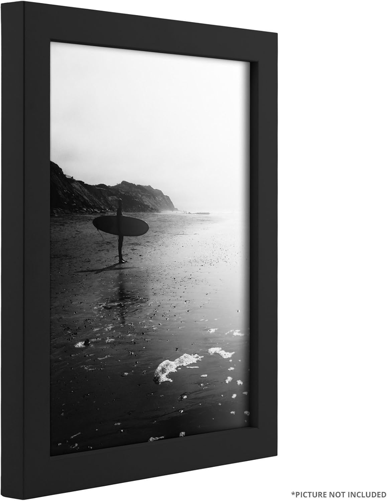 Contemporary style; black; smooth composite finish Frame includes: glass, rigid black backing and pre-attached stamped hanging hardware Frame holds a 8 inch by 10 inch photo/print (viewable area reduced by 1/4 inch on each side due to frame lip) Frame moulding is .875 inches wide; solid wood construction Frame is designed for WALL HANGING only (hanging hardware allows for portrait or landscape orientation) Product Description Craig Frames American-made & Trusted for Over 30 years Craig Frames offers hundreds of styles and sizes. Our products include picture frames, poster frames, photo frames, collage frames, document frames, framed maps, matting, bulletin boards, & more. A Trusted Brand & US Manufacturer Offering a Vast Selection of High Quality Home Décor Products Enjoy a vast selection of highly rated, affordable, professional quality picture frames and poster frames for wall hanging or table top use. Craig Frames also offers 2-Packs & 4-Packs for gallery wall sets, large art projects, or wholesale purchases. Styles include Modern, Rustic, Farmhouse, Boho (Bohemian), Ornate, Metallic, Weathered & Distressed, and more. Most frames are available in 30+ popular sizes, and many are available in 500+ custom frame sizes. With more than 45,000 Seller Ratings, thousands of customers continue to enjoy our American-made picture frames for their home décor projects. Living room, bathroom, kitchen, bedroom, nursery, or office; we're confident you'll find the perfect style and size for your decorative project or business needs. Visiting our Brand Store provides a simple, well organized, way to discover framing solutions for every project or occasion. (Click 'Visit the Craig Frames Store' above) Exceptional Value, Selection, Quality, and Service Styles Available Modern, Farmhouse, Contemporary, Rustic, Boho, Antique, Ornate, Weathered, Distressed, Metallic, Natural, & More Sizes Available Most frames are available in 30 or more popular picture frame sizes. 500+ custom frame sizes available in some styles.. Occasions Birthday, Mother's Day, Father's Day, Christmas, Graduation, Baby Shower, Home Renovation, Off to School, & More. Quality American-made in Michigan by professional framers with materials sourced primarily in the USA. Reputation More than 45,000 seller reviews supporting our quality craftmanship and service. Service US based support team providing real-time service & solutions What Customers are Saying "Excellent service, safe packaging." "Actually arrived ahead of estimated delivery date" "Perfect frames for my antique posters! Very nice." "Amazing, better than I had envisioned." "Well packaged and arrived on time in perfect condition" "Sturdy, very well made frames." "Thank you for sending this so fast! It is just what I wanted."