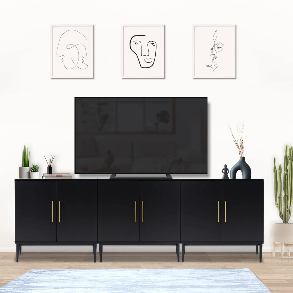 2 door storage cabinet will be home art design and multi-purpose combination, make your life delicate and convenient. This black wood storage cabinet fits nicely with any decor and can be used in the bedroom, dining room, or living room to create stylish additional storage. It is not only a practical piece of furniture, but also a modn decoration of the room. You can put books, duvet covers or toys inside the wooden cabinet, make your space organized and comfortable. 【Larger Storage Space】The credenza has 2 widened and enlarged shelves provide spacious storage space for your daily storage. You can also buy two storage cabinet to form together. Used to store organizing for your trivial sundries and meet your storage needs in every possible way. Product Dimensions:15.7"D x 31.1"W x 31.5"H. 【P2-grade Materials】This buffet cabinet with storage is made of thick premium MDF wooden, scratch-resistant and water-resistant, easy maintenance and clean. Also have undergone multiple tests of strict selection and load-bearing, so you can rest assured that you will have years of use. 【Modern Design】Accent cabinet with gold handle and black legs improve more modern style to your room. Anti dumping device on the back of the sideboard cabinet to ensure the safety of kids or pets. A waterproof desktop will perfectly for you to display your favorite decorations and collectibles. 【Multifunctional Cabinet】Sideboard and buffet with storage provides solid stability for ample load bearing and spacious storage space. The entryway cabinet can be used as a perfect black accent cabinet for your bedroom, hallway or as a TV stand for the living room. Also you can use it as coffee bar or office storage in your room. 【Assembly with Clear Instruction & Customer Support】We are equipped with accurate installation instructions for assembly. It is recommended that two people install this buffet cabinet together. If you have any questions, we will reply to you within 24 hours and we won't let our customers down.