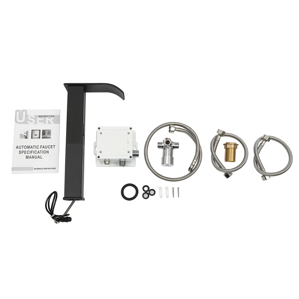 Modern Kitchen Automatic Sensor Faucet Black With Temperature-regulating Valve Description Frequent hand washing can lay a solid foundation for our health, and this cannot be separated from a good faucet. Our automatic sensor faucet uses ceramic and stainless steel materials and adopts a baking paint process to ensure that you can use it for a long time. With the infrared sensing design, you will say goodbye to manually turning on the faucet and you can enjoy more convenience throughout the year, making washing hands a routine. Specification Color: Black Shape: Round Style: Modern Material: Stainless Steel Processes: Baking Paint Assembly Required: Yes Mount Type: Countertop, Single-hole Room Type: Bar, Kitchen, Bathroom Number of Items: 1 Number of Hoses: 3 Number of Handles : Without Handles Valve Core: Ceramic Cartridge Power Source: 4*AA Alkaline Batteries(Not Included) Power Consumption: ≤0.5mW Pole Type: Sensor Control Mode: Automatic Sensing Water Pressure: 0.05-0.6MPA Temperature Range: 0-80°C/ 32-176℉ Thread: NPT1/2'' Sensing Distance: About 10cm/3.9inch Hoses Length: 70cm/ 27.5inch, 50cm/19.68inch, 50cm/19.68inch Total Height: 32cm/12.6inch Spout Height : 30cm/11.81inch Base Size(L*W): 5*5cm/1.96*1.96inch Spout Size(L*W): 16*6cm/ 6.29*2.36inch The Distance from the Spout to the Pole: 10cm/3.93inch Package Size: 41*16.5*6.2cm/16.14*6.5*2.44inch Gross Weight: 2.3kg/ 5.07 lbs Net Weight: 2.1kg/ 4.6 lbs Key Features Build to Last: High-quality stainless steel and baking paint process make the item durable and solid, so it can be installed in damp environments with confidence such as kitchens and bathrooms. The sturdy and durable ceramic valve core can effectively prevent water leakage, improv e the stability of the faucet and reduce the scale. User-friendly and Intelligent: The infrared sensing principle allows the product to quickly sense and provide water within a sensing distance of about 3.9". It will automatically stop when the hand leaves the sensing area, which is more convenient and saves resources. In addition, the touchless design is more hygienic and can effectively prevent cross-infection, making it ideal for use in public places or at home. Universal for All Seasons: The temperature in the range of 32-176℉ can effectively avoid overcooling and overheating, and take care of the mouth and skin, thus letting you enjoy convenience throughout the year . You can adjust the temperature through the temperature-regulating valve. Cost Saving: This product is powered by the battery in the control box, and has strong endurance. Therefore, you do not need to frequently replace the battery and you can still use this item when there is a power outage. Beautiful Appearance: The square column design with an arc spout, timeless black color, and smooth lines show metallic luster to present the essence of modern and simple style, so it will be beautiful scenery in your bathroom or kitchen. Simple Installation: The unique hexagonal nut design allows you to easily manually tighten the faucet, along with the complete accessories, making installation simple and fast. Easy to Clean: The smooth surface with baking paint treatment makes this faucet resistant to fingerprints, verdigris, and water stains, and the simple structure makes it convenient for you to clean with a wet towel and water. Protective Package: To prevent the product from being damaged and bumped during transportation, we packed it with foam to protect your products to the maximum extent possible. Ideal Gift: With a beautiful appearance and great performance, this item can be used as a holiday or housewarming gift for parents, lovers, and friends so that they can enjoy a more convenient life. Details Standard Threaded Connector: The NPT1/2'' threaded connector is compatible with most water pipes for easy replacement and makes the pipe not easy to fall off. Long Hoses: The length of the stainless steel hos es are 27.5 " and 19.68" respectively, along with high durability, toughness, and tensility, reducing usage restrictions and providing you with more convenience. Practical Washers: The round black washers(two of them have filter screens) can effectively prevent water leakage while filtering impurities, reducing your cost and keeping the sink clean. Round Corner: Compared with traditional square corners, an arc de sign can better c are for your skin. Application With a sensing distance of about 3.9", this item is ideal for private and commercial use and is suitable for homes, restaurants, shopping centers, schools, companies, hotels, kitchens, clinics, hospitals, KTVs, subway stations, bathrooms, and other places. Package Included 1* Automatic Sensor Faucet 1* Temperature-regulating Valve 1* Control Box 3* Hoses 1* English Manual Other Accessories for Installation Notes The faucet needs to undergo high-pressure water testing before leaving the factory, so there is a small amount of water inside the product, and the inner wall of the product may have rough copper particles, which are normal phenomena. Please rest assured to use it. Please note that the faucet can not be rotated. You need to prepare 4 AA alkaline batteries yourself. Please be sure to connect the interfaces to the pipes correctly and firmly and make sure that the pipes are clean. Normally, the expansion screw will blow up after the force is applied. Please read the operating manual completely before use. And pay particular attention to the safety instructions included. Please allow the slight color difference caused by the shooting light and the 1-3cm error due to manual measurement. Please make sure you do not mind before you order. Payment Delivery details Terms of sales About us Contact us Payment We accept ebay payment 。 Fees such as import duties, taxes are not included in the item price or shipping costs. These charges are the buyer's responsibility. Delivery details Shipping: 2-9 working days to: USA Terms of sales We maintain high standards of exce