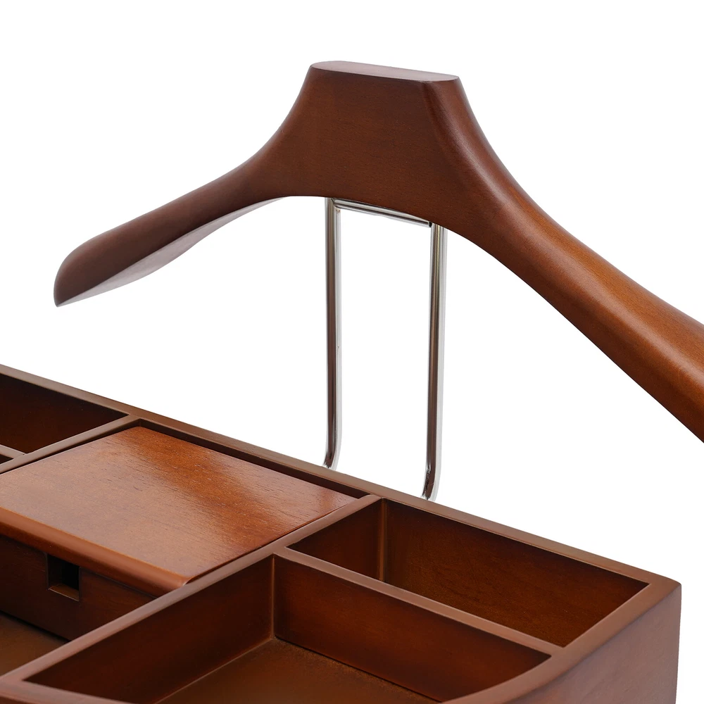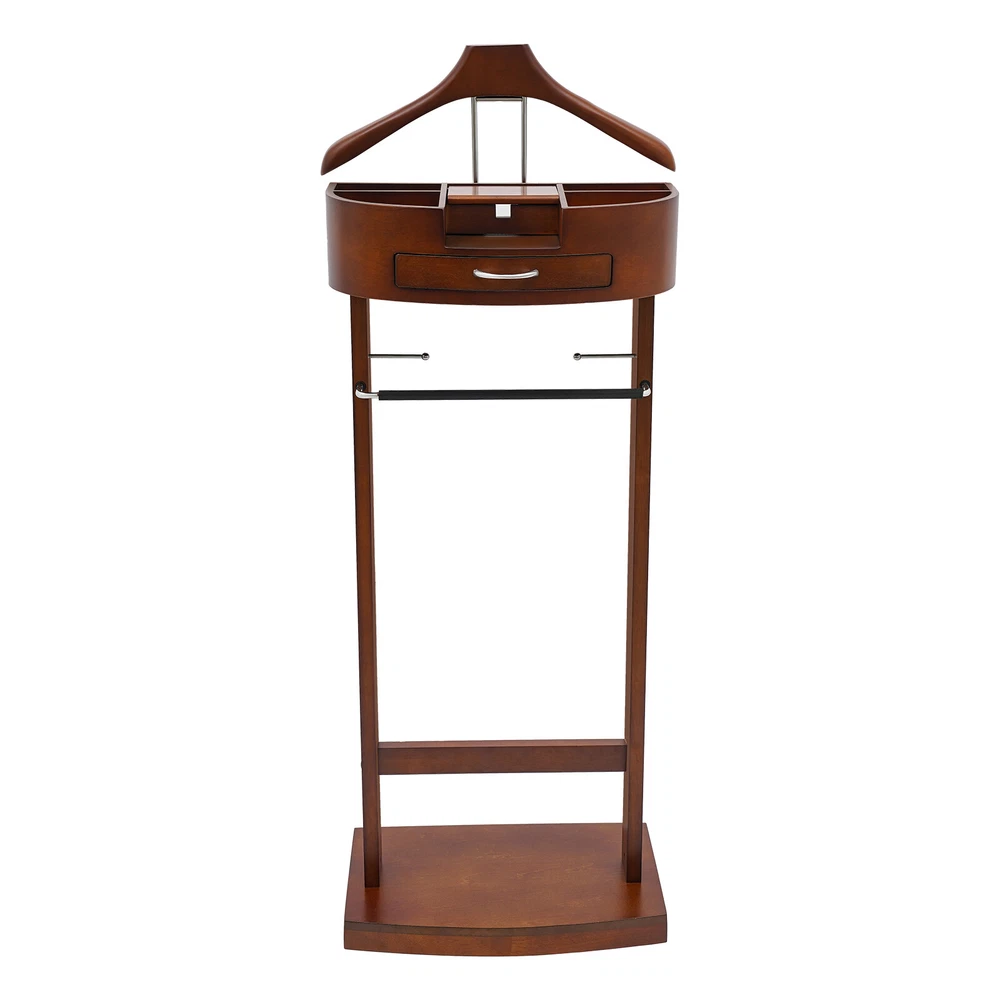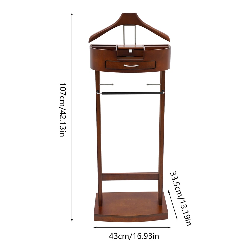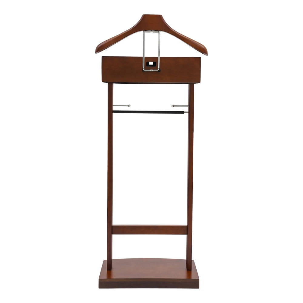 Modern Brown Wood Freestanding Suit Rack Clothing Valet Stand for Home Indoor Use