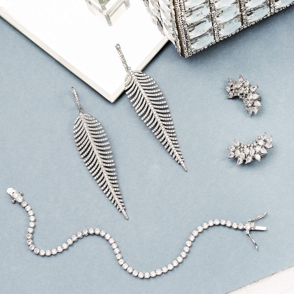 Modern Bridal CZ Pave Encrusted Statement Twist Teardrop Dangle Chandelier Earrings For Women Bridesmaids Silver Plated Product Details Color: Clear Brand: Bling Jewelry MPN: AG-EZ-3135SI UPC: 640626756044 EAN: 0640626756044 Is Discontinued By Manufacturer : No Product Dimensions : 3 x 0.75 x 3 inches; 0.32 ounces Item model number : AG-EZ-3135SI Department : womens Date First Available : March 28, 2021 Manufacturer : Bling Jewelry Country of Origin : China Brand, Seller, or Collection Name: Bling Jewelry Metal stamp: Not stamped Metal: rhodium-plated-brass Material: Gemstone, Metal Gem Type: Cubic Zirconia Minimum total gem weight: 3.00 carats Setting: Pave Item Length: 3 inches Width: 0.75 inches Length: 3 inches Back finding: Post With Snap Down Resizable: No Number of stones: 150 Stone Weight: 0.02 carats Model number: AG-EZ-3135SI Size per pearl: not-applicable Stand out with dazzling, daring silver-plated CZ wave statement dangle earrings. Rhodium adds extra shine. Perfect for red carpet or bridal jewelry.
