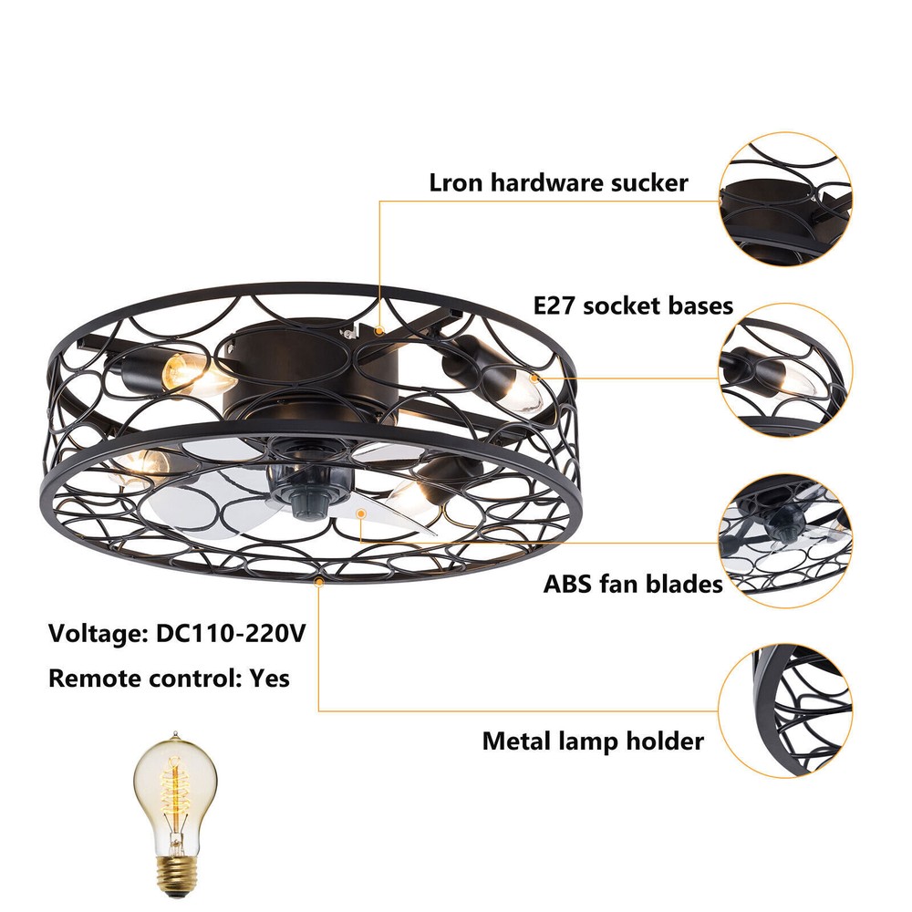 ✦ Dimensions Mounting height: 7,87" (20 cm) Mounting width: 18,5" (48cm) ✦ Information about the light bulb Bulb requirements: Use (4) E27Bulbs, maximum 60watt, options include incandescent lamps, fluorescent lamps, LED, halogen, etc. (Bulbs are not included) Power: max. 60W Voltage: DC110-220V Remote control: yes ✦ Material and color Material: coated black metal, Ceiling Fan Chandelier Ceiling Lighting Fixtures 6 Wind Speeds w/Remote control Welcome to my store: 【 Unique and safe new design 】 6-stage adjustable fan ceiling light: The fan lamp has six wind speeds to choose from, which you can adjust to your needs. Circulates the air and keeps you cool on hot summer days for a pleasant living and sleeping climate. Timing function and forward and reverse rotation function: The industrial fan light can be timed by remote control, timing 1/2/4 hours, you can customize it according to your needs. The fan light also has the function of forward and reverse rotation. In summer, the ceiling fans run in the positive direction to move the air. In winter, the ceiling fan can turn in the opposite direction. Available all year round. Quiet running industrial ceiling fan with light: use full copper motor, more stable operation, low noise, long service life, smoother and more comfortable wind, and create a pleasant environment during use. Retro ceiling fan with lights: The outside is designed with a metal mesh cage, the fan blades are perfectly hidden in the lampshade, so you are safer during use. The easy-to-install fan ceiling light is perfect for use in bedrooms, living rooms, dining rooms, kitchens and more. This ceiling fan with is designed for all who need a wonderful update for your home. Suit for ceiling of 7.5-11.5 feet, and room of room size 86ft*162ft children's room, bedroom, kitchen island or dining room. Easy to install: hard wire. Perfect design to illuminate your space, whether it is a kitchen island, dining room, bedroom, foyer or any other place. Fans and lights can be controlled separately, which can control your ceiling fan quickly and easily! (max. distance of 20 meters). The closed ceiling fan speed varies from soft to cool, adapts to daily needs; ABS fan blades, durable, light and easy to clean. Timing function – Smart timing set to automatically turn off light and fan after falling asleep. Silent motor ceiling fan for indoor and outdoor use is equipped with whisper wind motor that makes no noise while providing a quiet and comfortable environment ✦ Dimensions Mounting height: 7,87" (20 cm) Mounting width: 18,5" (48cm) ✦ Information about the light bulb Bulb requirements: Use (4) E27Bulbs, maximum 60watt, options include incandescent lamps, fluorescent lamps, LED, halogen, etc. (Bulbs are not included) Power: max. 60W Voltage: DC110-220V Remote control: yes ✦ Material and color Material: coated black metal, Easy installation: surface mounting. Products include English manuals, remote control and installation instructions with the included bracket, which provides easier installation and detailed installation instructions. Applicable Scenarios: The chandelier is suitable for home and business premises, such as living room, dining room, kitchen island, bedroom, foyer, farmhouse bar, restaurant, gallery, showroom, hotel, cafe, office. Package included 1 *Fan light (bulbs not included) 1.Accessory package 1.User manual ✦ Proposal: 1.For safe installation, please ensure that the electrical box to which this device is mounted is properly attached to a structural element of the building. 2. All wires are connected. When unpacking, be careful not to pull with cables, as a bad connection may occur. 3.Do not connect power until your device is fully assembled. DESCRIPTION 2: Welcome to autocomponents999 Thank you for your support! If you have any questions,please feel free to contact us!!! Welcome to autocomponents999 Our store has a wide range of product categories for you to choose from. Welcome to click on our store to make a purchase or consult us, and we will recommend the products you need. Payment Delivery details Terms of sales About us Contact us Payment We accept ebay payment 。 Fees such as import duties, taxes are not included in the item price or shipping costs. These charges are the buyer's responsibility. Delivery details Shipping: 2-9 working days to: USA Terms of sales We maintain high standards of excellence and strive for hundred percent customer satisfaction. Feedback is very important to us. We hope that you contact us immediately before you give neutral or negative feedback, so that we can address your concerns. It is impossible to address issues if we do not know about them! About us Your satis faction is our ultimate goal. We work hard to earn your trust and future business. Our certified technicians have tested each item before shipping. The unit comes with 1 year limited warranty on all manufacturing defects. a) If you receive a defective item, you may return it or ask for a discount. Please contact us within 14 days after you receive the package. b) What you returned must be intact and in its original packaging as re? u. Customer is responsible for shipping costs of the returned item. c) We will cover the cost of shipping back t with the shipping rate indicated in the registration page. We will send you a new unit or refund the full payment you paid. Thank you. Contact us Business Hour Business Hour: Monday To Friday: 8:30 AM to 5:00 PM (Beijing China time) Due to time zones, our reply to your questions may not be immediately. But within above working time, we will reply your email within 24 hours. If it's non-workdays, please kindly be patient and wait till Monday. Please contact us with ebay message. Please feel free to contact us if you have any questions. Monday To Friday: 8:30 AM to 5:00 PM (Beijing China time) Due to time zones, our reply to your questions may not be immediately. But within above working time, we will reply your email with