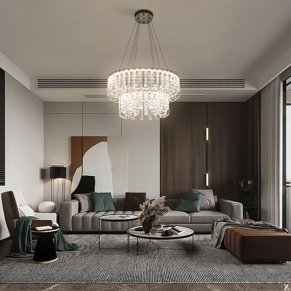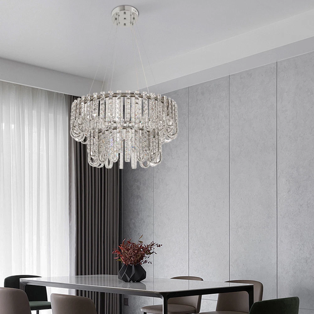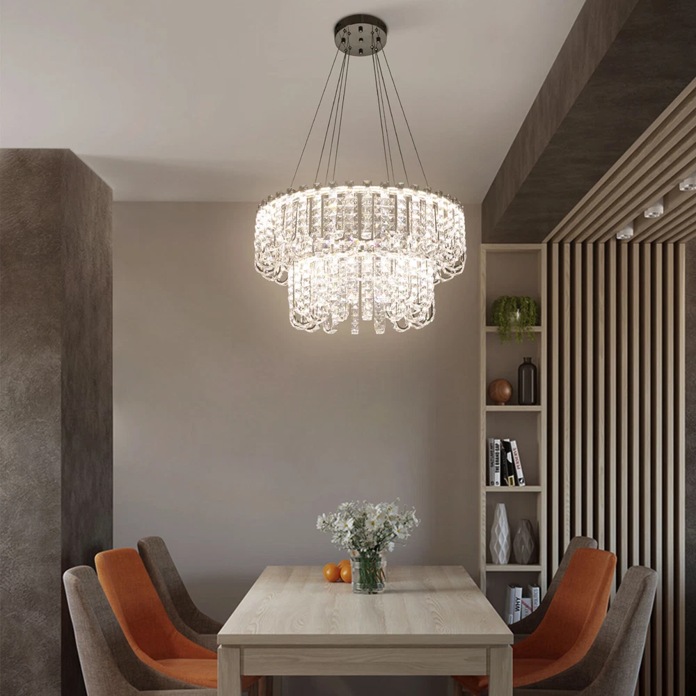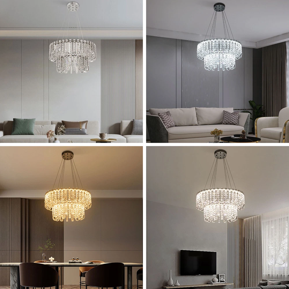 Welcome to hopefuther!!! Description Brighten up the night with a crystal chandelier. The delicate silver frame, intertwined with the bright light of the crystals, is like a beautiful painting that is mesmerizing. Its use of high-quality crystals can reflect light to almost every corner, brightening the whole room. Even in a dark environment, it can bring you endless warmth and romance. Whether at home or in public, it can bring you a wonderful visual and lighting experience. Key Features Selected Material: The product is made of high-quality crystal, stainless steel, and steel wire with the cutting process, making it bright, sturdy, anti-rust, and still beautiful and practical after long-term use. Unique Appearance: The unique crystal lampshade, the elegant silver color, and the rich hierarchical structure give the product a unique modern style. Its charming and romantic style can be matched with most of the furniture, which is a great choice for creating a home atmosphere. Excellent Light Source: The environment-friendly and energy-saving LED light with a high color index can effectively avoid glare and stroboscopic, protect your eyes, restore the most authentic color of objects, light up an area of about 107.64-215.28 ft², and save your costs. Different Light Colors: You can adjust the light colors(warm, white, and neutral) through the remote control(within 9.84-16.4ft) or wall switch(not included) to create different indoor atmospheres and meet the lighting needs for different activities. Adjustable Height: You can adjust the height of the chandelier by adjusting the length of the hanging wire(11.81-59.06 in) for different ceiling heights. Wide Voltage: This product supports a wide voltage range (90-265V) and can adapt to different voltage environments. Simple Installation: The simple structure, complete accessories, and clear installation diagram can help you complete the installation quickly and accurately. Exquisite Gift: With a beautiful appearance and practical function, it is an ideal gift for your friends and relatives on birthdays, anniversaries, festivals, housewarming, and other days. Good Customer Service: We stand behind all our guests and look forward to assisting you with your purchase. It is our pleasure to answer your confusion and questions. The end of the story between us is not "we sell and you buy". Details Solid Base: The 7.87-inch round base increases stress area, and can make the item fixed firm without falling easily. Practical Gloves: They protect your hands and the surface of the fixture during installation. Smooth Edge: The rounded and smooth edges not only add to the aesthetics of the product but also improve the safety of use. Application With a lighting area of 107.64-215.28 ft², it is ideal for kitchens, hallways, living rooms, bedrooms, balconies, bars, aisles, foyers, hotels, restaurants, corridors, cafes, dining rooms, children's rooms, libraries, billiard parlors, and other indoors. Specification Color: Silver Style: Modern Shape: Round Material: Crystal, Stainless Steel, Steel Process: Cutting Assembly Required: Yes Mounting Type: Ceiling Mount Indoor/Outdoor Usage: Indoor Efficiency: E Control Method: Remote Control, Wall Switch(Not Included) Light Color: White, Warm, Neutral Color Temperature: 3000-6500K Light Source: LED Voltage: 90-265V Power: 60W Battery Type: 2*AAA Batteries(Not Included) Remote Control Distance: 3-5m/ 9.84-16.4ft Illuminated Area: 10-20 m²/ 107.64-215.28 ft² Adjustable Height Range: 30-150cm/ 11.81-59.06 in Base Diameter: 20 cm/ 7.87 in Lampshade Diameter: 60 cm/ 23.62 in, 40 cm/ 15.74 in Lampshade Height: 40 cm/ 15.74 in Hanging Wire Length: 1.5m/ 4.92 ft Package Included 1* Crystal Chandelier 1* Remote Control 1* English Installation Diagram 2 Pairs* Gloves All Accessories for Installation Notes 1. The wall switch and remote control batteries are not included in this package. You need to prepare 2 AAA batteries yourself. 2. Please read the installation instructions completely before use. And pay particular attention to the safety instructions included. 3. Please use the lamp within the applicable voltage range and clean it regularly. Please cut off the power supply when you clean the light. Please wipe with a soft cotton cloth and do not use household cleaning agents. 4. Please check the dimensions of the product before ordering to ensure it fits your home. 5. Please make sure the power is cut off before installation. To ensure your safety, we recommend that two people install this lamp together. Please install it by someone with an electrical license if necessary. 6. Please use it in a dry environment. It is not suitable for outdoors and bathrooms. 7. Please allow the slight color difference caused by the shooting light and the 1-3 cm error due to manual measurement, and make sure you do not mind before ordering. Payment Delivery details Terms of sales About us Contact us Payment We accept ebay payment 。 Fees such as import duties, taxes are not included in the item price or shipping costs. These charges are the buyer's responsibility. Delivery details Shipping: 2-9 working days to: USA Terms of sales We maintain high standards of excellence and strive for hundred percent customer satisfaction. Feedback is very important to us. We hope that you contact us immediately before you give neutral or negative feedback, so that we can address your concerns. It is impossible to address issues if we do not know about them! About us Your satis faction is our ultimate goal. We work hard to earn your trust and future business. Our certified technicians have tested each item before shipping. The unit comes with 1 year limited warranty on all manufacturing defects. a) If you receive a defective item, you may return it or ask for a discount. Please contact us within 14 days after you receive the package. b) What you returned must be intact and in its original packaging as re? u. Customer is responsible for shipping costs of the ret