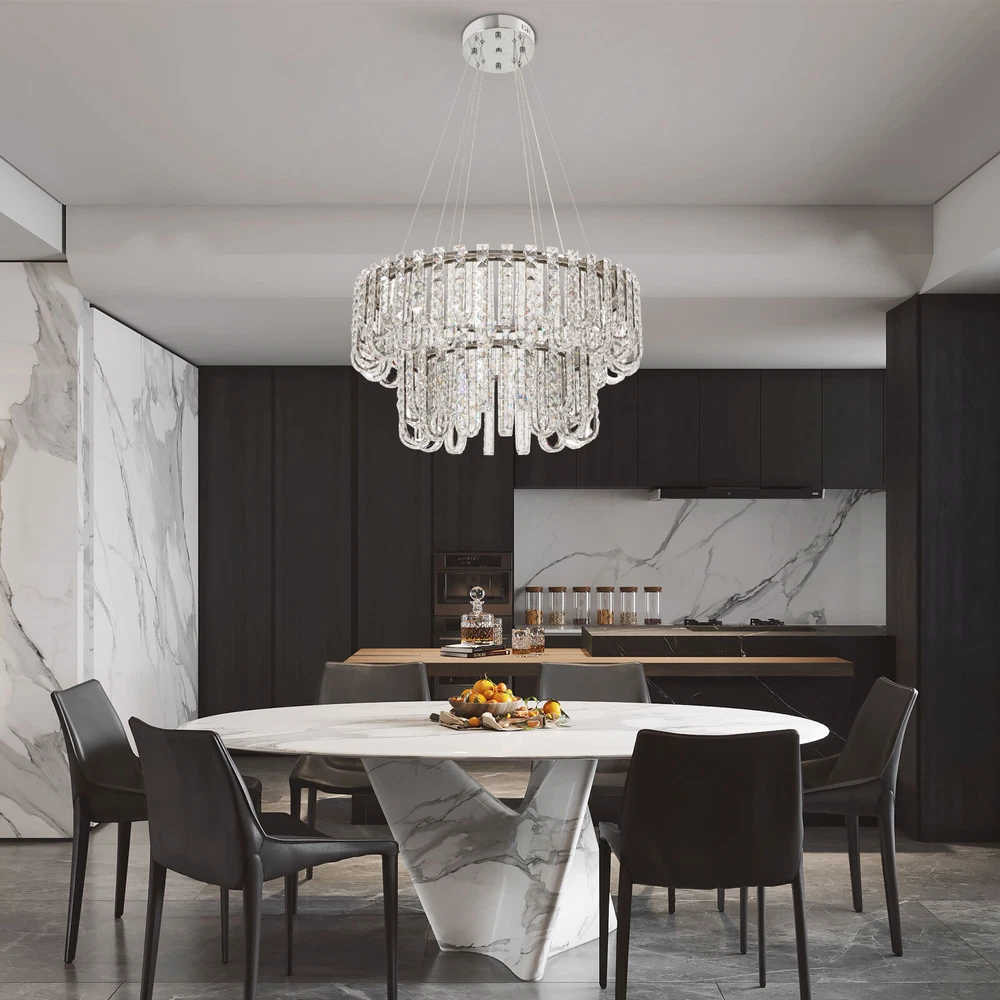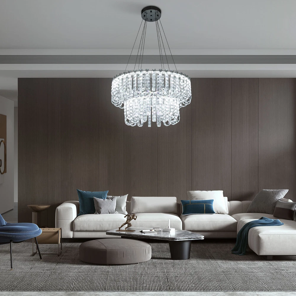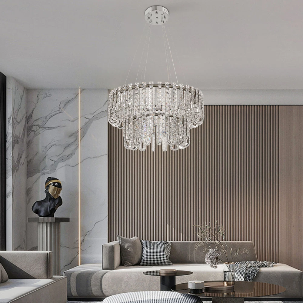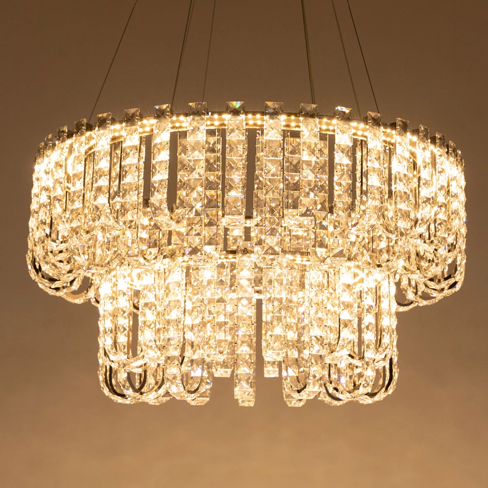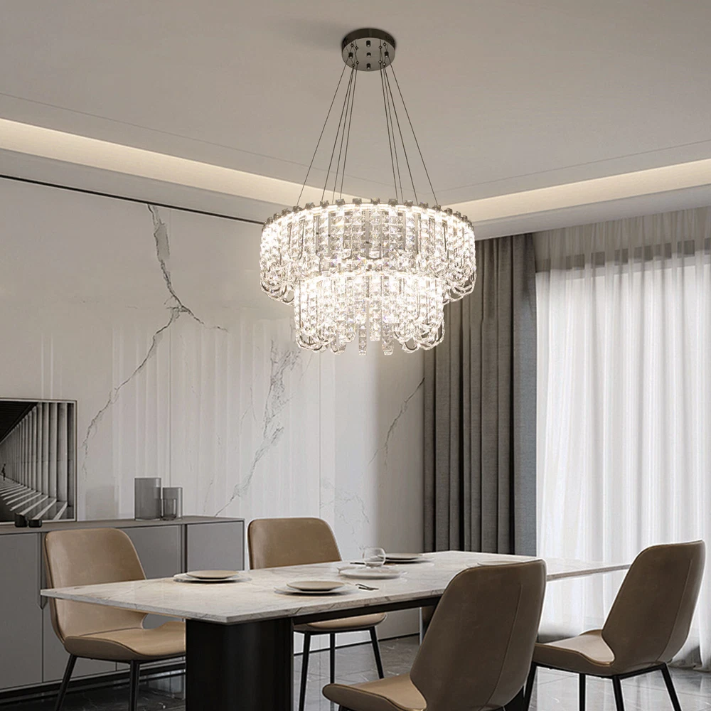 Welcome to hopefuther!!! Description Brighten up the night with a crystal chandelier. The delicate silver frame, intertwined with the bright light of the crystals, is like a beautiful painting that is mesmerizing. Its use of high-quality crystals can reflect light to almost every corner, brightening the whole room. Even in a dark environment, it can bring you endless warmth and romance. Whether at home or in public, it can bring you a wonderful visual and lighting experience. Key Features Selected Material: The product is made of high-quality crystal, stainless steel, and steel wire with the cutting process, making it bright, sturdy, anti-rust, and still beautiful and practical after long-term use. Unique Appearance: The unique crystal lampshade, the elegant silver color, and the rich hierarchical structure give the product a unique modern style. Its charming and romantic style can be matched with most of the furniture, which is a great choice for creating a home atmosphere. Excellent Light Source: The environment-friendly and energy-saving LED light with a high color index can effectively avoid glare and stroboscopic, protect your eyes, restore the most authentic color of objects, light up an area of about 107.64-215.28 ft², and save your costs. Different Light Colors: You can adjust the light colors(warm, white, and neutral) through the remote control(within 9.84-16.4ft) or wall switch(not included) to create different indoor atmospheres and meet the lighting needs for different activities. Adjustable Height: You can adjust the height of the chandelier by adjusting the length of the hanging wire(11.81-59.06 in) for different ceiling heights. Wide Voltage: This product supports a wide voltage range (90-265V) and can adapt to different voltage environments. Simple Installation: The simple structure, complete accessories, and clear installation diagram can help you complete the installation quickly and accurately. Exquisite Gift: With a beautiful appearance and practical function, it is an ideal gift for your friends and relatives on birthdays, anniversaries, festivals, housewarming, and other days. Good Customer Service: We stand behind all our guests and look forward to assisting you with your purchase. It is our pleasure to answer your confusion and questions. The end of the story between us is not "we sell and you buy". Details Solid Base: The 7.87-inch round base increases stress area, and can make the item fixed firm without falling easily. Practical Gloves: They protect your hands and the surface of the fixture during installation. Smooth Edge: The rounded and smooth edges not only add to the aesthetics of the product but also improve the safety of use. Application With a lighting area of 107.64-215.28 ft², it is ideal for kitchens, hallways, living rooms, bedrooms, balconies, bars, aisles, foyers, hotels, restaurants, corridors, cafes, dining rooms, children's rooms, libraries, billiard parlors, and other indoors. Specification Color: Silver Style: Modern Shape: Round Material: Crystal, Stainless Steel, Steel Process: Cutting Assembly Required: Yes Mounting Type: Ceiling Mount Indoor/Outdoor Usage: Indoor Efficiency: E Control Method: Remote Control, Wall Switch(Not Included) Light Color: White, Warm, Neutral Color Temperature: 3000-6500K Light Source: LED Voltage: 90-265V Power: 60W Battery Type: 2*AAA Batteries(Not Included) Remote Control Distance: 3-5m/ 9.84-16.4ft Illuminated Area: 10-20 m²/ 107.64-215.28 ft² Adjustable Height Range: 30-150cm/ 11.81-59.06 in Base Diameter: 20 cm/ 7.87 in Lampshade Diameter: 60 cm/ 23.62 in, 40 cm/ 15.74 in Lampshade Height: 40 cm/ 15.74 in Hanging Wire Length: 1.5m/ 4.92 ft Package Included 1* Crystal Chandelier 1* Remote Control 1* English Installation Diagram 2 Pairs* Gloves All Accessories for Installation Notes 1. The wall switch and remote control batteries are not included in this package. You need to prepare 2 AAA batteries yourself. 2. Please read the installation instructions completely before use. And pay particular attention to the safety instructions included. 3. Please use the lamp within the applicable voltage range and clean it regularly. Please cut off the power supply when you clean the light. Please wipe with a soft cotton cloth and do not use household cleaning agents. 4. Please check the dimensions of the product before ordering to ensure it fits your home. 5. Please make sure the power is cut off before installation. To ensure your safety, we recommend that two people install this lamp together. Please install it by someone with an electrical license if necessary. 6. Please use it in a dry environment. It is not suitable for outdoors and bathrooms. 7. Please allow the slight color difference caused by the shooting light and the 1-3 cm error due to manual measurement, and make sure you do not mind before ordering. Payment Delivery details Terms of sales About us Contact us Payment We accept ebay payment 。 Fees such as import duties, taxes are not included in the item price or shipping costs. These charges are the buyer's responsibility. Delivery details Shipping: 2-9 working days to: USA Terms of sales We maintain high standards of excellence and strive for hundred percent customer satisfaction. Feedback is very important to us. We hope that you contact us immediately before you give neutral or negative feedback, so that we can address your concerns. It is impossible to address issues if we do not know about them! About us Your satis faction is our ultimate goal. We work hard to earn your trust and future business. Our certified technicians have tested each item before shipping. The unit comes with 1 year limited warranty on all manufacturing defects. a) If you receive a defective item, you may return it or ask for a discount. Please contact us within 14 days after you receive the package. b) What you returned must be intact and in its original packaging as re? u. Customer is responsible for shipping costs of the ret