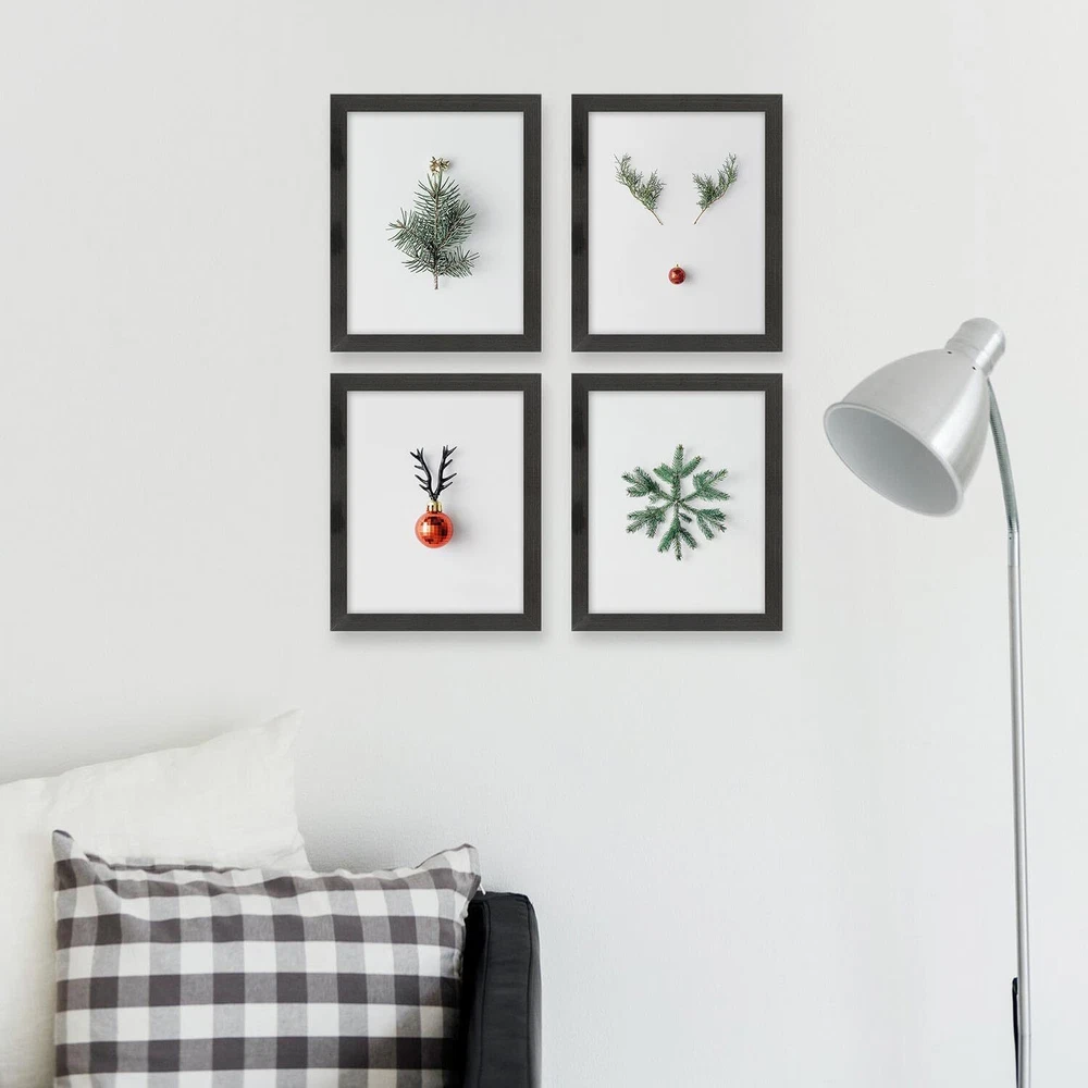 *Specifications* Color: Green, Red, Grey, White Size: 8"w x 10"l Number of Pieces: 4 Piece Material: Paper, Wood Frames Framed: Yes Home Decor Style: Modern, Scandinavian, Minimalist Recommended Room: Bedroom, Bathroom, Living room Theme: Christmas(christmas tree, deer christmas ornaments, reindeer, snowflake) *More Info* Package: This item will be packaged in a paper box with cushioning foam at the corners to provide additional protection against impact during shipping. All prints are copyrighted. All rights reserved. These minimalist style christmas pictures can add a touch of modern decor to your interiors. UNIQUE & THOUGHTFUL GIFT - Original gifts show you cared enough; Affordable gift for a Christmas season! GIVE HOME WARMTH - Decorate living room, bedroom, bathroom to make it a livable enviroment SOLID WOOD FRAME - The wood frame adds the finishing touch to the holiday posters; Printed on art paper SMALL BUT CUTE SIZE - Lovely and light weight to hang up; Never need large space