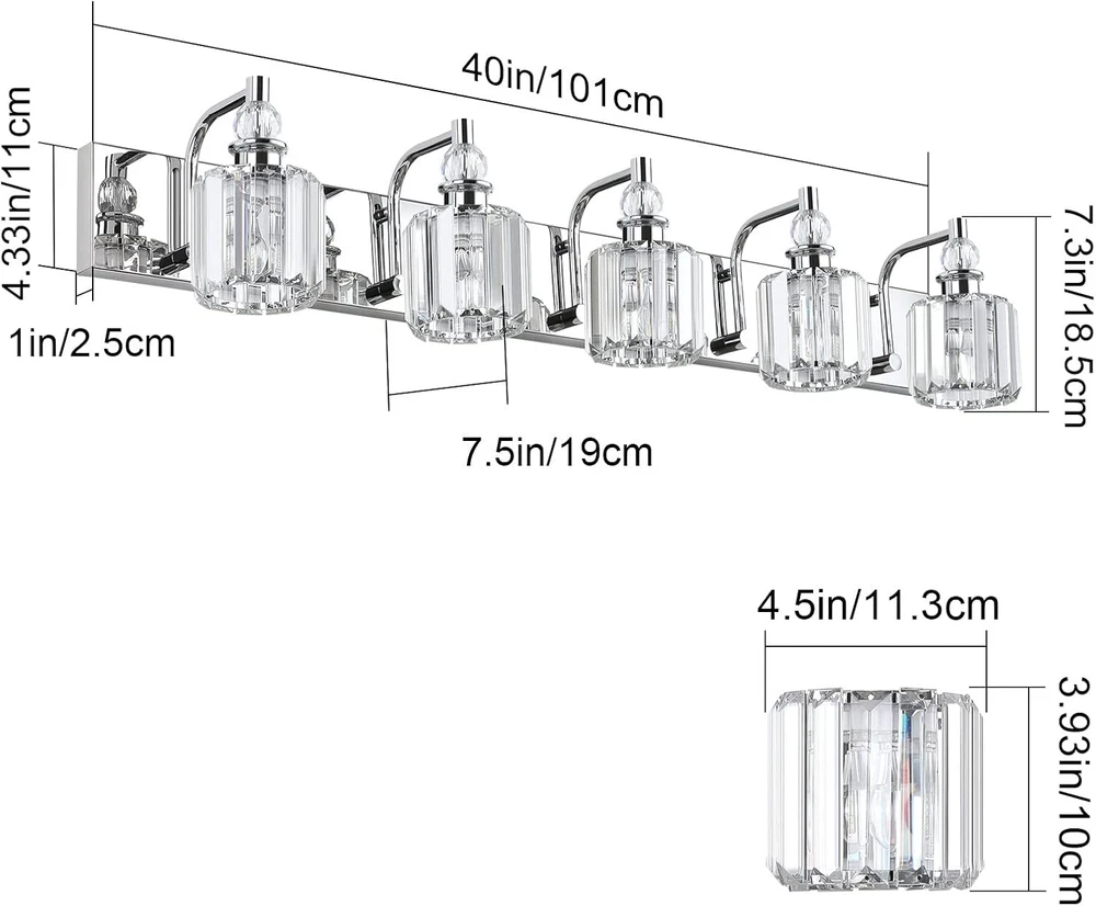 Store New Arrivals Add to Favorite View Feedback Contact Modern Crystal Vanity Light for Bathroom Crystal Chrome Bathroom Wall Light Fixtures over Mirror Crystal Bathroom Vanity Lights Description Light Source Type Halogen, LED, Incandescent Style Modern Power Source Corded Electric Number of Light Sources 1 Control Method Remote Embellishment Crystal Theme Modern Controller Type Push Button Unit Count 1.0 Count Room Type Bathroom Finish stainless steel Material Stainless Steel Finish Type stainless steel Fixture Type Non Removable Light fixture form Vanity Bulb Base E26 Shade Color Transparent Mounting Type Wall Mount Color Chrome Plug Format A- US style Shade Material Stainless Steel 1:LIGHT SOURCE: E26 US Standard Socket. Max 60W, Compatible with any E26 base LED bulb, Halogen, Incandescent, Energy Saving Bulb. (Note: Bulbs are not included.) 2:HIGH QUALITY: High-quality stainless steel lamp body, smooth as a mirror, not easy to rust and fade, strong corrosion resistance. Premium Transparent Crystal Lampshades. It is bright and romantic. 3: DESIGN: Simple and luxurious design, highlights your taste. create a warm bright and comfortable living environment. It can be widely used in your bathroom mirror, over the painting, over the vanity table, and so on. 4:EASY TO INSTALL: Hardwired, no switch or plug on the fixture itself. With USA standard Installation back plate. Easy to mounted it on the electric box. Just connect to the reserved wire directly. UL listed for safety. 5:AFTER-SALE SERVICE: Ralbay team guarantees to always provide the best quality product. Please rest assured to buy. If you have any questions about our products, please log in to your account, check the order ID and click "Contact Seller" to . our customer service will solve your problem within 24 hours, We will try our best to improve your shopping experience. ABOUT US We offer the best prices around on high quality products. Our E-store includes media such as books, movies, music and games while offering electronics, toys, sporting apparel, clothing, tools, general home, garden items and more. SHIPPING We are always working hard to ensure your package arrives as soon as possible. Please understand that some factors like weather, high postal traffic, and the performance of shipping companies are outside of our control. We offer free shipping to the lower 48 states and ship within 2 business days of payment, usually sooner. We do not accept P.O. Boxes. Please provide a physical address. For shipping outside of the continental USA, we only use eBay's Global Shipping Program.The item is shipped to KY and then sent to the rest of the world. International customers are responsible for all duties and taxes. Continue to check out in order to calculate costs for shipping the item to your country. Messages regarding eBay's Global Shipping Program MUST be directed at eBay EXCLUSIVELY. RETURNS We offer a 30-Day Return Policy on items which you are not completely satisfied with. You have the option for a full-refund or an exchange of the item. No returns are available on items shipped outside of the USA. PAYMENT We accept PayPal. CONTACT US This page content is yet to come Please ad us to your favorite seller and visit again later Thank You CUSTOMER SATISFACTION We try our very best to make sure every customer is completely satisfied. If there's a problem, message us! We're happy to help. WE ACCEPT Copyright © 2021 AutoDS. | All Rights Reserved