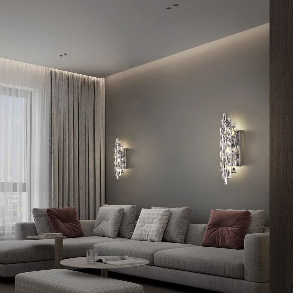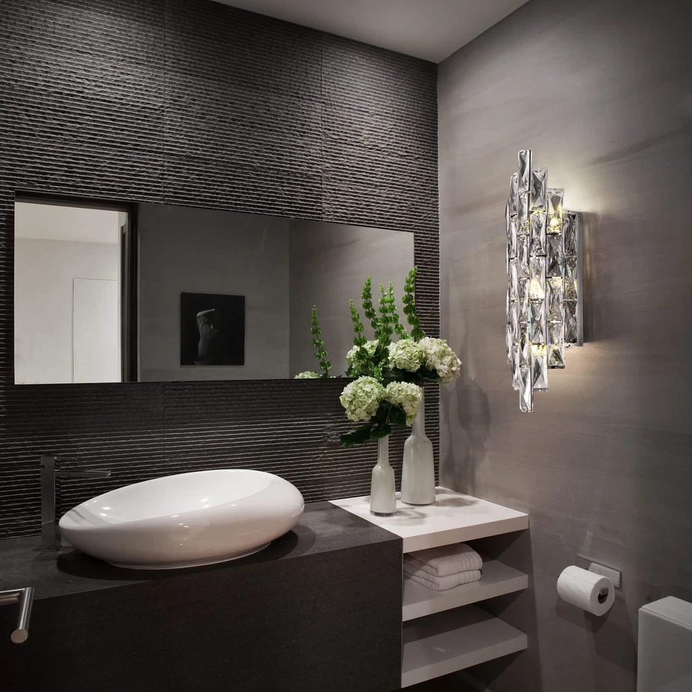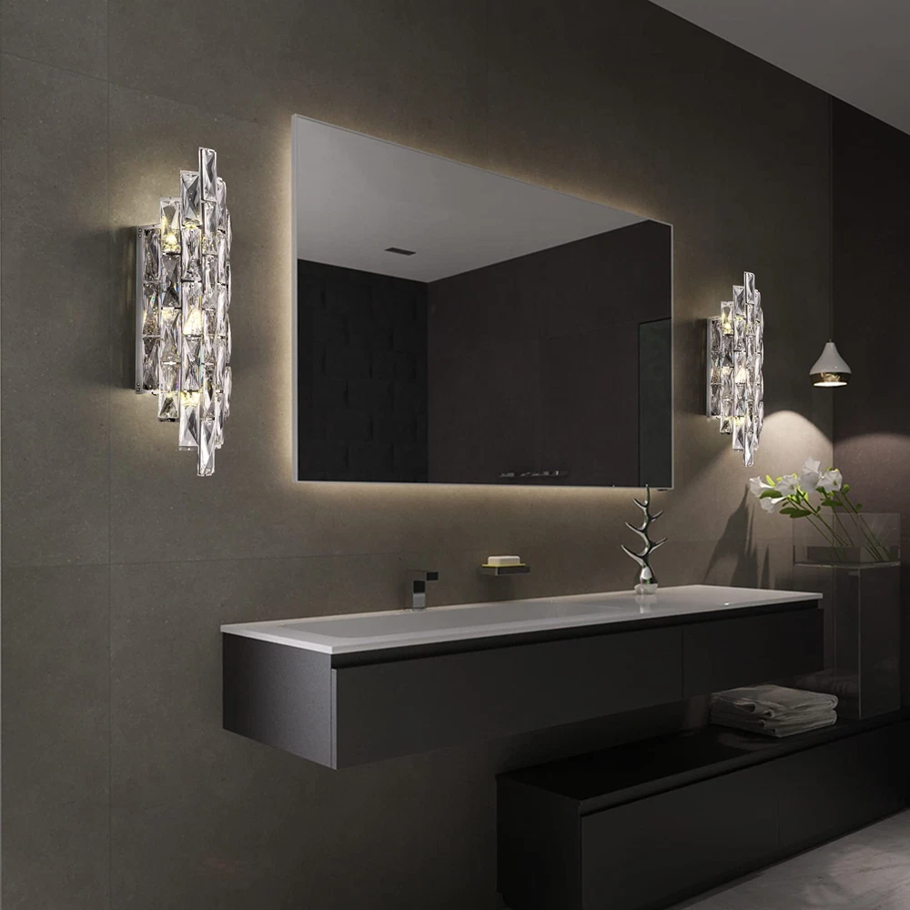【Original Crystal Wall Sconce】K9 clear crystal attached to the finished chrome frame, and the effect of crystal refraction creates a comfortable and elegant atmosphere.The simple and modern design can make your house look beautiful and romantic, add a lot of elegance.Light luxury art lamp, put fashion at home. 【Modern Chrome Luxury Crystal Wall Lights】This chrome crystal wall lights is made coating process, anti-corrosion and anti-rust metal lamp body and K9 crystals. Beautiful crystal design, and the metal cover forms a balance between modern industry and classic elegant style 【Widely Application】The luxury wall sconces is makes from K9 crystal and metal, carefully decorated by hand, and hand-punched,The light emitted by the crystal wall sconce through the K9 crystal is beautiful, just like forming a romantic starry sky around you, bringing you a unique visual experience.It is suitable for dining room, living room, bedroom, kitchen, bathroom, hallway. 【Bulbs Requirement】This luxury crystal wall lamps suitable for MAX 40W G9 Bulbs(Bulbs is not included).The unique crystal texture will reflects different light effects with dimmable bulbs.You could chose a dimmable bulbs if you want the sconce is dimmable. 【Easy to Install 】This wall lighting is easy to install,you need to takes out the hanging plate and put the 3*G9 bulbs into the plate firstly,and then mount it on the wall.(Note: bulbs are not included)