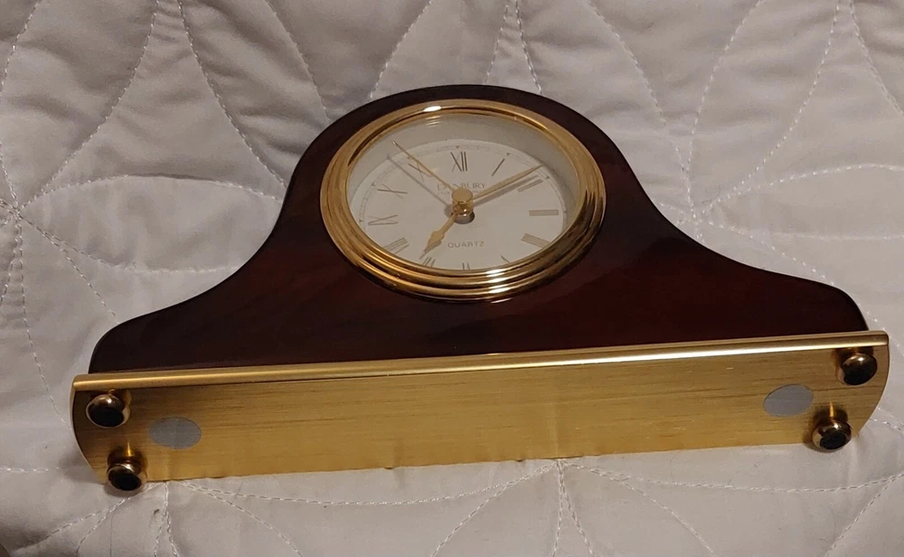 This is a modern desk clock by DANBURY Clock Company, featuring a wood case and German movement. It is designed in a mini mantle style, showcasing a sleek and contemporary look.
