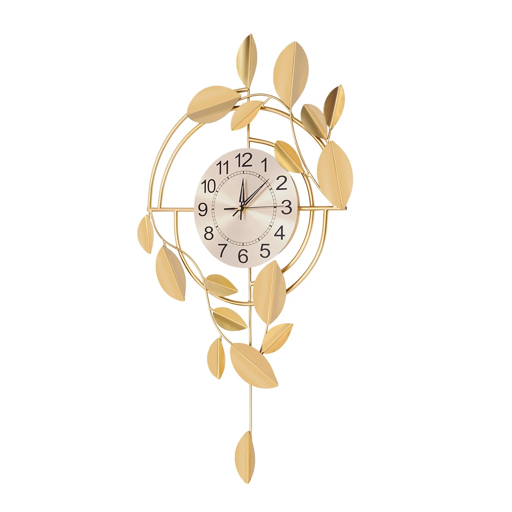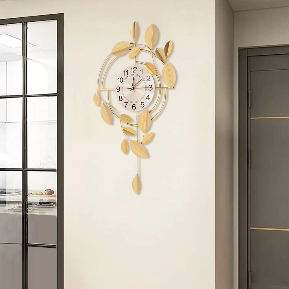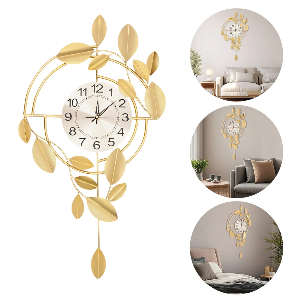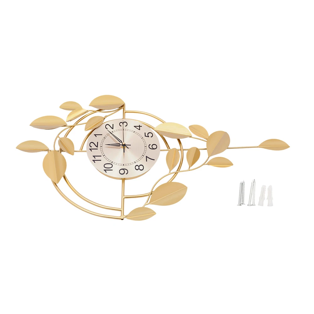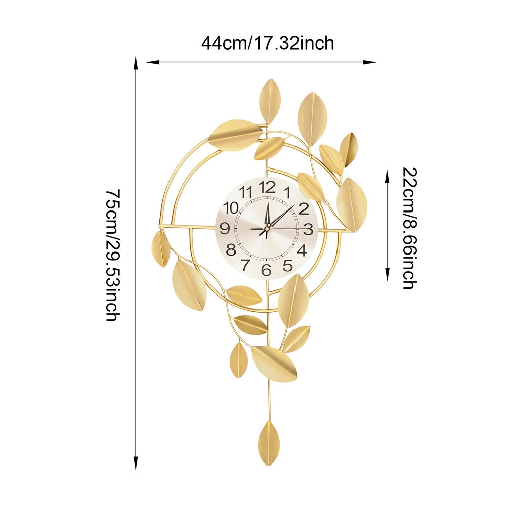 Specification Color: Gold Style: Modern Material: Iron, Stainless Steel, Titanium Plate Process: Spray Painting, Baking Paint, Pasting Installation Type: Wall Mount Assembly Required: No Display Type: Pointer and Number Power Type: 1 * AA Carbon Battery (Not Included) Movement Type: Scanning Second Movement Dial Diameter: 22cm/8.66in Product Size (H*L): 75*44cm/29.53*17.32in Package Size: 81.5*48.5*8cm/32.09*19.09*3.15in Gross Weight: 2.1kg/4.63 lbs Net Weight: 2kg/4.41 lbs Package Included 1* Wall Clock Other Accessories for Installation Welcome to zhuzhubang!Have a nice day! Description This wall clock, with its unique creative design and exquisite craftsmanship, has become a highlight in home decoration. It not only has a precise time display function but also a decorative item full of artistic sense. The sturdy materials ensure its long service life, while the modern design adds a sense of dynamism and elegance to the indoor space. Key Features Premium Materials: It is made of iron, stainless steel, and titanium plate material, with spray painting and baking paint processes, which is rust-resistant , wear-resistant , smooth, and clear, ensuring a long service life. Generous Appearance: The elegant and noble color scheme, beautiful leaf decorations, and circular dial make this product not only a clock but also a creative decoration, adding a sense of elegance to your space. Silent Running: This product uses a silent scanning second movement without clicking sound, providing you with a quiet environment and accurate time. Easy to Read Time : This product features a large dial with a diameter of 8.66 inches, bold Arabic numerals, and well crafted pointers, without blocking of decorations, allowing you to easily read the time from a certain distance. Easy Installation: The simple structure and sufficient installation accessories allow you to easily and quickly install this product on the wall, saving you time and effort. Simple Clean-up: It has a smooth surface and a simple structure, so you only need to wipe the dust or residue with a towel. Exquisite Gift: With good practicability and a modern appearance, it can be used as a housewarming gift for parents, friends, and lovers so that they can also enjoy a more exquisite life. Buy with Confidence: We stand behind all our guests and look forward to assisting you with your purchase. It is our pleasure to answer your confusion and questions. The end of the story between us is not "we sell and you buy". Details Hanging Holes: They allow you to hang directly after nailing the nails, facilitating your installation. Premium Pointers: They run smoothly and display time accurately, allowing you to enjoy peace as time goes by. Application This product is suitable for bedrooms, living rooms, dining rooms, hotels, offices, meeting rooms, corridors, etc. Installation Steps 1. Measure the distance of the hook with a ruler(not included) and mark the hole position on the wall with a pen(not included). 2. Use a 0.24in drill bit(not included) to drill the marked position. 3. Insert the expanded plastic into the hole. 4. Nail the nail into the plastic plug to hang the product. Specification Color: Gold Style: Modern Material: Iron, Stainless Steel, Titanium Plate Process: Spray Painting, Baking Paint, Pasting Installation Type: Wall Mount Assembly Required: No Display Type: Pointer and Number Power Type: 1 * AA Carbon Battery (Not Included) Movement Type: Scanning Second Movement Dial Diameter: 22cm/8.66in Product Size (H*L): 75*44cm/29.53*17.32in Package Size: 81.5*48.5*8cm/32.09*19.09*3.15in Gross Weight: 2.1kg/4.63 lbs Net Weight: 2kg/4.41 lbs Package Included 1* Wall Clock Other Accessories for Installation Notes Please check the size carefully before ordering. Please note that the installation location of the clock should avoid direct sunlight. Please do not use too much alkaline power battery, affecting the life of the movement. Please allow the slight color difference caused by the shooting light and the 1-3 cm error due to manual measurement, and make sure you do not mind before ordering. Payment Delivery details Terms of sales About us Contact us Payment We accept ebay payment 。 Fees such as import duties, taxes are not included in the item price or shipping costs. These charges are the buyer's responsibility. Delivery details Shipping: 2-9 working days to: USA Terms of sales We maintain high standards of excellence and strive for hundred percent customer satisfaction. Feedback is very important to us. We hope that you contact us immediately before you give neutral or negative feedback, so that we can address your concerns. It is impossible to address issues if we do not know about them! About us Your satis faction is our ultimate goal. We work hard to earn your trust and future business. Our certified technicians have tested each item before shipping. The unit comes with 1 year limited warranty on all manufacturing defects. a) If you receive a defective item, you may return it or ask for a discount. Please contact us within 14 days after you receive the package. b) What you returned must be intact and in its original packaging as re? u. Customer is responsible for shipping costs of the returned item. c) We will cover the cost of shipping back t with the shipping rate indicated in the registration page. We will send you a new unit or refund the full payment you paid. Thank you. Contact us Business Hour Business Hour: Monday To Friday: 8:30 AM to 5:00 PM (Beijing China time) Due to time zones, our reply to your questions may not be immediately. But within above working time, we will reply your email within 24 hours. If it's non-workdays, please kindly be patient and wait till Monday. Please contact us with ebay message. Please feel free to contact us if you have any questions. Monday To Friday: 8:30 AM to 5:00 PM (Beijing China time) Due to time zones, our reply to your questions may not be immediately. But within above working time, we will repl