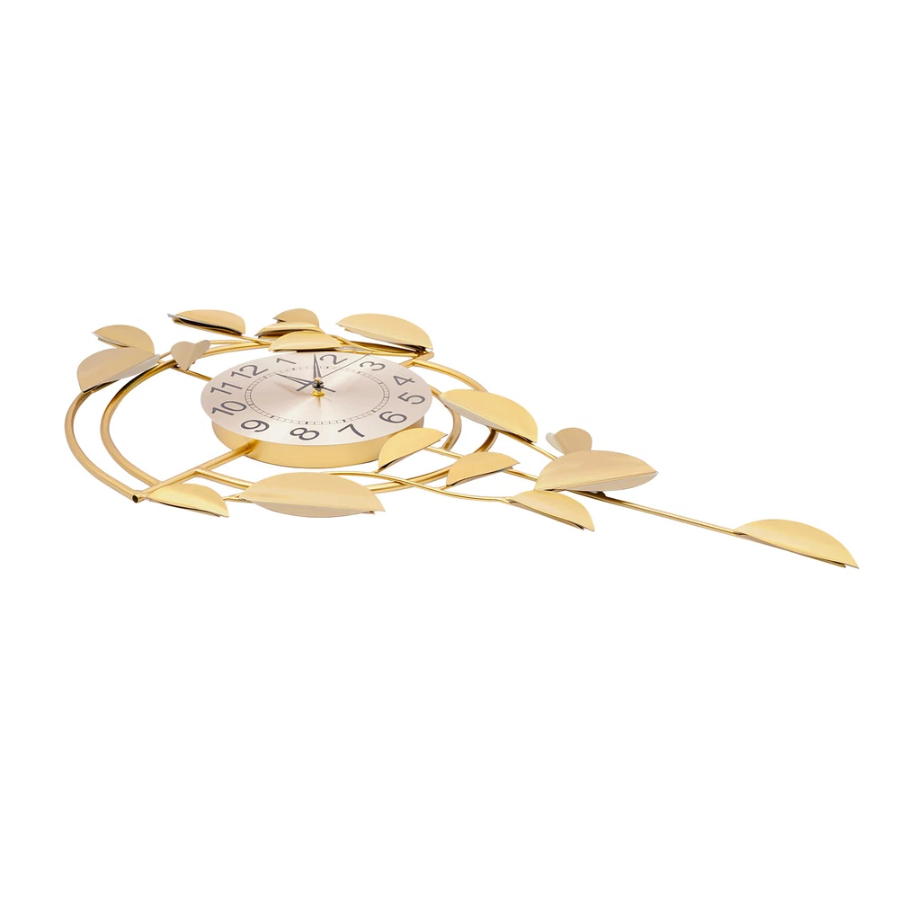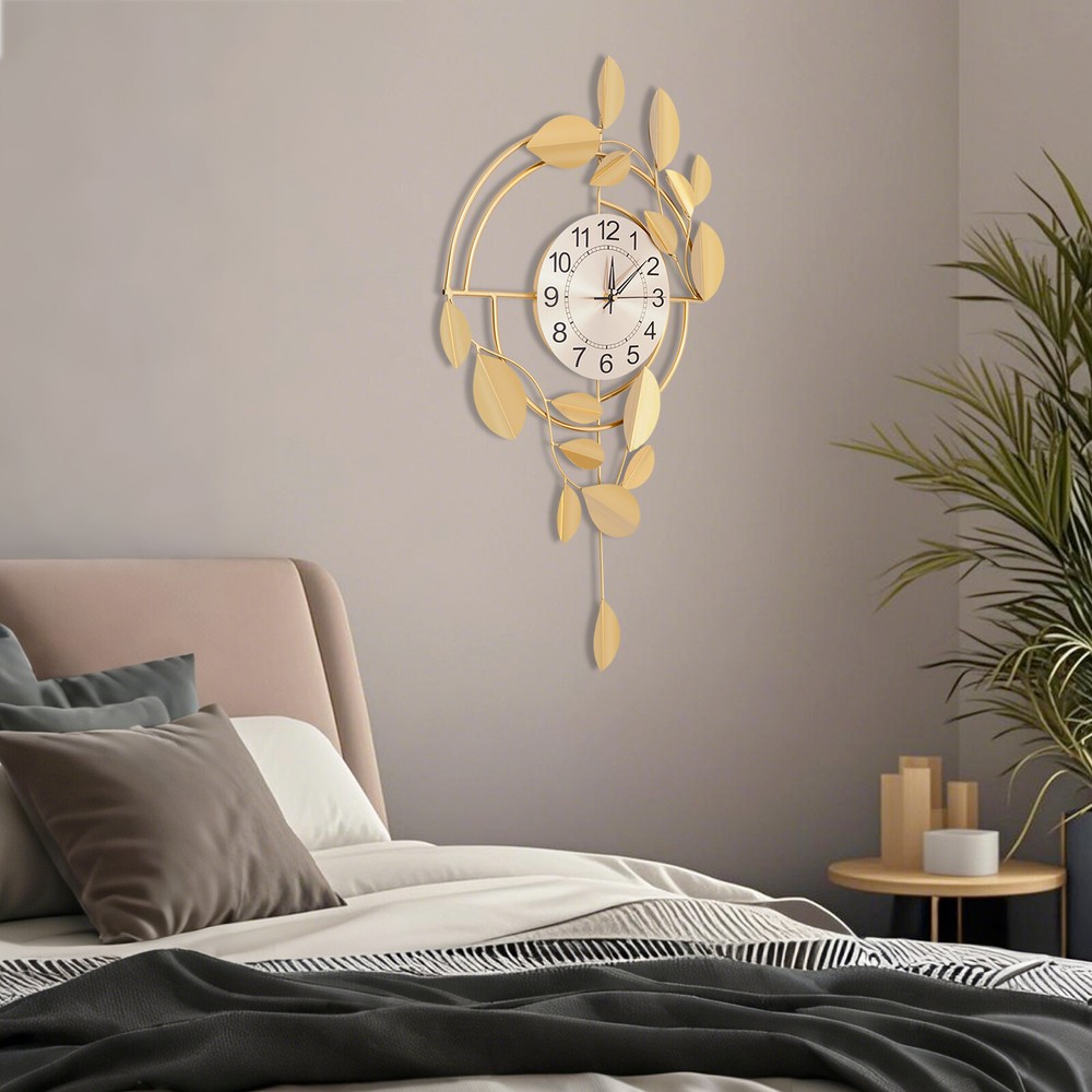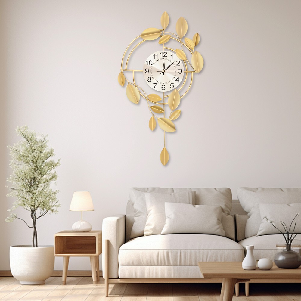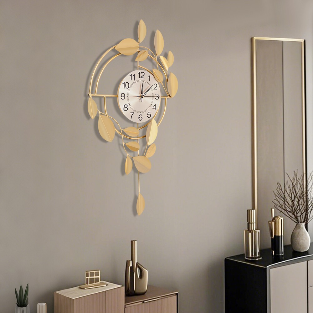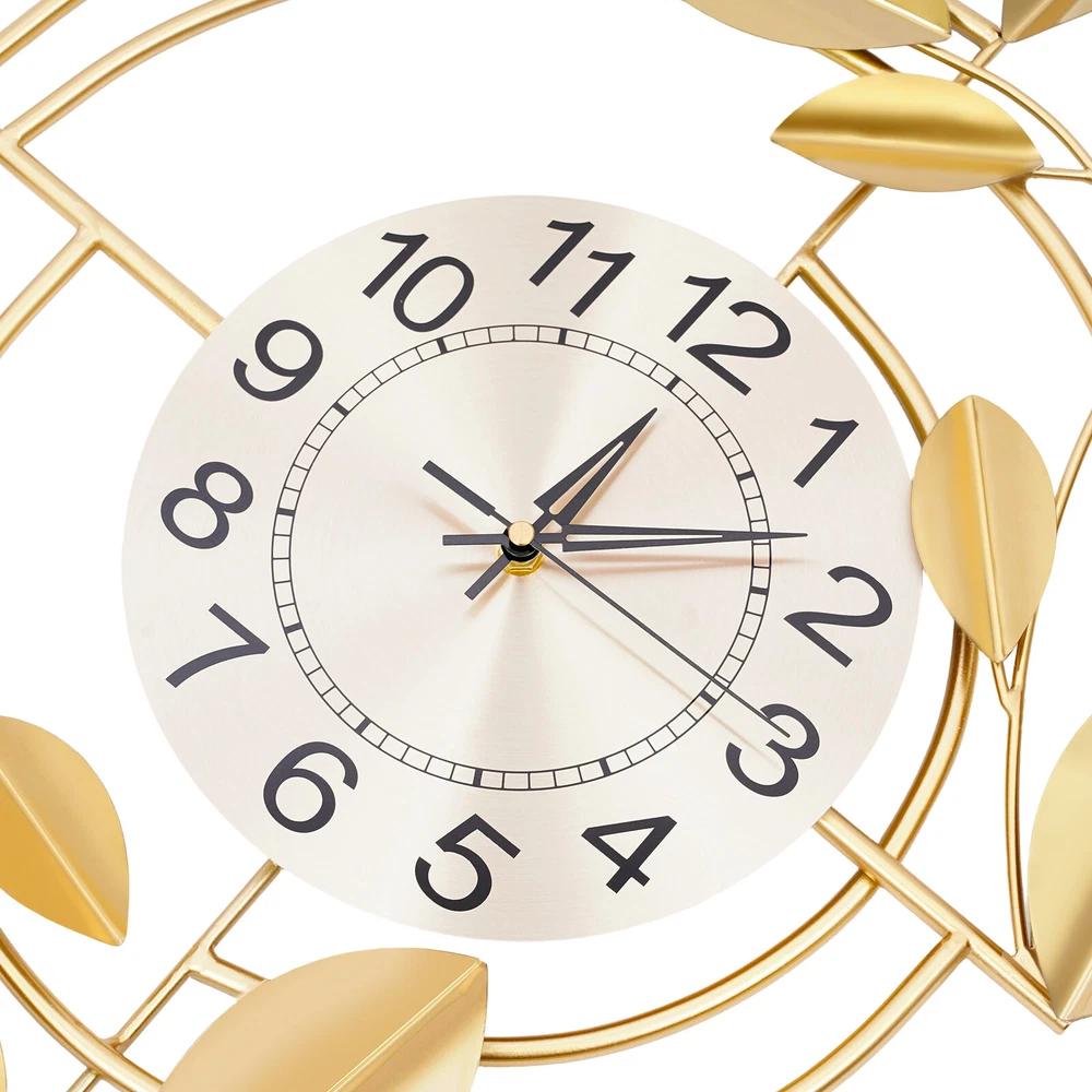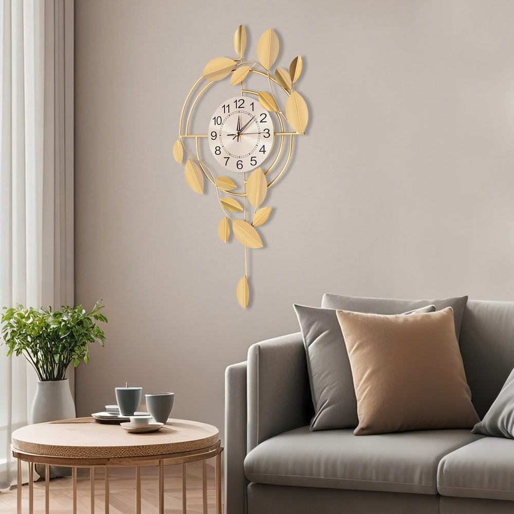 Specification Color: Gold Style: Modern Material: Iron, Stainless Steel, Titanium Plate Process: Spray Painting, Baking Paint, Pasting Installation Type: Wall Mount Assembly Required: No Display Type: Pointer and Number Power Type: 1 * AA Carbon Battery (Not Included) Movement Type: Scanning Second Movement Dial Diameter: 22cm/8.66in Product Size (H*L): 75*44cm/29.53*17.32in Package Size: 81.5*48.5*8cm/32.09*19.09*3.15in Gross Weight: 2.1kg/4.63 lbs Net Weight: 2kg/4.41 lbs Package Included 1* Wall Clock Other Accessories for Installation Welcome to zhuzhubang!Have a nice day! Description This wall clock, with its unique creative design and exquisite craftsmanship, has become a highlight in home decoration. It not only has a precise time display function but also a decorative item full of artistic sense. The sturdy materials ensure its long service life, while the modern design adds a sense of dynamism and elegance to the indoor space. Key Features Premium Materials: It is made of iron, stainless steel, and titanium plate material, with spray painting and baking paint processes, which is rust-resistant , wear-resistant , smooth, and clear, ensuring a long service life. Generous Appearance: The elegant and noble color scheme, beautiful leaf decorations, and circular dial make this product not only a clock but also a creative decoration, adding a sense of elegance to your space. Silent Running: This product uses a silent scanning second movement without clicking sound, providing you with a quiet environment and accurate time. Easy to Read Time : This product features a large dial with a diameter of 8.66 inches, bold Arabic numerals, and well crafted pointers, without blocking of decorations, allowing you to easily read the time from a certain distance. Easy Installation: The simple structure and sufficient installation accessories allow you to easily and quickly install this product on the wall, saving you time and effort. Simple Clean-up: It has a smooth surface and a simple structure, so you only need to wipe the dust or residue with a towel. Exquisite Gift: With good practicability and a modern appearance, it can be used as a housewarming gift for parents, friends, and lovers so that they can also enjoy a more exquisite life. Buy with Confidence: We stand behind all our guests and look forward to assisting you with your purchase. It is our pleasure to answer your confusion and questions. The end of the story between us is not "we sell and you buy". Details Hanging Holes: They allow you to hang directly after nailing the nails, facilitating your installation. Premium Pointers: They run smoothly and display time accurately, allowing you to enjoy peace as time goes by. Application This product is suitable for bedrooms, living rooms, dining rooms, hotels, offices, meeting rooms, corridors, etc. Installation Steps 1. Measure the distance of the hook with a ruler(not included) and mark the hole position on the wall with a pen(not included). 2. Use a 0.24in drill bit(not included) to drill the marked position. 3. Insert the expanded plastic into the hole. 4. Nail the nail into the plastic plug to hang the product. Specification Color: Gold Style: Modern Material: Iron, Stainless Steel, Titanium Plate Process: Spray Painting, Baking Paint, Pasting Installation Type: Wall Mount Assembly Required: No Display Type: Pointer and Number Power Type: 1 * AA Carbon Battery (Not Included) Movement Type: Scanning Second Movement Dial Diameter: 22cm/8.66in Product Size (H*L): 75*44cm/29.53*17.32in Package Size: 81.5*48.5*8cm/32.09*19.09*3.15in Gross Weight: 2.1kg/4.63 lbs Net Weight: 2kg/4.41 lbs Package Included 1* Wall Clock Other Accessories for Installation Notes Please check the size carefully before ordering. Please note that the installation location of the clock should avoid direct sunlight. Please do not use too much alkaline power battery, affecting the life of the movement. Please allow the slight color difference caused by the shooting light and the 1-3 cm error due to manual measurement, and make sure you do not mind before ordering. Payment Delivery details Terms of sales About us Contact us Payment We accept ebay payment 。 Fees such as import duties, taxes are not included in the item price or shipping costs. These charges are the buyer's responsibility. Delivery details Shipping: 2-9 working days to: USA Terms of sales We maintain high standards of excellence and strive for hundred percent customer satisfaction. Feedback is very important to us. We hope that you contact us immediately before you give neutral or negative feedback, so that we can address your concerns. It is impossible to address issues if we do not know about them! About us Your satis faction is our ultimate goal. We work hard to earn your trust and future business. Our certified technicians have tested each item before shipping. The unit comes with 1 year limited warranty on all manufacturing defects. a) If you receive a defective item, you may return it or ask for a discount. Please contact us within 14 days after you receive the package. b) What you returned must be intact and in its original packaging as re? u. Customer is responsible for shipping costs of the returned item. c) We will cover the cost of shipping back t with the shipping rate indicated in the registration page. We will send you a new unit or refund the full payment you paid. Thank you. Contact us Business Hour Business Hour: Monday To Friday: 8:30 AM to 5:00 PM (Beijing China time) Due to time zones, our reply to your questions may not be immediately. But within above working time, we will reply your email within 24 hours. If it's non-workdays, please kindly be patient and wait till Monday. Please contact us with ebay message. Please feel free to contact us if you have any questions. Monday To Friday: 8:30 AM to 5:00 PM (Beijing China time) Due to time zones, our reply to your questions may not be immediately. But within above working time, we will repl
