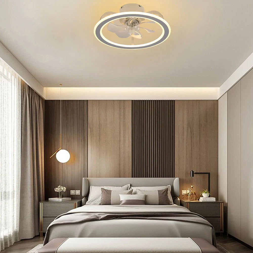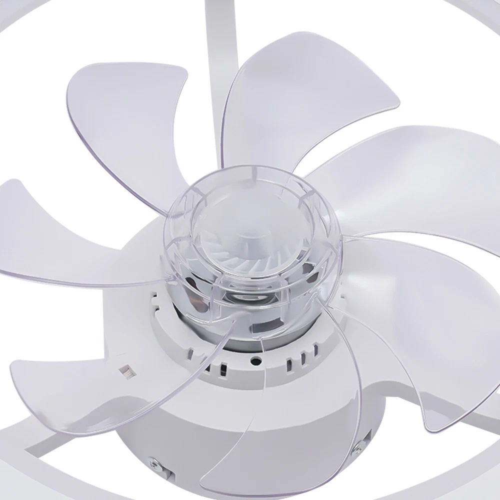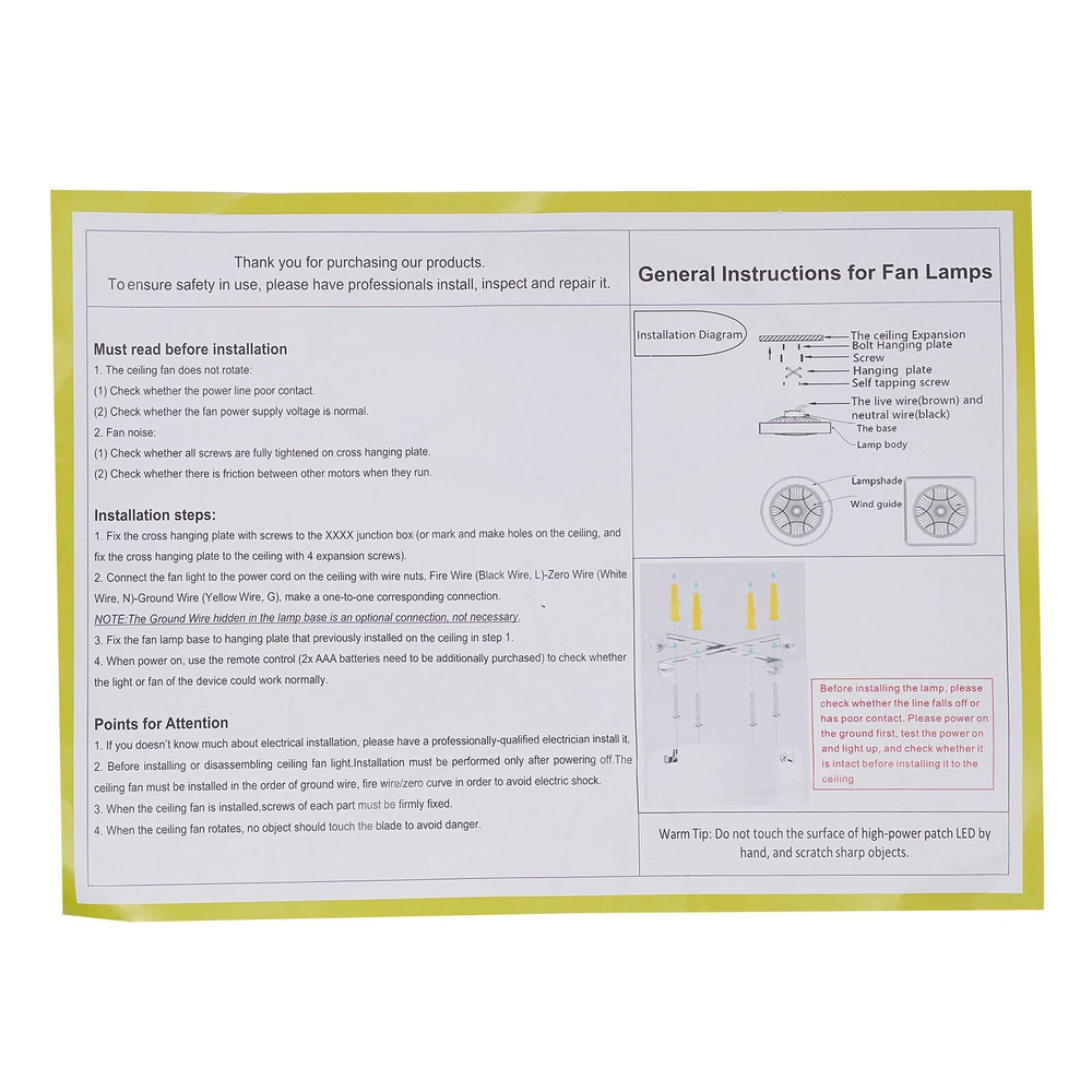 Description This ceiling fan light allows you to feel the bright light and enjoy the coolness at the same time. It has six gears of wind speeds with a timing function to meet your daily usage needs, and you can also reverse the direction of the fan in winter. It can be integrated with different decoration styles and is ideal to create an excellent life and sleep environment to accommodate you in all seasons. Key Features Build to Last: This product consists of ABS blades and an iron lamp body and adopts an injection molding, making it attractive, anti-rust, corrosion-resistant, and sturdy. Wide Application: The size of 17.72"D*6.29" H makes it suitable for various ceiling heights while ensuring better lighting and air circulation effects. And it supports a wide voltage(110-165V), whi Modern Halo Ceiling Fan Light Dimmable Invisible Chandelier Fan APP Control Deco Description This ceiling fan light allows you to feel the bright light and enjoy the coolness at the same time. It has six gears of wind speeds with a timing function to meet your daily usage needs, and you can also reverse the direction of the fan in winter. It can be integrated with different decoration styles and is ideal to create an excellent life and sleep environment to accommodate you in all seasons. Key Features Build to Last: This product consists of ABS blades and an iron lamp body and adopts an injection molding, making it attractive, anti-rust, corrosion-resistant, and sturdy. Wide Application: The size of 17.72"D*6.29" H makes it suitable for various ceiling heights while ensuring better lighting and air circulation effects. And it supports a wide voltage(110-165V), which can adapt to different voltage environments. Multiple Functions: Integrating lighting and fans, this product illuminates the space while balancing room temperature. You can also reverse the direction of the fan in winter, blowing hot air from the top into the room and increasing the indoor temperature. Set up at Will: You can customize the ambiance of any room to suit your needs by infinitely adjusting the appropriate brightness and can experience a range of refreshing breezes and cooling sensations with its 6-speed wind speed function. In addition, the 2H timer function and night mode provide a comfortable and peaceful environment for you to sleep without worrying about catching a cold and wasting electricity. Remote Control: Utilizing a remote control, you can easily adjust the light colors, wind speeds, and other functions while lying in bed, eliminating the need to physically manipulate switches and bringing more convenience to your life. Excellent Lighting: Romantic warm light, comfortable neutral light, and bright white light make it easy for you to create different atmospheres with 3500-6000K color temperatures. Moreover, the energy-saving LED light source with 2400-3600lm has high luminous efficiency and long service life, providing you with the desired lighting effect while protecting your eyes with its soft light. Modern Minimalist: The circular design with white color and clear fan blades make this product simple and elegant, complementing various styles of homes. This is a great decoration for your room. Easy Clean-Up : It has a simple structure and smooth surface. When dust accumulates on the surface, you simply wipe it clean with a towel. Ideal Gift: Thanks to its exquisite design and generous appearance, you can choose this ceiling fan light as a gift for housewarming to your friends. Protective Packaging: Anti-collision foam can effectively avoid losses caused by normal vibration and collision during transportation, ensuring the integrity of the products you can receive to a certain extent. Details Sturdy Base: The 5.91" thickened and enlarged base with pre-drilled holes on the base brackets not only ensures stronger load-bearing capacity and stability but also makes it convenient for you to install this product. Heat Dissipation Holes: They can accelerate heat dissipation, thus preventing internal parts of the product from overheating during operation. Application It is ideal for a space of about 86.11-161.46 ft², including living rooms, dining rooms, foyers, cottages, bedrooms, basements, study rooms, farmhouses, kitchens, hallways, cafes, restaurants, bars, and patios. Installation Steps 1. Fix the cross-hanging plate with screws to the junction box (or mark and make holes in the ceiling, and fix the cross-hanging plate to the ceiling with 4 expansion screws). 2. Connect the fanlight to the power cord on the ceiling with wire nuts, firewire (black wire, L)-zero wire (white wire, N)-and ground wire (yellow wire, G), and make a one-to-one corresponding connection. 3. Fix the fan lamp base to the hanging plate that was previously installed on the ceiling in step 1. 4. When powered on, use the remote control (2*AAA batteries need to be additionally purchased) to check whether the light or fan of the device works normally. Specification Color: White Style: Modern Shape: Round Efficiency: E Material: Iron and ABS Assembly Required: Yes Process: Injection Molding Installation Method: Ceiling Mounted Control Method: Remote Control, Wall Control Battery Model: 2 * AAA Batteries(Not Included) Light Color: White Light, Warm Light, Neutral Light Color Temperature: 3500K, 4500K, 6000K Luminous Flux: 2400-3600lm Number of Items: 1 Number of Blades: 5 Wind Speed Level: 6 Timing Duration: 2 h Voltage: 110-265V Power: 24-36W Power Source: LED Remote Control Distance: 5-8m/16.4-26.25ft Lighting Range: 8-15 ㎡/86.11-161.46 ft ² Base Diameter: 15cm/5.91in Fan Blade Diameter: 30cm/11.81in Product Size(D*H): 45*16cm/17.72*6.29in Package Included 1*Ceiling Fan Light 1*Remote Control 1*English Manual 1*English Instruction for Remote Control All Accessories for Installation Notes Please note that a remote control must be directly facing the light, otherwise, the light cannot be connected to the remote control. A brand-new battery shall be inserted. P