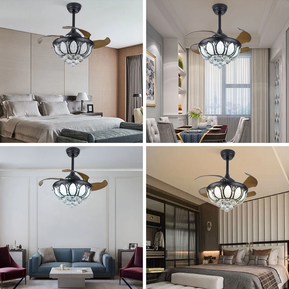 This ceiling fan light is a game-changer! The sleek, invisible design blends beautifully with any decor, while the dimmable LED and remote control make it super convenient. Love how it combines style and function—perfect for keeping cool and setting the mood. Easy to assemble and looks like a high-end chandelier. Highly recommend!
