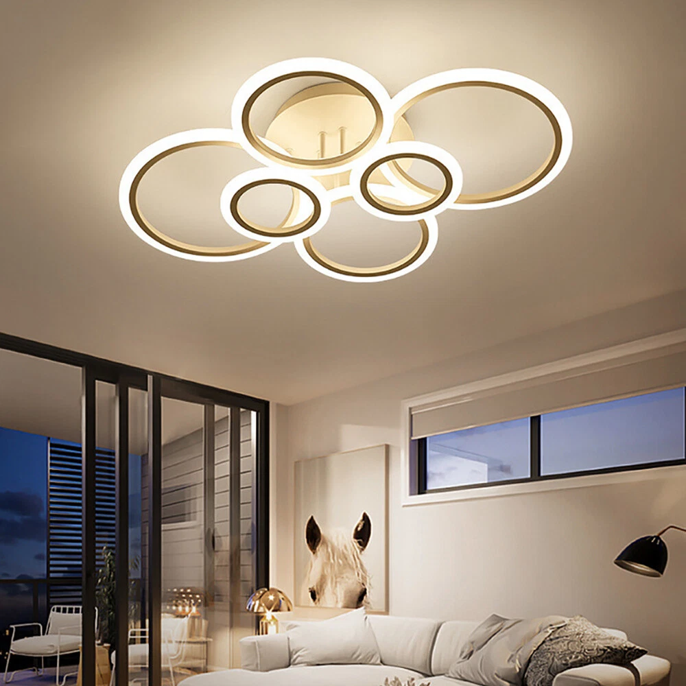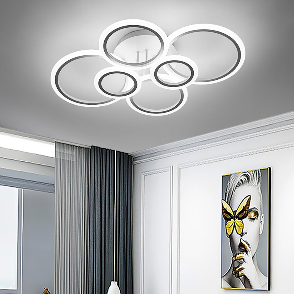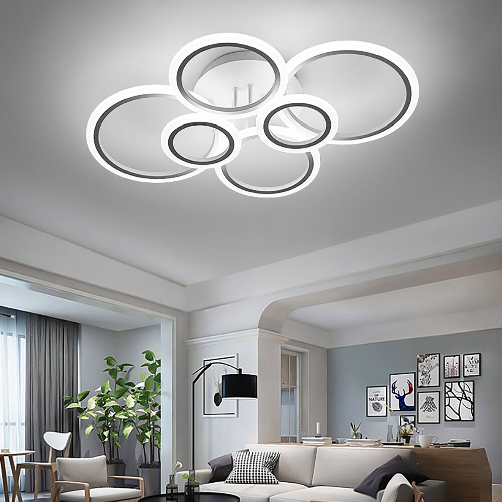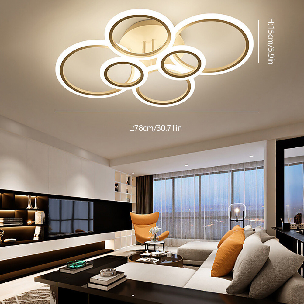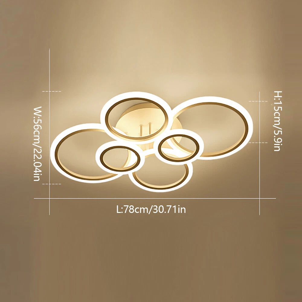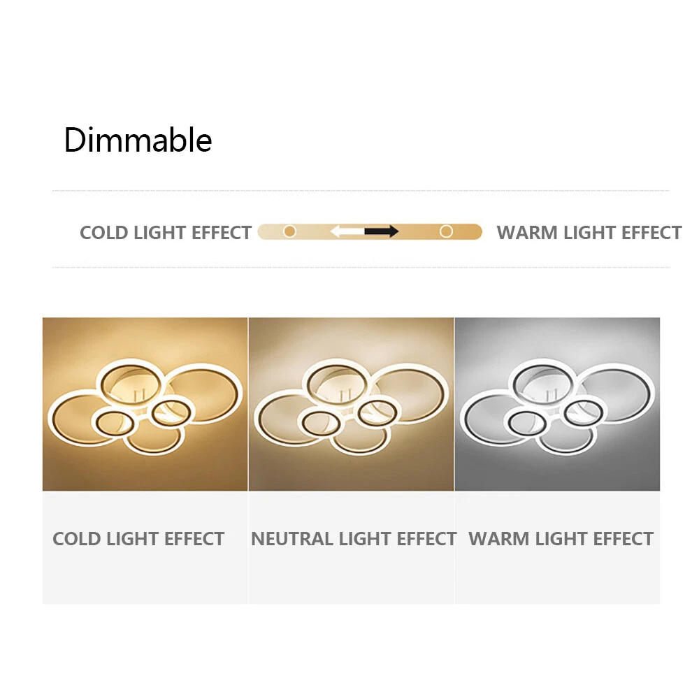 Welcome Description Stepless Dimming L ED Ceiling Light 114W L ED Ceiling Lamp White 6 Rings Lighting Fixture For Living Room, Bedroom, Dining Room, Dimmable Remote Control, 3 Color About This Item ● 【 Stepless Dimmable 】 The color temperature of the LED light can be controlled remotely. There are three light modes(warm light, natural light, white light)From white light to warm light, you can adjust the color temperature at will. Let you have different lights to accompany you during situation, like dinner or rest. So you can DIY your lights as you like. ● 【 Eye Protection 】 Advanced LED lighting can prevent stroboscopic. The specially treated acrylic lampshade can soften the light to a greater degree. This protects you and your child's eyes from harsh light. ● 【 Modern ceiling light Material 】 The Led ceiling light made of high-quality Aluminum+wrought iron chassis+silicone cover, High light transmittance, Not easy to rust. Efficient LED light source, energy saving, soft light without glare. To provide you with a Warm and romantic . ● 【 Specifications 】 Power: 114W. Voltage: 110V. Suggested Room Size: 10-20 ㎡ . Design: Modern. Color: WHITE. Size: 30. 7In*22IN*5. 9IN(78*56*15cm) ● 【 100%Satisfaction Guarantee 】 We have our own factory and a professional engineer team, If there is any quality problem, or you are not satisfied with our products, please contact us for a good solution. Specification : - Voltage: 110V - Material: Metal, Acrylic - Style: Modern - Special Feature: Stepless Dimmable, Adjustable - Color: White - Size: 30. 7In*22IN*5. 9IN(78*56*15cm) - Weight: 1. 7KG Package: 1*LED Ceiling Light 1*Remote control 1*NO Manual (If you have difficulty installing, please contact us) Payment Delivery details Terms of sales About us Contact us Payment We accept ebay payment 。 Fees such as import duties, taxes are not included in the item price or shipping costs. These charges are the buyer's responsibility. Delivery details Shipping: 2-9 working days to: USA Terms of sales We maintain high standards of excellence and strive for hundred percent customer satisfaction. Feedback is very important to us. We hope that you contact us immediately before you give neutral or negative feedback, so that we can address your concerns. It is impossible to address issues if we do not know about them! About us Your satis faction is our ultimate goal. We work hard to earn your trust and future business. Our certified technicians have tested each item before shipping. The unit comes with 1 year limited warranty on all manufacturing defects. a) If you receive a defective item, you may return it or ask for a discount. Please contact us within 14 days after you receive the package. b) What you returned must be intact and in its original packaging as re? u. Customer is responsible for shipping costs of the returned item. c) We will cover the cost of shipping back t with the shipping rate indicated in the registration page. We will send you a new unit or refund the full payment you paid. Thank you. Contact us Business Hour Business Hour: Monday To Friday: 8:30 AM to 5:00 PM (Beijing China time) Due to time zones, our reply to your questions may not be immediately. But within above working time, we will reply your email within 24 hours. If it's non-workdays, please kindly be patient and wait till Monday. Please contact us with ebay message. Please feel free to contact us if you have any questions. Monday To Friday: 8:30 AM to 5:00 PM (Beijing China time) Due to time zones, our reply to your questions may not be immediately. But within above working time, we will reply your email within 24 hours. If it's non-workdays, please kindly be patient and wait till Monday. Please contact us with ebay message. Please feel free to contact us if you have any questions.