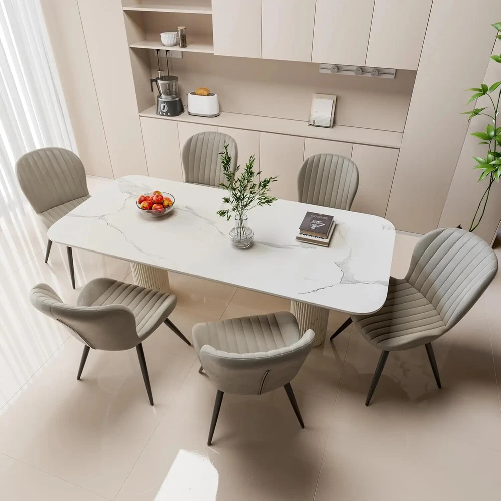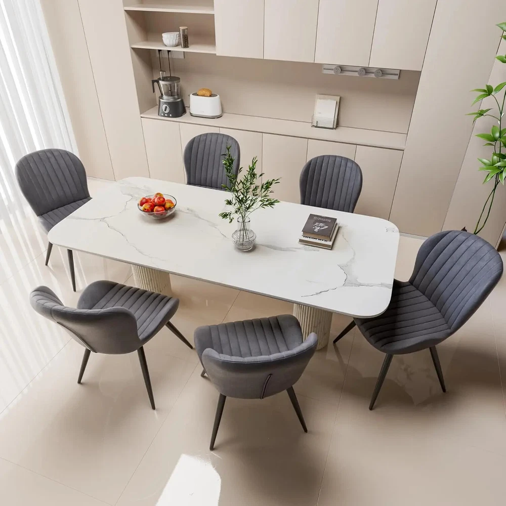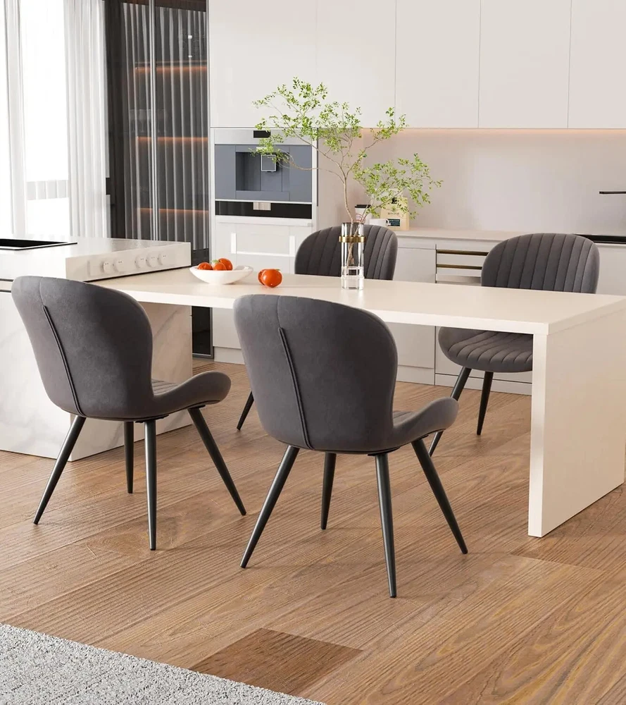 About this item Soft & Breathable Fabric:Experience the ultimate in comfort with our dining chairs, upholstered in high-quality tech cloth. This fabric is not only incredibly soft and breathable but also a breeze to clean. Enjoy a fresh, clean look with minimal effort, perfect for busy households and frequent gatherings. Sturdy Metal Legs: Say goodbye to wobbly chairs and difficult assembly. Our dining chairs are designed with 4 independent metal brackets, offering exceptional stability and support. This thoughtful design ensures that your chairs are sturdy and easy to put together, providing peace of mind and reliability for years to come. Stylish Shell Shape: Add a touch of elegance to your home with our uniquely designed shell-shaped chairs. These striking chairs serve as a stylish centerpiece in any dining room or living space. Their modern design effortlessly complements a variety of décor styles, making them a versatile addition to your home. Ultimate Comfort: Sit back and relax in our chairs that feature a gracefully curved backrest and a wide seat. Designed for maximum comfort, these chairs provide excellent support whether you're dining with family, working from home, or enjoying a quiet moment. Experience the perfect blend of style and comfort with every use.
