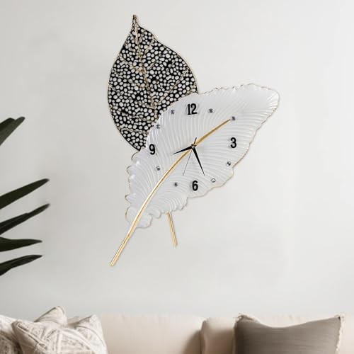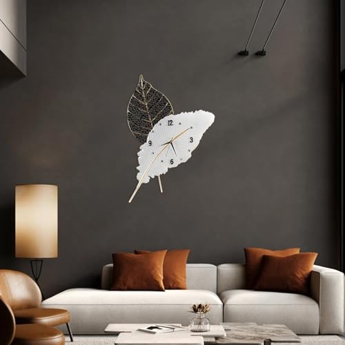Modern Feather Wall Clock Large Black Leaf Design for Living Room Decor