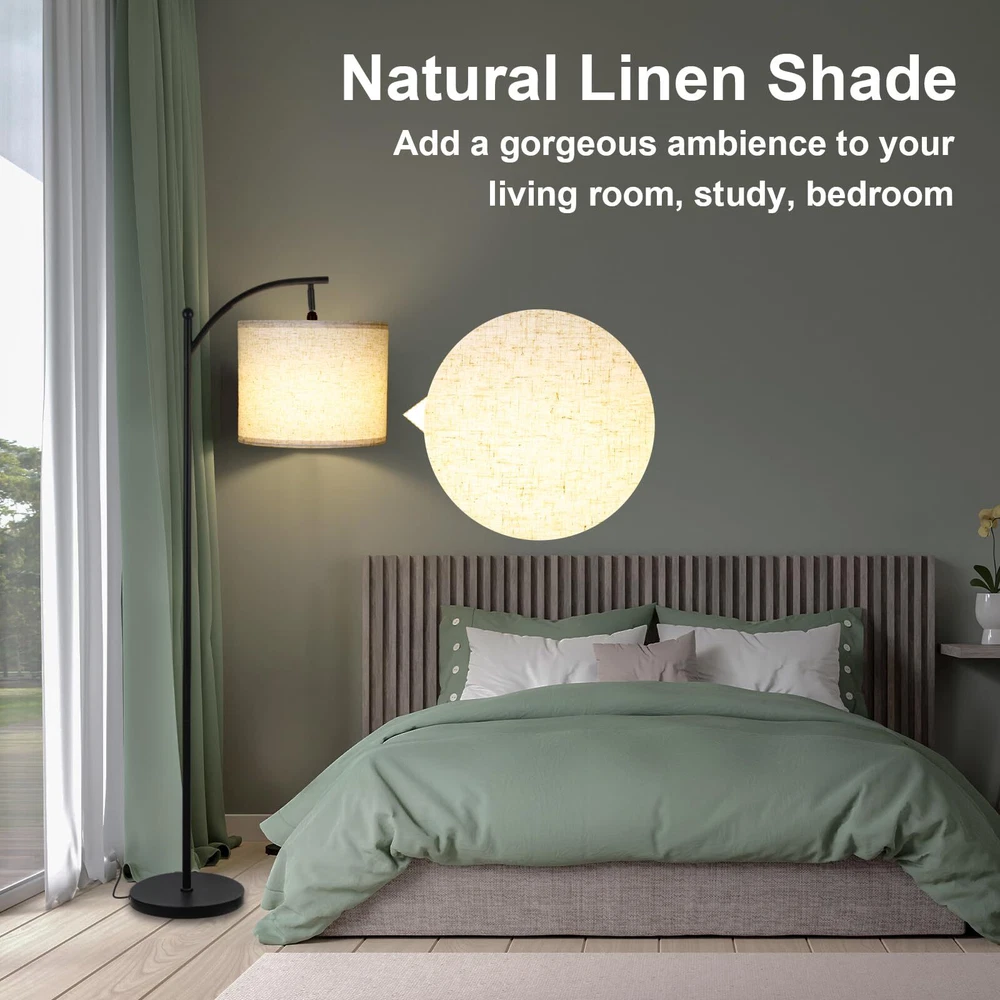Elevate Your Space with our Eye-Caring Floor Lamp - LED Bulb Included Reduced Eyestrain: We understand the strain that harsh lighting can put on your eyes, particularly during long hours of work or study. That's why our floor lamp features a fabric linen lampshade designed to gently diffuse the light. The warm, soft illumination combined with the diffused light minimizes eyestrain, making it an ideal choice for creating a comfortable workspace or relaxation spot. Thoughtful Design: Our floor lamp is not just a source of light; it's a piece of modern design that seamlessly integrates with your decor. Its sleek and stylish design adds a touch of elegance to any room, making it a functional yet aesthetic statement. Practicality Meets Beauty: Functionality is essential, and our lamp excels in this aspect. It adapts effortlessly to your specific needs, whether you require focused task lighting or a gentle, ambient glow. The pull chain design offers convenient on/off control, making it perfect for reading, working, or simply enhancing the atmosphere. Energy Efficiency for a Greener Tomorrow: By choosing our floor lamp with an included LED bulb, you're making a conscious choice for both your wallet and the environment. LED bulbs are renowned for their longevity and reduced energy consumption, making them a sustainable and environmentally friendly choice. 【Modern 3-Ways Dimmable Floor Lamp】: Experience the convenience of 3-level brightness control (low, medium, high) with our floor lamp. This foot-step switch ingenious design not only adds a stylish touch to your space but also ensures seamless operation, especially beneficial for mothers tending to their babies or seniors. Enjoy the gradual transition of brightness from 30% to 70% to 100%, perfectly tailored for activities such as painting, reading, or working, all at the touch of your toes. 【Versatile Adjustable Floor Lamp】: Our floor lamp seamlessly combines style and practicality. It offers customizable height options, effortlessly transforming into a bedside or table lamp whenever you want. With adjustable heights ranging from 37.4'' to 51.1'' and 57.48'', it accommodates a wide range of preferences. This adaptable floor lamp complements any room decor, whether it's industrial, modern, or traditional. 【Adjustable and Rotating Lamp Head】: Feature a flexible design with a rotating lamp head, allowing you to adjust the lamp shade both horizontally and vertically. Customize the angle of the lampshade to your liking, making it perfect for reading and working tasks. This versatile lamp is suitable for both bedside and study table use, offering tailored lighting for any space. It is an ideal choice for creating a comfortable workspace or relaxation spot. 【Upgraded Foot-Step Switch Bedroom Floor Lamps】: Elevate the ambiance of your bedroom with our sophisticated floor lamp, meticulously crafted for seamless control through an innovative foot-step switch. The foot-step switch ensures effortless on/off control, providing the ultimate user-friendly experience for reading, studying, or working in your space. Upgrade your lighting experience and embrace the ease of control with our stylish and versatile bedroom floor lamp. 【Eye-Caring & Energy-Efficient Lighting】: Our floor lamp provides soft and soothing illumination, creating a warm and inviting atmosphere in your living room, bedroom, or office. It comes with an efficient E26 LED bulb, equivalent to a 60W warm white light (2700K), saving you over 90% on energy costs. The fabric linen lampshade complements the warm tone of the light, diffusing it gently to reduce eye strain and promote a comfortable ambiance in your space.