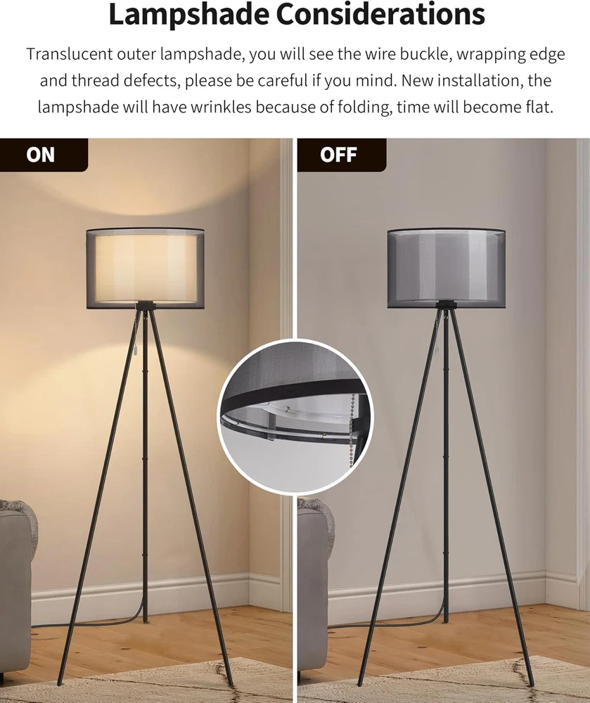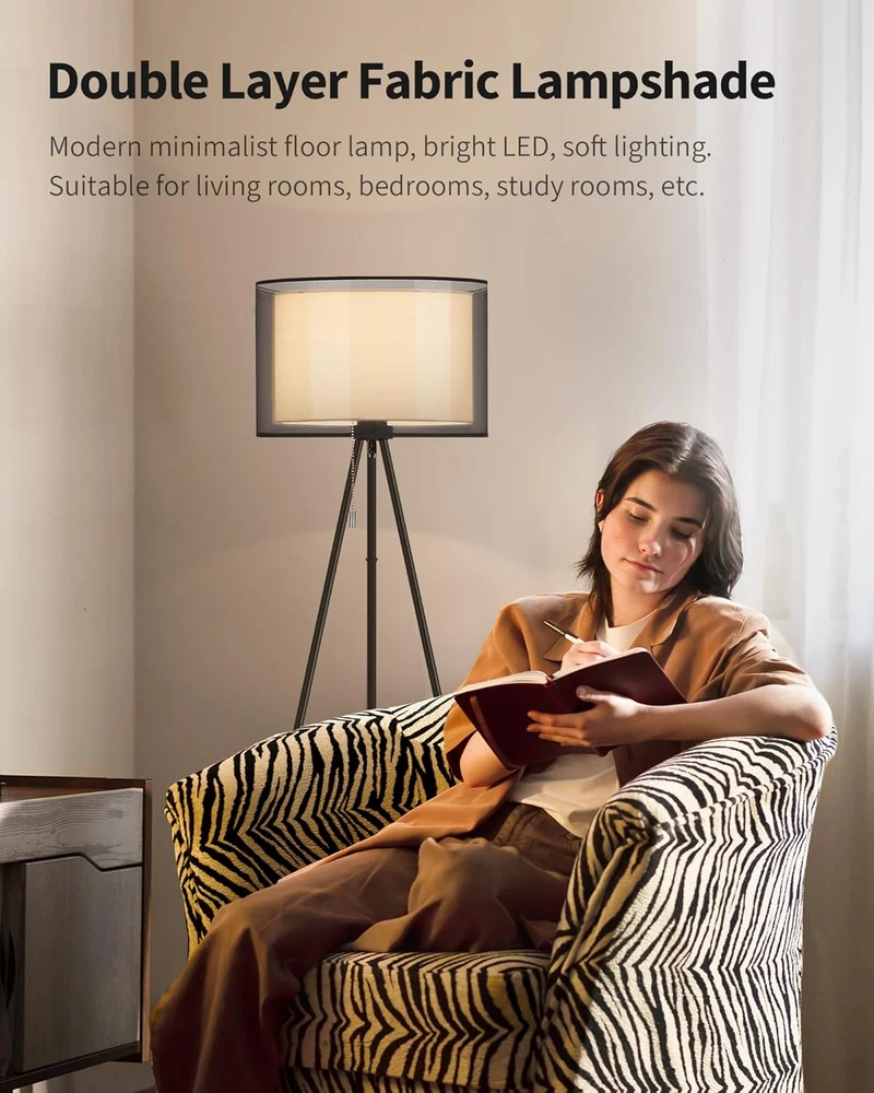 Store New Arrivals Add to Favorite View Feedback Contact Modern Floor Lamp for Living Room, Tall Tripod Floor Lamp Corner Lighting, Fabric Lampshade LED Bulb Bright Pole Light, High Light for Bedroom, Reading, Office, Study Room, Warm Light(Black) Description Item model number AMZ-TBL-009-1-B Light Source Type LED Style Modern Number of Items 1 Power Source Corded Electric Number of Light Sources 1 Control Method Touch Is Electric Yes Batteries Included? No Lighting Method Uplight Mounting Type Floor Mount Maximum Compatible Wattage 60 Watts Number of Pieces 1 Room Type Office, Bedroom, Living Room, Study Room, Kids Lamp Type bulb Switch Type Pull Chain Product Dimensions 12.6"D x 12.6"W x 58.9"H Material Metal, Fabric Installation Type Freestanding Age Range (Description) Adult Finish Type Coated Specific Uses For Product Indoor use only Color Rendering Index (CRI) 80.00 Indoor/Outdoor Usage Indoor Bulb Base E26 Water Resistance Level Not Water Resistant Batteries Required? No Item Weight 2.65 Kilograms Connectivity Technology USB Connectivity Protocol Homeplug Special Features E26×1 Max.60 Watt Bulbs, Pull Chain Switch, Double Lampshade, Easy to install, Stable Base Special Feature E26×1 Max.60 Watt Bulbs, Pull Chain Switch, Double Lampshade, Easy to install, Stable Base Part Number AMZ-TBL-009-1-B Shade Color Black Color Temperature 3000 Kelvin Color Black-A Wattage 7 watts Base Material Metal Is Waterproof False Shape Drum Voltage 110 Volts Recommended Uses For Product Reading Shade Material Fabric Finish types Coated Included Components Shade included Size Tripod Floor Lamp 【Wonderful Lighting Atmosphere】This floor lamp has an E26 bulb base, we will configure a 7W LED bulb, 3000K warm light, no flickering, no humming, energy saving and bright. The light shines through the fabric lampshade, which is even and soft, and you can enjoy a harmonious and comfortable atmosphere with your family or friends. Of course, you can also purchase bulbs with other color temperatures for installation, the maximum not exceeding 60W, which is easy to operate. 【Convenient Pull Chain Switch】This floor lamp has a convenient Pull Chain, when it is placed next to your sofa or chaise longue, it can be easily controlled on/off with a simple pull of the chain, making it the most suitable lighting option for reading, studying or working . Its cord length is 79 inches, which is long enough to extend from the socket to the seat, sofa, armchair, etc., and can be easily moved to where you need to use it without taking up too much visual space. 【Sturdy and Safe】This floor lamp is built with a sturdy metal pole and a weighted metal base, which has good stability and prevents accidental tipping. Industrial floor lamp suitable for farmhouses. Choose fabric to make the lampshade, which is dirt-resistant and easy to clean. The surface of the lamp body is evenly painted to resist corrosion. It will not rust or fade after many years of use. It can stand the test of time. Its high-grade texture can decorate any home style. 【Modern Design】LED floor lamp, textured metal light pole, showing simple lines. The stylish black outer lampshade and the gentle white inner lampshade create a different aesthetic feeling. Translucent outer lampshade, you will see the wire buckle, wrapping edge and thread defects, please be careful if you mind. New installation, the lampshade will have wrinkles because of folding, time will become flat. 【Gift Selection and After Sales】This floor lamp has a stylish appearance, classic and versatile. There is an instruction manual in the package, which introduces the installation method of the lamp in detail, and it is easy to install within 10 minutes. It is the best choice for gifting to family and friends, especially as a housewarming gift or holiday gift. If you have any dissatisfaction or questions after receiving the package, please feel free to . We're happy to help. Product Description KDG Modern LED Floor Lamp Create a romantic lighting effect to your home with a high brightness LED light source that emits soft light through a double-layer lampshade, and a simple and textured shape. KDG is a brand that focuses on customer experience. Our products are sold all over the world and are loved by consumers in all regions.We are very good at using simple methods to design products that are not simple. Such products are easy to match and not easy to be outdated. KDG Modren Floor Lamp This floor lamp has a double-layer shade that emits soft light evenly, layered and textured. If you want to make your bedroom or living room more cozy, the KDG Floor Lamp has you covered. This tall floor lamp features a 3000K warm light that warms the room and protects your eyes at the same time. It is great for protecting your eyes from bright light irritation even when reading, working or sleeping. Perfect for next to the couch or your favorite reading area. Simple design takes up minimal space Double Fabric Lampshade Pull chain switch for convenience Suitable for work and reading Inner white lampshade, outer translucent lampshade,soft and textured light effects. The body of the lamp is painted in black, and the high load-bearing base is more sturdy. Translucent outer lampshade, you will see the wire buckle, wrapping edge and thread defects, please be careful if you mind. New installation, the lampshade will have wrinkles because of folding, time will become flat. Why Choose KDG Floor Lamp? Each floor lamp is made of durable raw materials. The bulb used is an LED bulb, which is more efficient than a regular incandescent bulb. The lampshade is waterproof, oil-proof, easy to clean, durable and non-deformation. This modern table lamp has a very sturdy base with good stability. Easy to install Parameter Material: Metal + Fabric Size: D12.6×H58.9(H60) inches Input Voltage: 110-120V Power: E26×1 Max.60W Light Source: 7W LED Buld Color Temperature: 3000K Switch: Pull Chain UL Plug Cord: 78.7 inches This floo