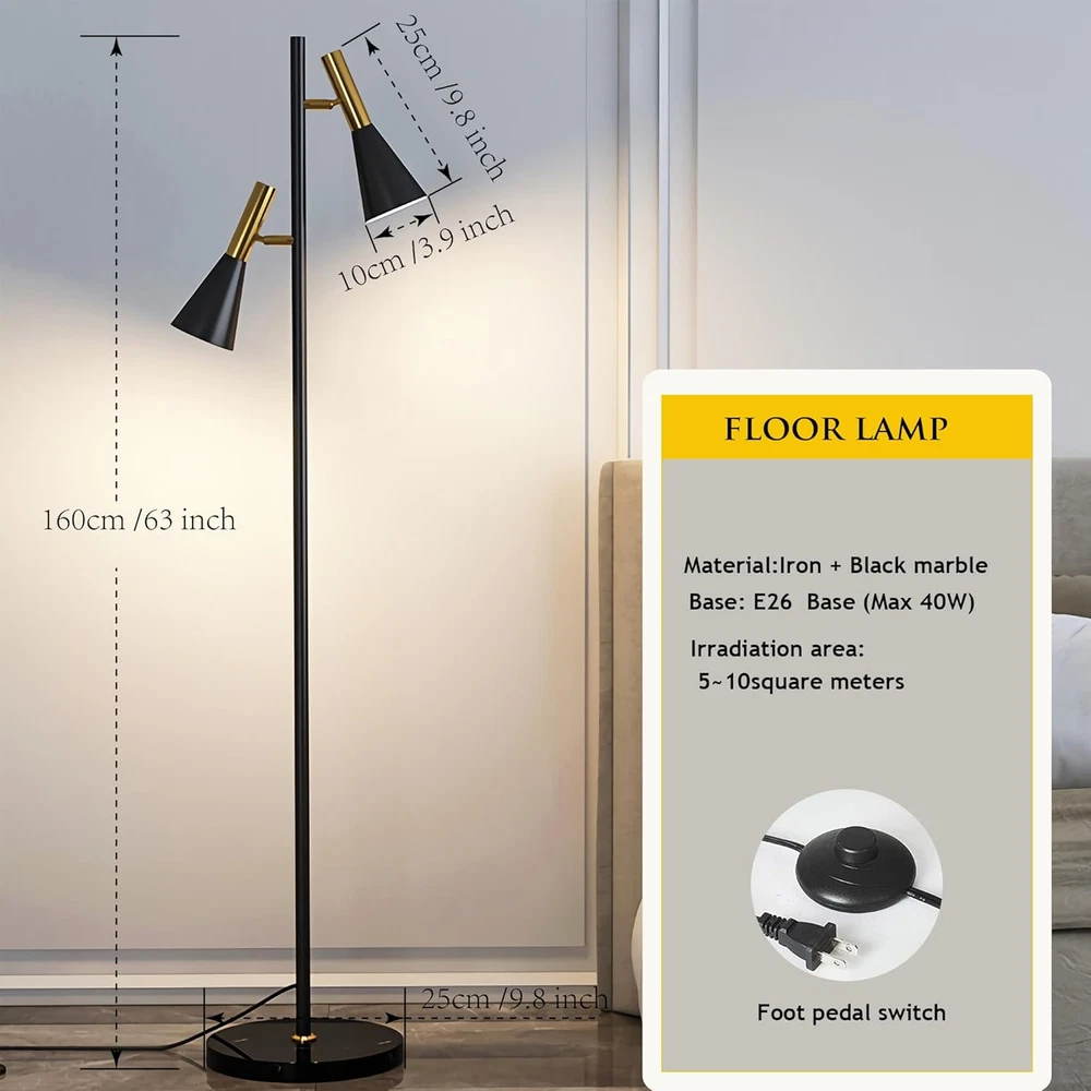 Store New Arrivals Add to Favorite View Feedback Contact Modern Floor Lamp with 2 Adjustable Head Tall Pole Uplight for Living Room, Bedroom, Office,Gold and Black Corner Light for Reading (Black and Gold) Description Item model number F-220212-01 Light Source Type LED Style Modern Number of Items 1 Power Source AC Number of Light Sources 2 Country of Origin China Batteries Included? No Lighting Method Adjustable Maximum Compatible Wattage 40 Watts Number of Pieces 1 Room Type Living Room, Bedroom, Dining Room, Study and Office. Lamp Type Floor Lamp Bulb Shape Size A19 Product Dimensions 9.8"D x 10.6"W x 60.6"H Material Metal Installation Type Freestanding Controller Type Foot Control Finish Type Coated Specific Uses For Product Indoor use only Indoor/Outdoor Usage Indoor Bulb Base E26 Control Method Touch Water Resistance Level Not Water Resistant Batteries Required? No Item Weight 12 Pounds Connectivity Technology USB Connectivity Protocol Homeplug Special Features Corded Special Feature Corded Part Number F-220212-01 Shade Color Black and Gold Mounting Type Pole Mount Color Black and Gold Wattage 4 watts Is Cordless? No Base Material Marble Is Waterproof False Shape Round Voltage 110 Volts (AC) Recommended Uses For Product Reading Shade Material Metal Finish types Coated Included Components Shade included Brand Asmymh Switch Type Push Button 【Perfect Design】This modern floor lamp has 2 metal lamp heads of the tall floor lamp for bedroom can be rotated by 350°and adjusted by 90° up and down. The metal lampshade matched with gold and black is matched with black lamp pole and black marble, which makes it more frequent and beautiful.The floor lamp features with 2 Independent lampshade. you can place the light next to your couch, point the metal heads to each seat on the sectional and have many people reading at once. 【Modern Style】This stylish metal floor lamp is designed with smooth lines, A perfect addition to your home with any décor, could match modern, urban, classic, traditional decoration. It takes up little space, perfect for your bedroom, living room, study, hallway, dining areas and office to meet your needs. 【LED Bulbs Included】The floor lamp for bedroom, livingroom comes with two E26 LED Dimming bulbs, saving you time and cost in finding compatible bulbs.The led floor lamp can save up to 90% on your electric bill in comparison to halogen or incandescent bulbs. You can also choose different wattage E26 Dimming bulbs for the living room lamps according to your need (Max.40W).The tree floor lamp Dimensions:63" high overall, Base is 9.8" wide at the bottom Each shade is 9.8 " high x 3.9 " wide; 【Switch and base】The standing tall pole lamp is controlled by a footswitch, easy to turn on/off, and also gives the modern floor lamp a clean outlook; The base is designed with a weighted marble so it will not easily tip,because base is made by original marble,the color of the marble may have some difference due to different lots. 【Easy to Assemble】With detailed assembly instruction, it is easy to set up your floor lamp within several minutes. The lampshades are easy to clean, dust on the surface can be easily removed by wiping with a damp cloth. If you have any questions after receiving the product, please the first time, we will strive to provide you with satisfactory service. Product Description Modern Floor Lamp This floor lamp a no nonsense lamp, you can turn the heads in the direction that best suits your light needs. Package Includes 1× Floor Lamps (2-Heads) 1× User Manual Includes 2 LED bulbs. Floor lamps for living room clearance Great for either reading or accent light. This is just what was needed for a small corner reading nook. you can rotate the lights up and down to deliver the light where it is needed, easy to assemble. Style:Modern style floor lamp Switch:Foot Switch Power source: Corded Voltage: 110V Height: 63 inch Marble Base: 9.8inch Material: Marble, Metal Floor lamps for living room This eye-catching metal floor lamp features a unique 2 light design, a black and gold finish .Add a touch of industrial style to your decor - whether it's set behind the couch, sitting next to your bed, stationed in the office, or tucked in your favorite reading nook.Lamp is 63" tall and has the shades measuring 3.9" x9.8" wide.The E26 socket uses 60-watt maximum E26 bulbs( included). Natural marble Marble base is nice and heavy and haven’t had any issues with tilting or wobbling. Metal lampshade The metal lampshade with gold and black is more beautiful, and can be rotated up and down by about 180 and up and down by about 270. American standard footswitch and plug American footswitch and plug are safe and durable. ABOUT US We offer the best prices around on high quality products. Our E-store includes media such as books, movies, music and games while offering electronics, toys, sporting apparel, clothing, tools, general home, garden items and more. SHIPPING We are always working hard to ensure your package arrives as soon as possible. Please understand that some factors like weather, high postal traffic, and the performance of shipping companies are outside of our control. We offer free shipping to the lower 48 states and ship within 2 business days of payment, usually sooner. We do not accept P.O. Boxes. Please provide a physical address. For shipping outside of the continental USA, we only use eBay's Global Shipping Program.The item is shipped to KY and then sent to the rest of the world. International customers are responsible for all duties and taxes. Continue to check out in order to calculate costs for shipping the item to your country. Messages regarding eBay's Global Shipping Program MUST be directed at eBay EXCLUSIVELY. RETURNS We offer a 30-Day Return Policy on items which you are not completely satisfied with. You have the option for a full-refund or an exchange of the item. No returns are available on items shipped outside of the USA. PAYMENT We accep