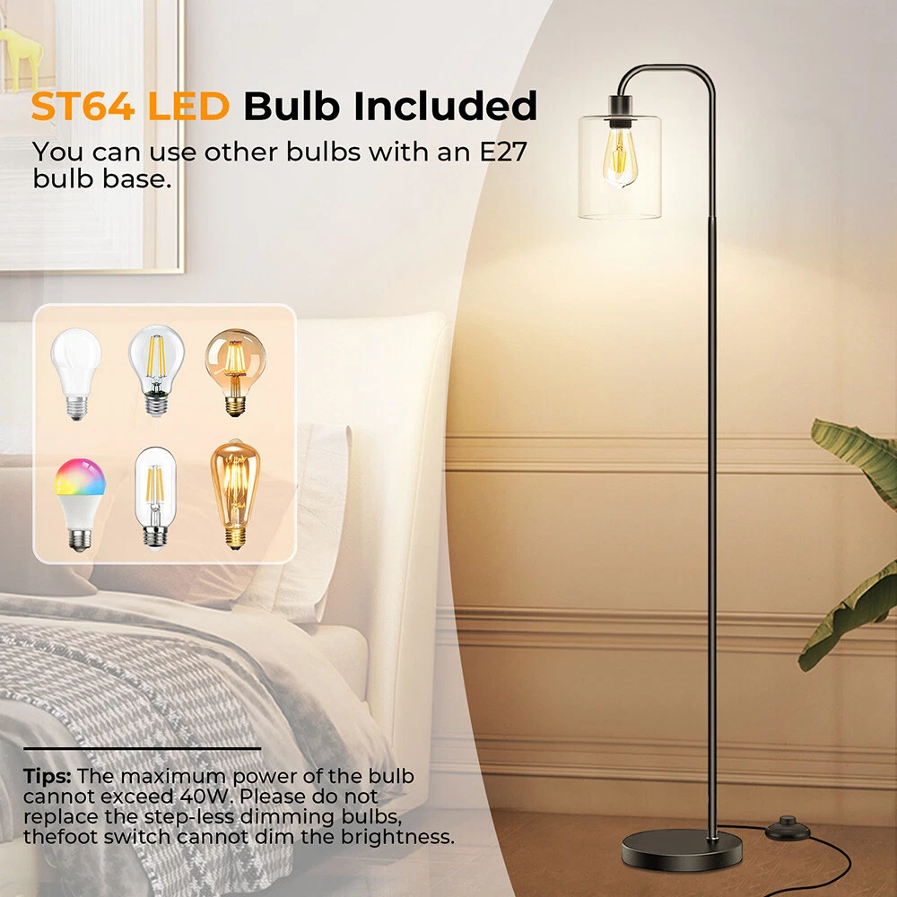 You may also like LED Floor Light Dimmable Standing Reading Linen Lampshade Tall Modern LivingRoom 69.79 USD Free shipping Boho Floor Lamp Rattan Standing light Dimmable Farmhouse Living Room 3 LED Shade 95.19 USD Free shipping 55'' Modern Floor Lamp LED Dimmable Standing Light Reading Gooseneck Living Room 35.39 USD Free shipping Smart LED Floor Lamp Corner Light RGB Modern App Remote Control Music Sync Party 41.59 USD Free shipping Product Description Industrial Floor Lamp with Glass Shade Modern Bright Floor Lamp with LED Bulbs Industrial Standing Lamp Tall Pole Lamps Floor Lamps for Living Room Bedroom Office Description: Features: 【Black Floor Lamp with Modern Design】Our floor lamp design style is simple and modern and can match different styles of furniture you want. The black standing lamp fits perfectly in your living room, bedroom, corner, or office takes up very little room, and has a classy, retro look to it. Floor lamps for the living room's bright lighting blend in and provide an unassuming accent to the space. 【Replaceable LED Bulb】The modern floor lamp with 3000K 6W LED bulbs provides warm white light to create a comfortable atmosphere for your home. This light bulb is replaceable and can be changed to the type you want according to your preferences. We have already provided you with an ST64 bulb, so you don't need to buy any more. 【Heavy Base, Safe to Use】The industrial floor lamp has a highly stable base and light pole and can stand firmly on the floor, which prevents the elderly, children, and pets from being overturned. The standing light has a rust-resistant black metal body and a sturdy clear glass shade, making it look gorgeous and expensive. 【Foot Pedal Switch, Liberate Your Hands】In order to bring more convenience to your life, we specially chose the foot switch design for the floor lamp. The on/off switch is a push button that sits on the floor so you can press it with your foot easily. With the simple flick of a switch, you can get lighting or not. 【Easy to Assemble】This living room lamp can be easily assembled without tools, as all the detachable components are included in the package. In just a few minutes, you can follow the instructions to put all parts of the tall lamp together. Specification: Material: Iron, Glass Color: Black Light Color: Warm White Input Voltage: 110V, 220V Light Source: E27 Light bulb Lamp Power: 6 W Height: 65 inches/165 cm Power Cord Length: 70.8 in(180 cm) LED lamp Control: Footswitch Need to install: Yes Package includes: 1× Floor Lamp 1× Base 1× Glass Lampshade 1× LED Bulb Payment Shipping Returns Contact Us Paypal. We only ship to confirmed paypal address. Items are generally dispatched within 1~3 business days after payment is cleared. Please make sure your address in Paypal is matched with your shipping address before you pay. We offer a 30 days return guarantee. If you are not satisfied with the item, you can return it within 30 days after item received. If items have any problem due to quality, please contact us for refund, exchange or a replacement. Please contact us first before item returned. Customer Service from 9:00 am - 6:00 pm on Business Days. Payment Paypal. We only ship to confirmed paypal address. Shipping Items are generally dispatched within 1~3 business days after payment is cleared. Please make sure your address in Paypal is matched with your shipping address before you pay. Returns We offer a 30 days return guarantee. If you are not satisfied with the item, you can return it within 30 days after item received. If items have any problem due to quality, please contact us for refund, exchange or a replacement. Please contact us first before item returned. Contact Us Customer Service from 9:00 am - 6:00 pm on Business Days. powered by