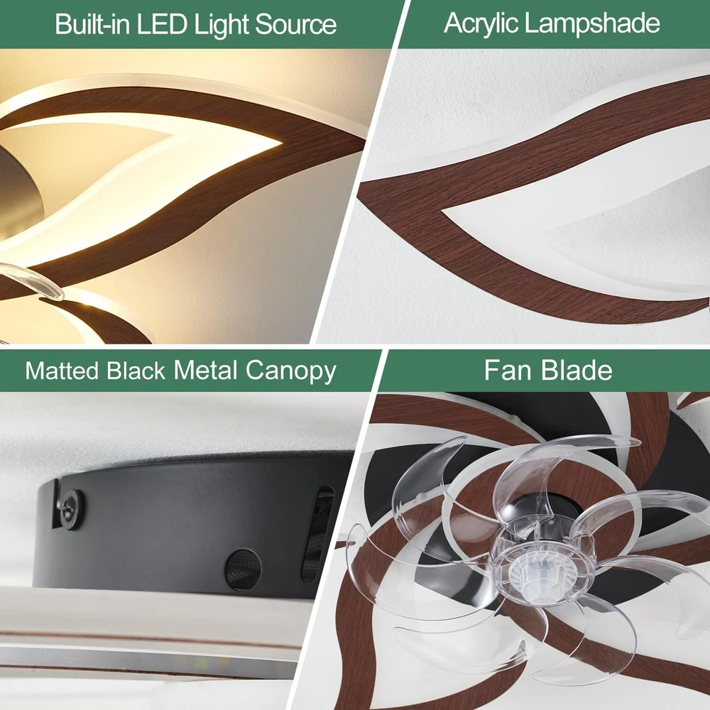 Modern Ceiling Fan with Lights, Flush Mount Ceiling Fan with Remote, Low Profile Ceiling Fan with 3 Light Color 6 Speeds, bladeless ceiling fans for Kitchen Bedroom Malnutcolor 【2-in-1 Ceiling Fan with Light】—The low profile ceiling light and modern geometric ceiling fans can work independently, providing comfortable lighting for your family, while bringing cool wind. 【Reversible Ceiling Fan with Lights】—This geometric ceiling fan light can rotate in both forward and reverse directions, It releases a large amount of cold air in summer mode, and turns on reverse mode in winter to keep the room warm and make you feel more comfortable in any space. Suitable for rooms ranging from 150 to 250 ft², such as living rooms, bedrooms, dining rooms, nurseries, or children's rooms. 【Remote Control & APP】—This flush mount ceiling fan with light has 6 different wind speeds dand a 1/2 hour timing setting, as well as stepless dimming function, all of which can be controlled by the remote control/APP. 【Three Color Dimming Fan with Light】—Modern designed LED slim ceiling fan lights. You do not need to purchase additional bulbs. At the same time, it has 3000K warm light, 4500K medium white, 6000k cold white, and 3-level brightness to meet different lighting needs. 【With Light Memory Function】—This small ceiling fan with light has a light memory function. If the light is turned on for more than 10 seconds each time, the next time the light is turned on, the brightness and color temperature of the light from the last time it was turned off can be maintained. 【Satisfied After-sales Service】— We provide 1 of after-sales service. If you have any after-sales issues with the intelligent ceiling fan with lights, you can send an to consult us 24 hours a day, and we will definitely solve them for you. innovation in fan lamp. Own factory, patents, great components, and expertise in design create energy-efficient and stylish fan lights, suitable your house.