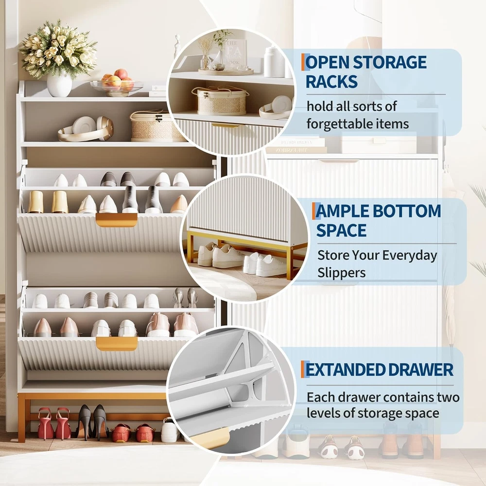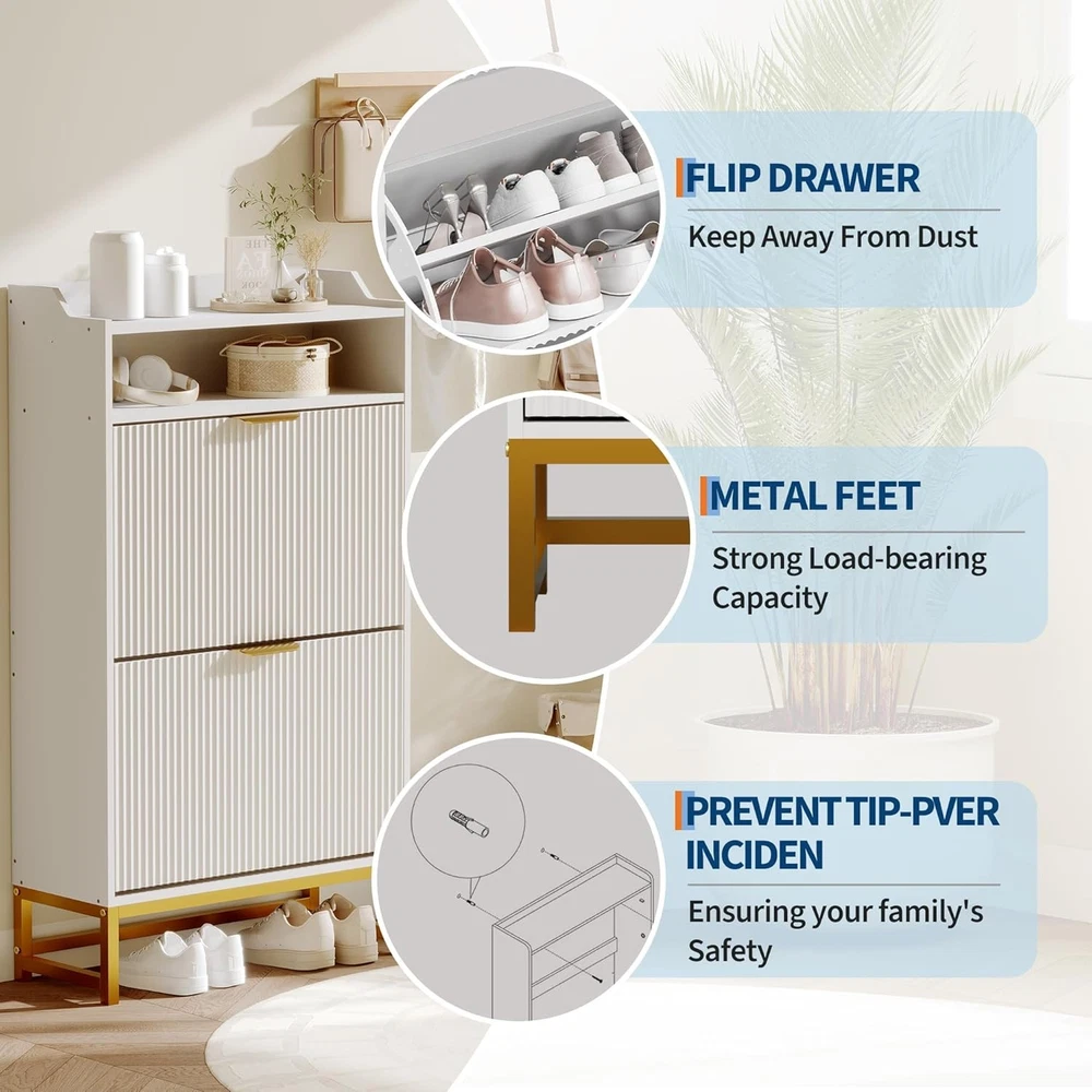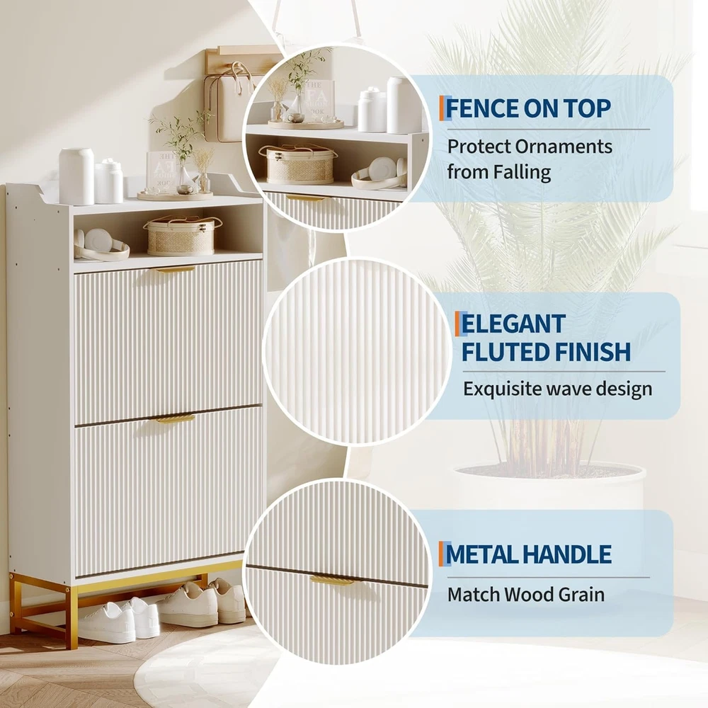 Elegant Space-Saving Design: The fluted shoe cabinet combines sleek lines and stylish metal handles to elevate any entryway or living space. Its slim profile fits perfectly in tight spaces while providing hidden shoe storage that keeps clutter out of sight Smart Flip-Drawer Organization: Two flip drawers with adjustable shelves create customizable storage for shoes of all sizes. The clever flip-up design offers quick, easy access while protecting your footwear from dust and pet damage??perfect for daily use in busy households Lumiskin Modern Fluted Shoe Storage Cabinet With 2 Flip Drawers & Open Shelf, Freestanding Narrow Shoe Rack Organizer For Hallway, Entryway, Living Room, White Elegant Space-Saving Design: The fluted shoe cabinet combines sleek lines and stylish metal handles to elevate any entryway or living space. Its slim profile fits perfectly in tight spaces while providing hidden shoe storage that keeps clutter out of sight Smart Flip-Drawer Organization: Two flip drawers with adjustable shelves create customizable storage for shoes of all sizes. The clever flip-up design offers quick, easy access while protecting your footwear from dust and pet damage??perfect for daily use in busy households Multi-Functional Storage Solutions: Beyond the flip drawers, enjoy extra space with a spacious top surface for keys or decor, an open shelf for easy-access items, and a bottom area ideal for slippers or everyday shoes. Elevated legs create added storage and make floor cleaning effortless Sturdy & Durable Construction: Built with premium engineered wood and reinforced metal legs, the shoe storage cabinet withstands daily wear while resisting warping. The durable design ensures long-lasting beauty, making it a reliable entryway shoe organizer for years to come Effortless Assembly & Use: The shoe rack cabinet assembles in minutes??no special tools required. Instantly enjoy a clutter-free entryway or bedroom as the ready-to-use shoe storage solution adds a touch of sophistication to any hallway, apartment, or living space Item Specifics Brand Unbranded Type Shoe Cabinets Item Weight 41.7 pounds Color White Product Dimensions 23.62"D x 9.45"W x 44.09"H Special Feature Anti-Tipping Mounting Type Floor Mount Color White Product Dimensions 23.62"D x 9.45"W x 44.09"H Special Feature Anti-Tipping Mounting Type Floor Mount Room Type Entryway Door Style Recessed Panel Included Components Installation Kit Size 2 Base Type Legs Assembly Required Yes Item Weight 41.7 pounds Country of Origin China Item model number -q7vJbeuWvopyJlXjYPhAQS2qk7o Item Height Does not apply:Does not apply Payment We accept PayPal payment,PayPal Credit,Credit card or debit card and so on. Payment should be completed within 4 (Four) days of auction closing. Or unpaid dispute will be filed for closing auction. We will leave a positive feedback immediately after payment is received. We appreciate a positive feedback as much as you do. If for some reason there is any issue with the purchase, please contact us prior to leaving feedback, we will be glad to work together and provide a satisfying solution. Shipping 1.We usually ship within 3-5 business days of receiving cleared payment., and we provide Free Shipping for most items. 2.Fast shipping is very important for us. We use multiple fulfilment warehouse around the United States. We only ship to the lower 48 States and do not ship to PO Boxes. 3.Please make sure the correct Ship-To address is entered before checking out. Once the payment is completed, you may not be able to change the shipping address. We shall not be held responsible for any wrong or undeliverable addresses. Returns 1.We provide 14 days return upon the buyer received the item. It must be in good condition and you will undertake the returned shipping cost. 2.We will offer replacement or refund for all DEFECTIVE items (not including damage resulting from accidents / abuse / misuse / improper care), but a photo is needed for our reference beforehand and should be reported to us within 7 days from purchase date. 3.All items are brand new and have been passed the quality check. All are packed in a good condition before item dispatch. Contact Us 1.Dear customers, we appreciate your business, our aim is to provide Top Level Customer Service,if you are satisfied with our service, please leave us a 5 star positive feedback . 2.If you have any question or concern about your eBay order, please feel free to let us know. We will try our best to reply all questions within 24 hours. However, no answer will be replied during weekends or holidays. Please allow up to 48 hours delay in receiving our response after long weekends or holidays. 3.Please via eBay Message for a solution for resolutions before leaving negative feedback, we strive to providing the greatest service and bringing the highest satisfaction to all of our customers. Lumiskin DESCRIPTION PAYMENT SHIPPING RETURN POLICY CONTACT US Shop Category Store Home Other Hot Item For Fanttik Slim V10 Mix/Slim V9 Mix Cordless Car Vacuum Hard Case, Fanttik Car USD 32.01 Socool Portable Waist Fan 5000Mah Rechargeable Mini Clip On Personal Fans With 1 USD 41.81 48" X 250Ft. 1000 Sq. Ft. Synthetic Roofing Underlayment USD 90.72 Max Cool Narrow Profile Evaporative Cooler Rigid Media For Mastercool USD 73.47 Complete Enclosure Pole For Skywalker Trampoline USD 47.08 Picture New List Item 47.5 In. X 11.5 In. Prairie Decorative Glass Picture Vinyl Window - White USD 368.77 Packout 20 In. 2-Wheel Utility Cart With Large Tool Box (2-Piece) USD 368.97 47.5 In. X 11.5 In Mission Decorative Glass Picture Vinyl Window - White USD 347.19 35.25 In. X 47.25 In. Single Hung Vinyl Window Insulated With Grids, White USD 322.07 Shoe Storage Cabinet With 2 Flip Drawers, Freestanding Slim Shoe Organizer For E USD 195.99 Help & Info Payment Policy Shipping Policy Return Policy FAQ About Us Modern Fluted Shoe Storage Cabinet With 2 Flip Drawers & Open Shelf, Freestanding Narrow Shoe Rack Organizer