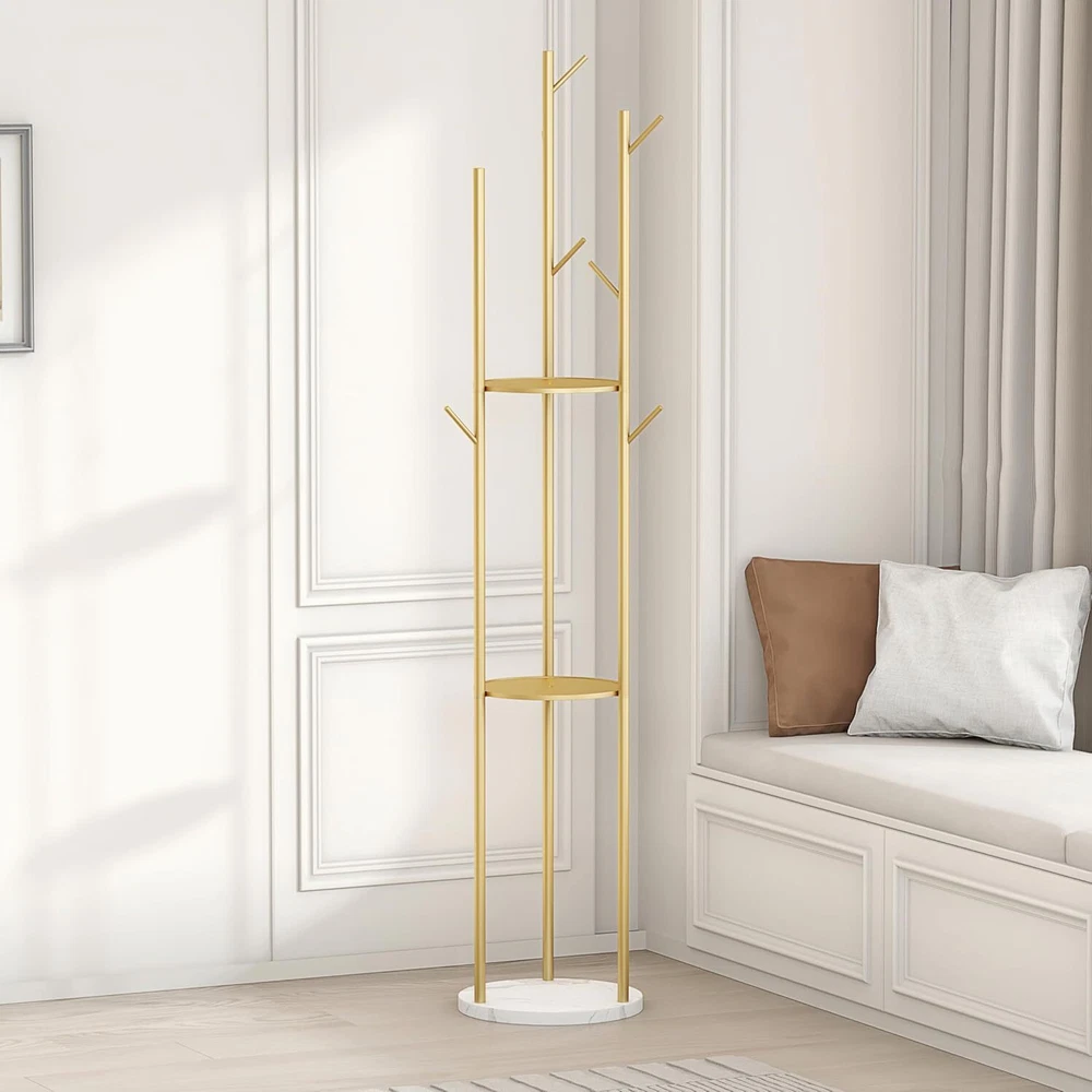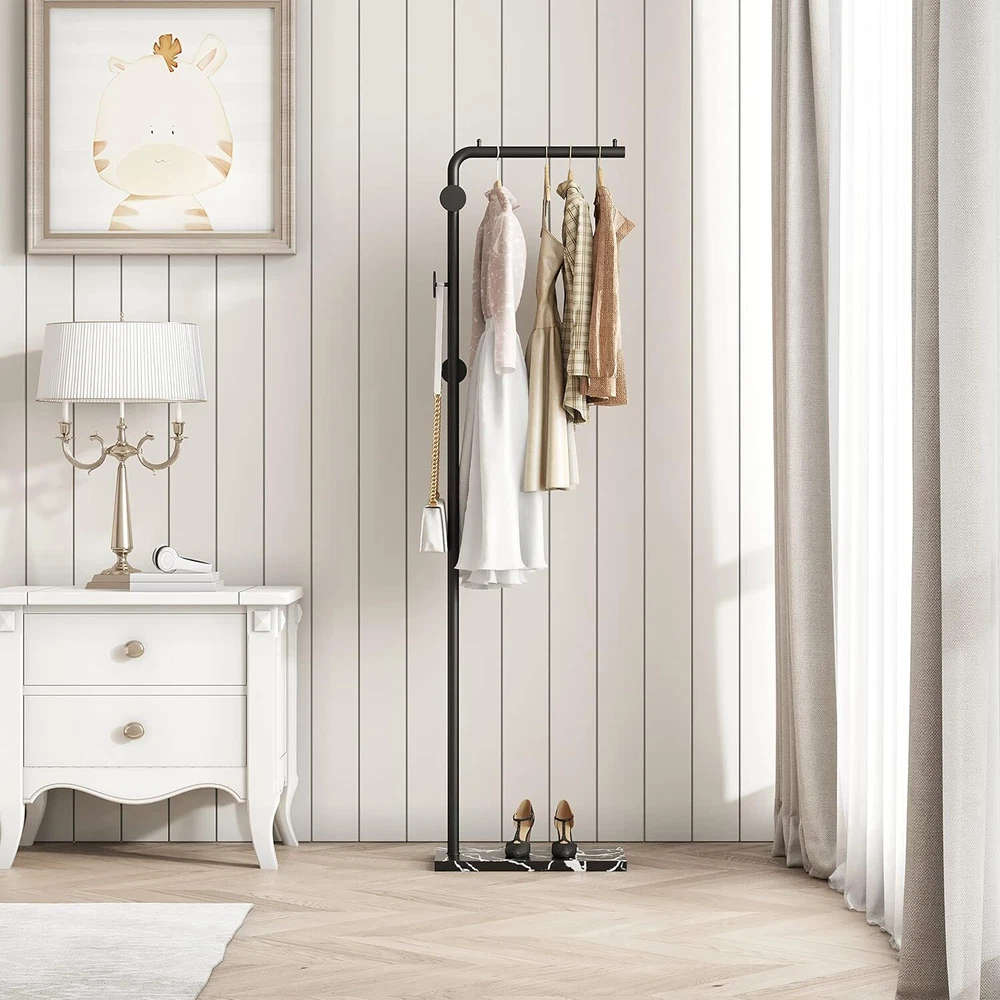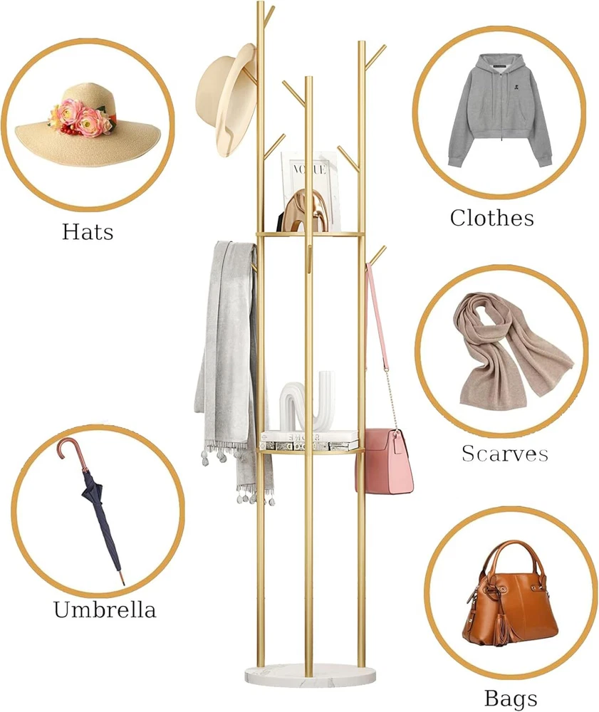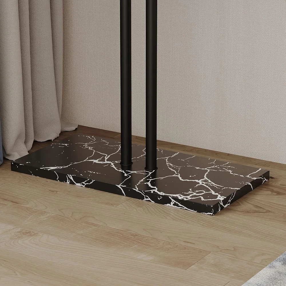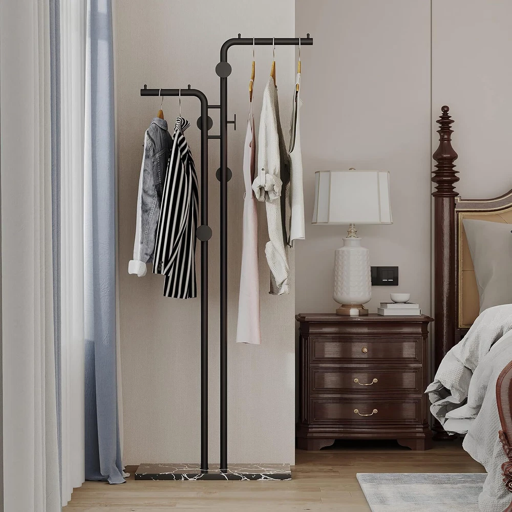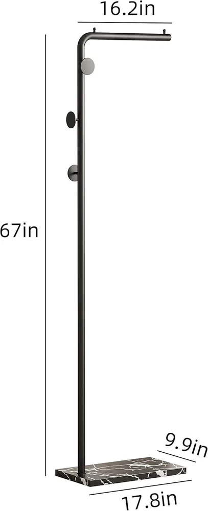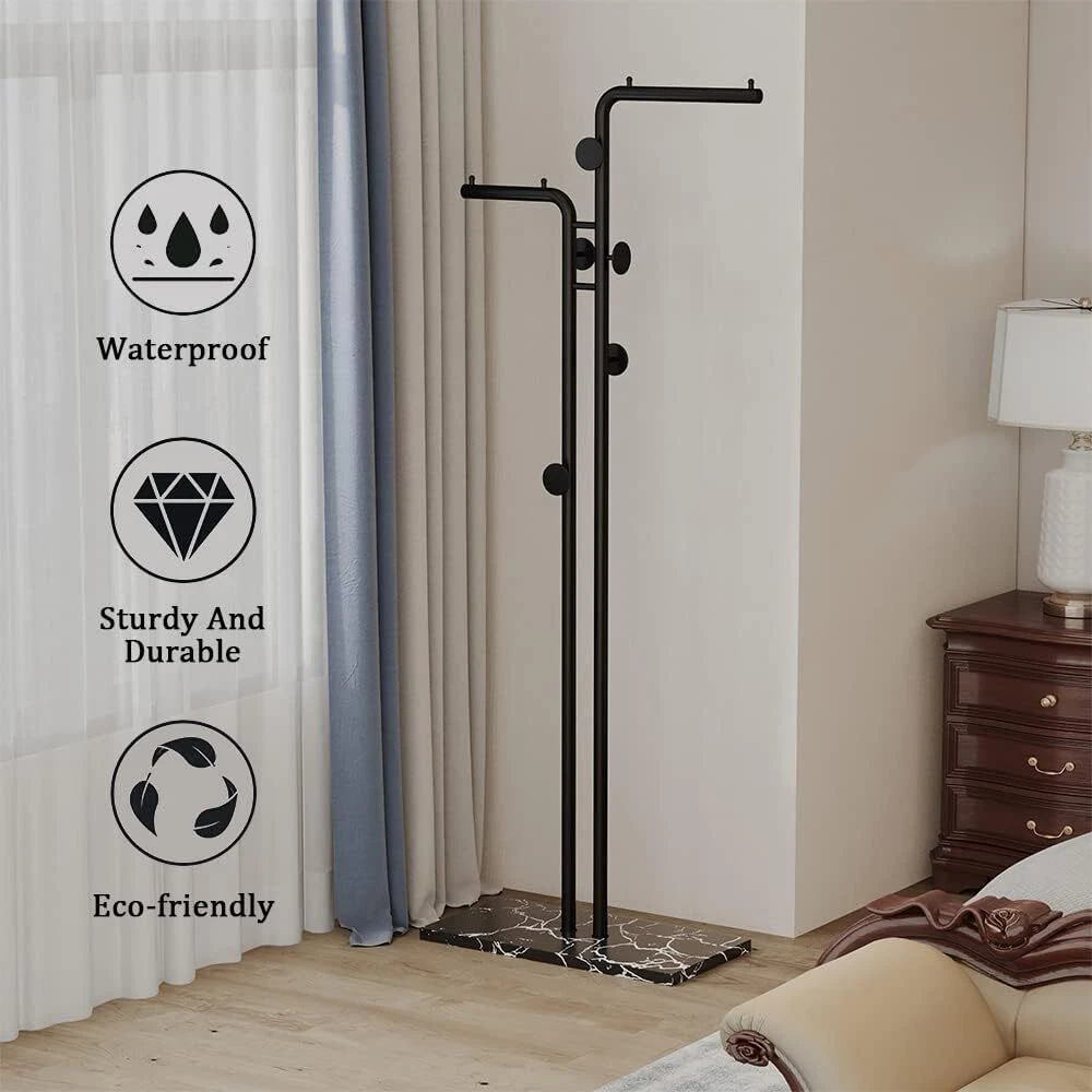 Color Black 2 Pole Material Iron Recommended Uses For Product Coats Hats Shoes Tie & Belt Umbrella Product Dimensions 11.9"D x 23.7"W x 67"H About this item SPACE-SAVING: This coat rack is compact and self-contained with a unique double-bar design that takes up very little space while maximizing storage capacity. It is oil-resistant, scratch-resistant, and easy to clean MODERN & MINIMALIST STYLE: Double-pole freestanding metal coat rack with a satin steel finish, smooth touches, organize your living space with stylish solutions, the anti-drop bead design, are both beautiful and in preventing the hanger from falling off HIGH QUALITY MANUFACTURING: The durable wardrobe is made from high quality iron. The black electroplating and polishing process creates an elegant appearance and a delicate touch. The anti-rust coating allows it to be used in the bathroom DESIGN CONCEPT: Stable like a big tree with many branches. We are a manufacturer dedicated to furniture, all products are from our own hands, every screw contains our love and details EASY TO ASSEMBLE: So easy, assemble in minutes, can be installed on its own in just 10 minutes Tips: The included screws are already installed in the bar of the coat rack