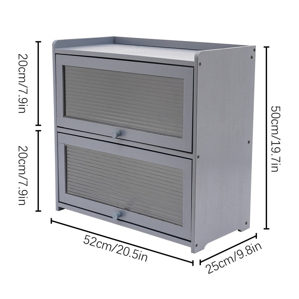 Modern Two-tier Storage Cabinet, Countertop Storage Cabinet, Gray Cabinet New **Description of ryxfebruary** Description Are you still struggling with insufficient storage space? The helper is here. With a size of 20.5 * 9.8 * 19.7 inches, this storage cabinet featuring a bearing capacity of 99.21 lbs provides enough storage space for you. The beautiful appearance makes it the finishing touch of a dull room. Key Features Durable and Sturdy: Premium natural bamboo cabinet body, composite backboard, and acrylic cabinet door, and an exquisite spray painting process make the product environmentally friendly, tough, and solid, not easy to deform, ensuring a long service life. Large Storage Space: Two-tier design(20.5*9.8*7.9inch) classification design and reasonable use of vertical storage space facilitate effective storage of desktop items, making the space more tidy. The open top floor(20.5*9.8inch) is not limited by floor height and can also be used to place items, especially some higher ones. Strong Load-bearing Capacity: Solid structure and high-quality material endow each tier with a strong load-bearing capacity of approximately 33.07 lbs, allowing the product to accommodate many heavier items, such as various seasonings, without worrying about collapse. Fully Sealed: The composite back panel and two cabinet doors keep the product in a fully sealed state without opening, with a good dustproof effect and keeping the stored items clean. Easy to Access : The hovering cabinet door and powerful door stopper make the product very easy to open and close, and the large opening design and the clear door allow you to easily access items. Convenient Movement: The hollow handle at the bottom of the product provides a stable grip point during movement, and its compact size(20.5*9.8*19.7in) is also very convenient for handling. Stable Structure: The four stable cabinet legs and screw-reinforced cabinet body provide strong stability for the product, making it less prone to shaking. Easy to Install: Pre-drilled accessory holes and simple product structure reduce installation difficulty for you. You only need to follow the installation steps step by step to complete the installation. Details Details Elevated Fence: The raised fence at the top makes items less likely to fall and provides a higher level of security. Exquisite Handles : Exquisite handles enhance the aesthetics of the product and make it easier to open cabinet doors. Smooth Edges: The rounded edges are smooth and flat, making it safer to use. Application This product can be stored in many areas such as kitchens, bedrooms, and studies that require storage space for condiments, plates, bowls, aromatherapy, cosmetics, jewelry, books, and other items. Specification Material: Bamboo, Acrylic, Composite Board Color: Gray Surface Treatment: Painting Style: Modern Shape: Rectangle Mount Type: Deck Mounted Assembly Required: Yes Number of Items: 1 Number of Tiers: 2 Bearing Capacity of Each Tier: About 15kg/33.07lbs Each Compartment Size: 52*25*20cm/20.5*9.8*7.9in Product Size: 52*25*50cm/20.5*9.8*19.7in Package Included 1*Storage Cabinet 2* Door Stoppers 1* Allen Key 1* Glove All Accessories of Installation Notes Please note that bamboo and wood products come from natural materials and inevitably exhibit different textures, knots, halos, cracks, and spots, which will not affect their aesthetics and use. Please do not use corrosive cleaning agents or hard objects for cleaning. It is recommended to use a soft cloth for wiping. Please do not expose the product to sunlight for a long time to avoid cracking. Please strictly follow the installation steps for installation, and other items are not included. Please allow the slight color difference caused by the shooting light and the 1-3 cm error due to manual measurement, and make sure you do not mind before ordering. Payment Delivery details Terms of sales About us Contact us Payment We accept ebay payment 。 Fees such as import duties, taxes are not included in the item price or shipping costs. These charges are the buyer's responsibility. Delivery details Shipping: 2-9 working days to: USA Terms of sales We maintain high standards of excellence and strive for hundred percent customer satisfaction. Feedback is very important to us. We hope that you contact us immediately before you give neutral or negative feedback, so that we can address your concerns. It is impossible to address issues if we do not know about them! About us Your satis faction is our ultimate goal. We work hard to earn your trust and future business. Our certified technicians have tested each item before shipping. The unit comes with 1 year limited warranty on all manufacturing defects. a) If you receive a defective item, you may return it or ask for a discount. Please contact us within 14 days after you receive the package. b) What you returned must be intact and in its original packaging as re? u. Customer is responsible for shipping costs of the returned item. c) We will cover the cost of shipping back t with the shipping rate indicated in the registration page. We will send you a new unit or refund the full payment you paid. Thank you. Contact us Business Hour Business Hour: Monday To Friday: 8:30 AM to 5:00 PM (Beijing China time) Due to time zones, our reply to your questions may not be immediately. But within above working time, we will reply your email within 24 hours. If it's non-workdays, please kindly be patient and wait till Monday. Please contact us with ebay message. Please feel free to contact us if you have any questions. Monday To Friday: 8:30 AM to 5:00 PM (Beijing China time) Due to time zones, our reply to your questions may not be immediately. But within above working time, we will reply your email within 24 hours. If it's non-workdays, please kindly be patient and wait till Monday. Please contact us with ebay message. Please feel free to contact us if you have any questions. Brand GDRASUYA10 Herstellergarantie 3 