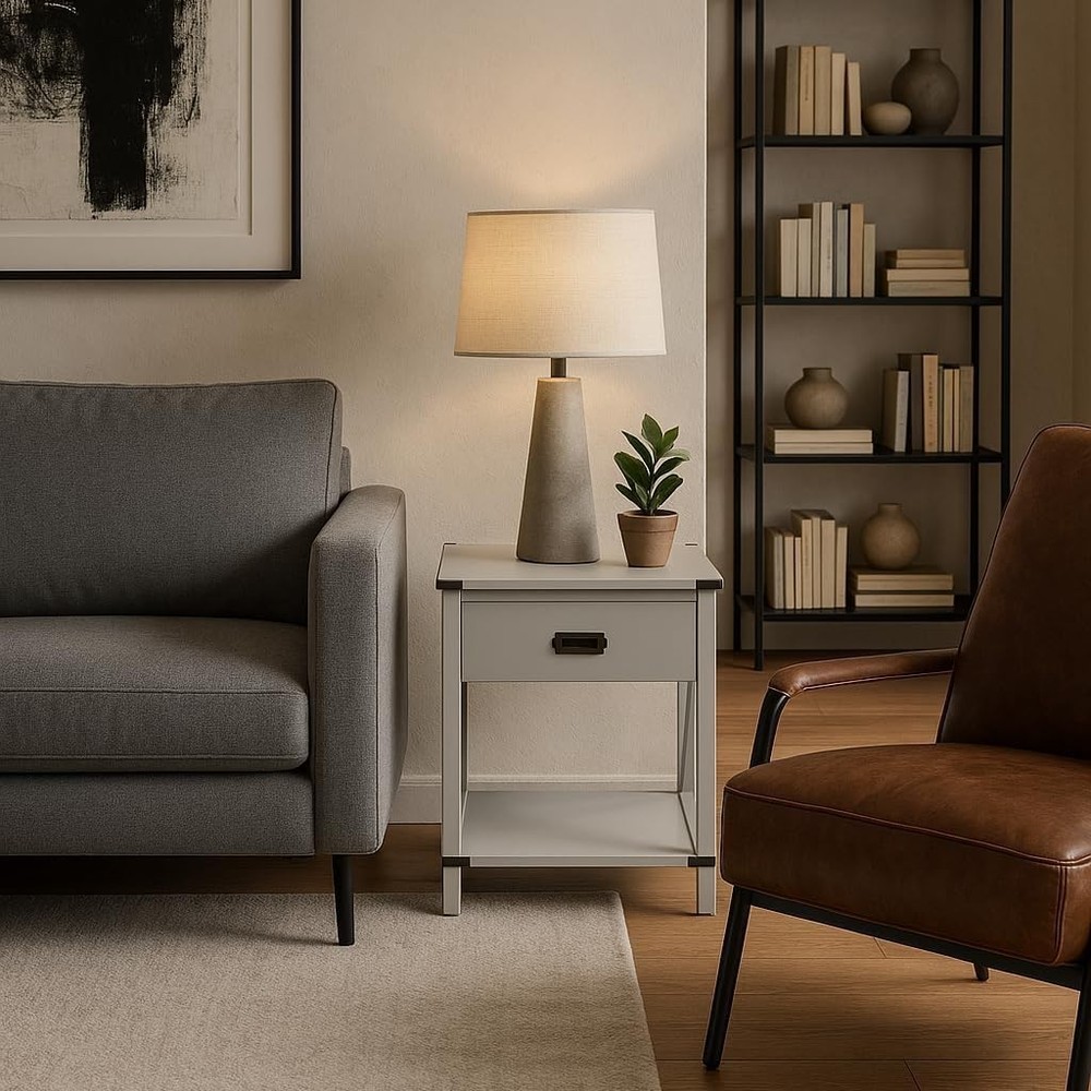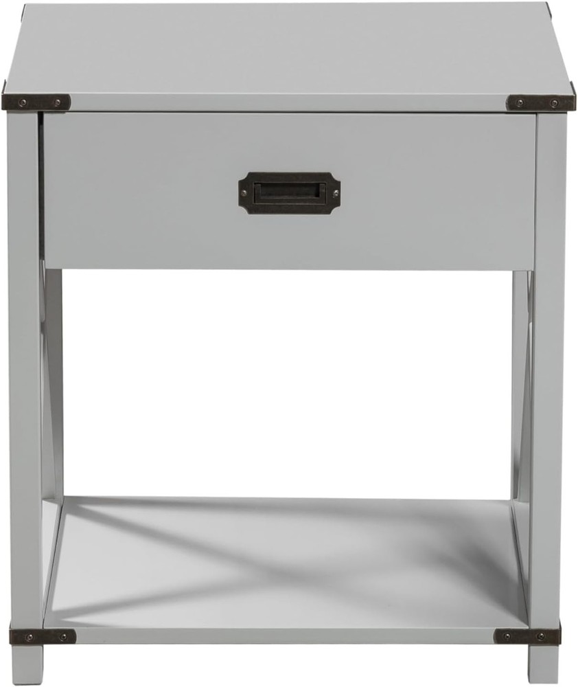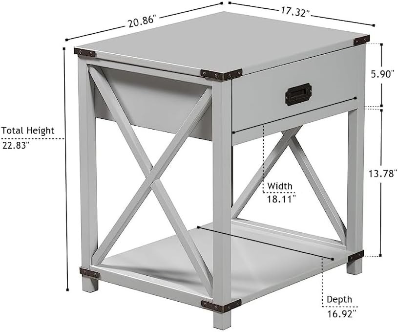 From The Tree offers a stylish and versatile addition to your living and family room. Made from engineered wood for durability, this contemporary end table pushes the boundaries of modern farmhouse decor with its gray finish. Perfect for any living room, this table offers plenty of storage space with two layers: a drawer perfect for accessories and bedside items and an additional floor shelf for storing books, TRIVs or decorative items. Keep all your favorite reads in one place! This well-crafted nightstand shelf will complement any space while remaining lightweight enough to easily move from room to room or even outside if needed. Using a contemporary design language with traditional wood construction techniques combined with modern materials, our end table incorporates unique details that enhance and add more value than a typical end table. Whether you're looking for a space-saving solution for tight spaces or an accent piece to spruce up a secondary living area, this side table has everything you need. The open feel of this tiered end table allows it to blend seamlessly into any home's decor. An interesting geometric design gives it personality without detracting from other pieces in the area – the perfect combination of function and form. With durable construction designed for years of daily use. Give your home the treatment it deserves and purchase our From The Tree contemporary gray end table today - you won't be disappointed!