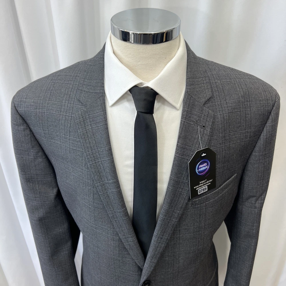 TU MAN Modern Grey Slim Fit 2 Piece Suit C48R W44 L31 Material Polyester/viscose Jacket Features Chest: 48R Inside pockets: 3 Front pockets: 2 Breast pocket: 1 Buttons to each cuff: 4 Buttons to front: 2 Back vents: 1 Shoulder to cuff: 26" Armpit to cuff: 18" Armpit to armpit when laid flat: 23.5" Shoulder to shoulder: 19.5" Collar to hem: 30.5" Trouser Features Waist: 44" Zip Front pockets Back pocket: 2 with buttons 2 hook fastenings Inside leg: 31" (can drop 1/2") Width of hem at bottom of trousers: 8" AKD0008-789 Please note: Colours may slightly vary due to lighting conditions Each item undergoes meticulous hand-measured scrutiny; sizes may not align precisely with the label Review measurements and review the item description/photos before placing your bid Unfortunately, we cannot provide additional photos once items are listed The shirt and tie are not included unless explicitly stated in the listing Questions and concerns: Reach out to us through the ebay messaging system - we aim to respond within a maximum of 12 hours Ironing guidelines: Garments may arrive with minor creases Refer to the care label and use continuous steam when ironing We recommend dry cleaning for best results and peace of mind Your feedback matters: Please leave us a 5-star rating if satisfied For issues or concerns, please contact us before leaving feedback Returns: We offer a generous 30-day return period, via the eBay returns centre Please return items in their original packaging with all tags attached Buyers cover return shipping costs unless items are faulty or inaccurately listed