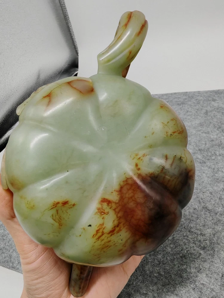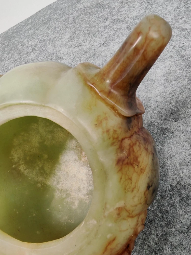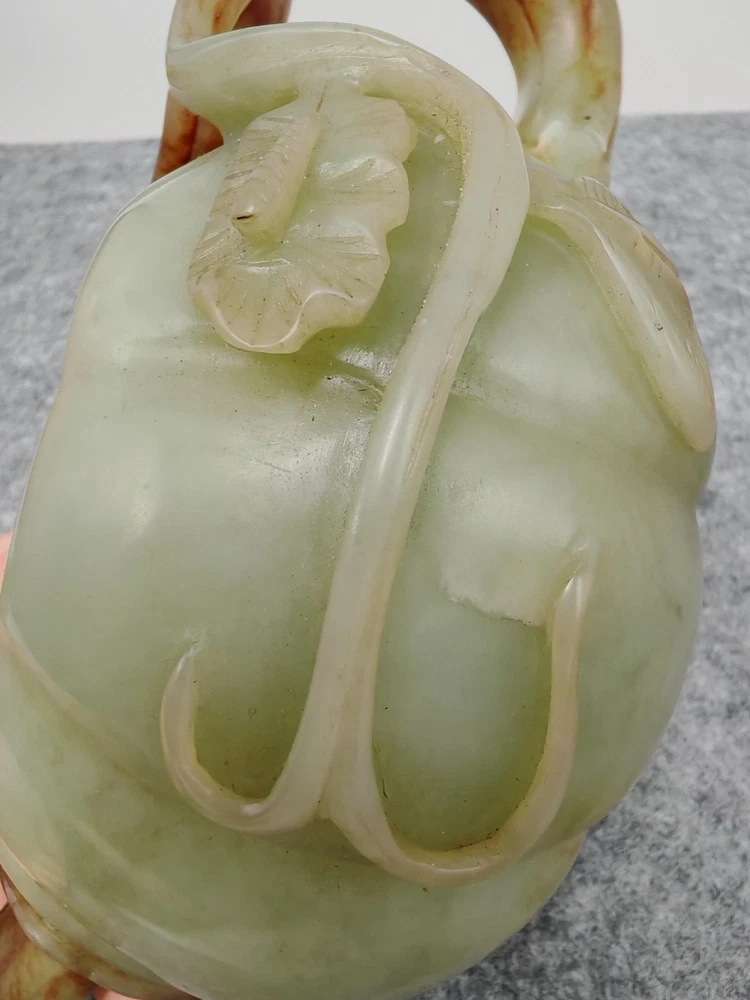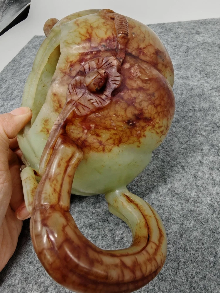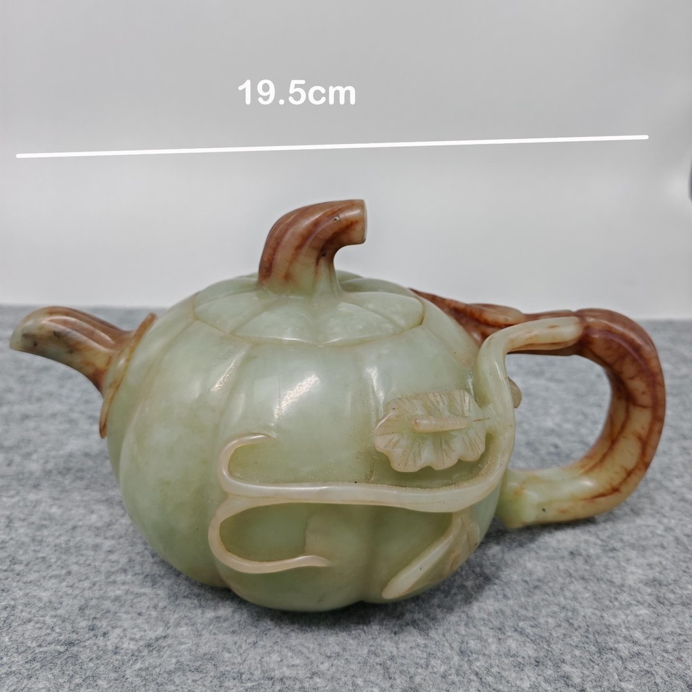 Modern Hetian Hand Carved Carving Jade Teapot Unique Chinese Antique Sculpture