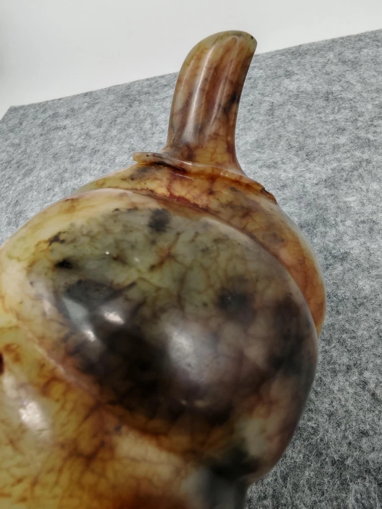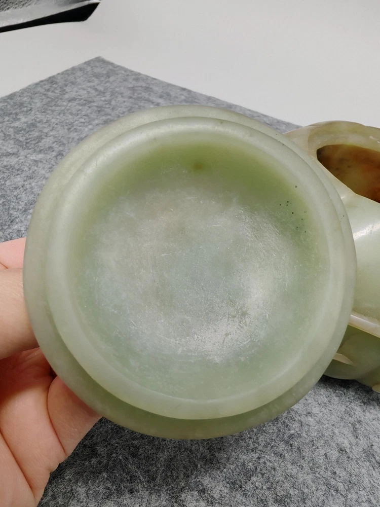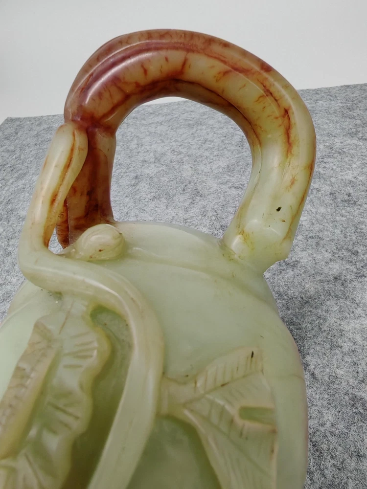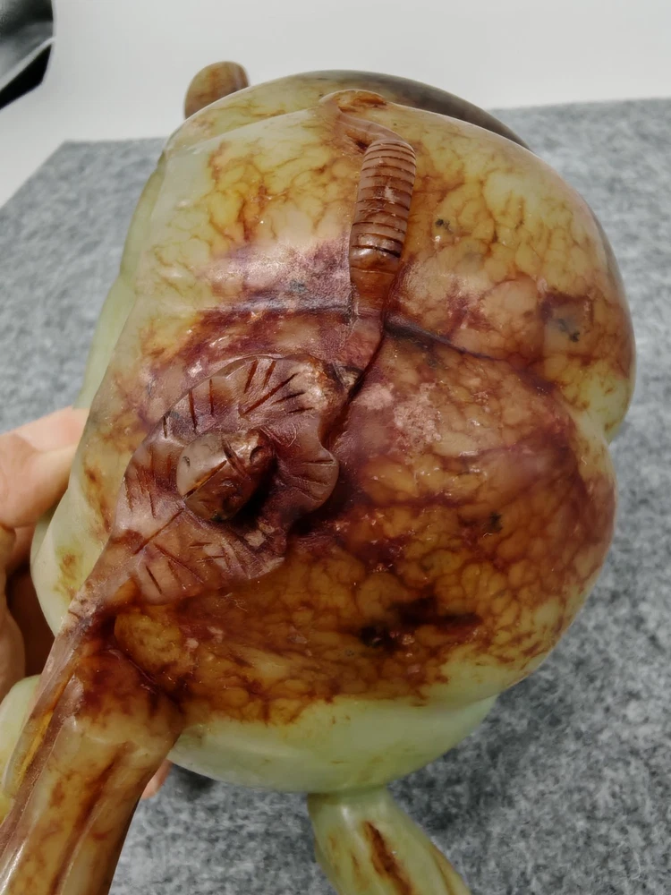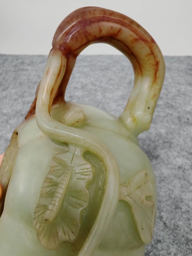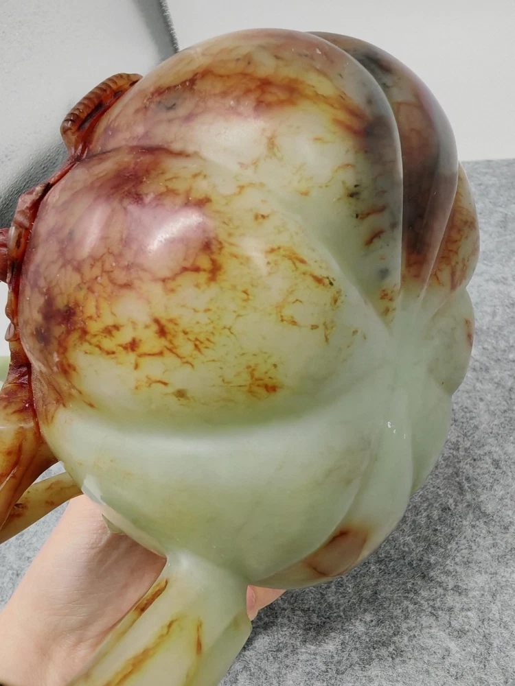 Modern Hetian Hand Carved Carving Jade Teapot Unique Chinese Antique Sculpture