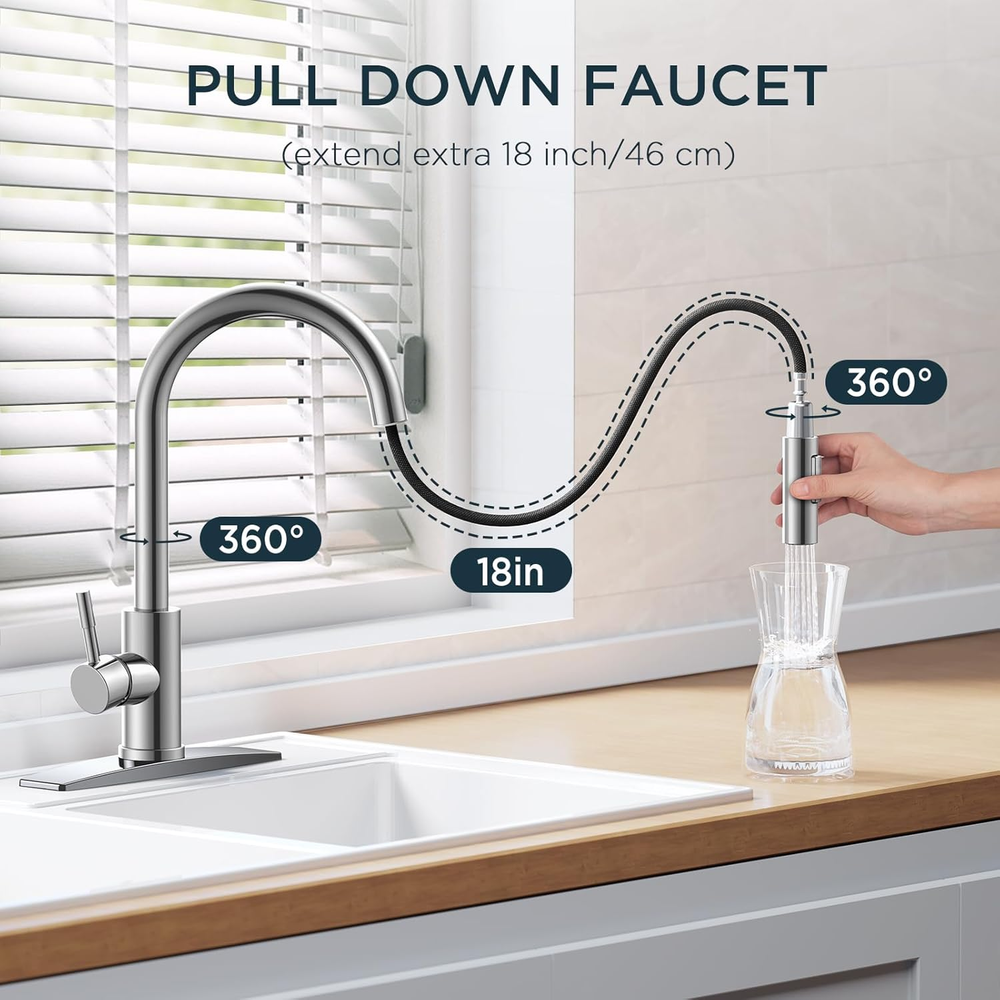 Modern High Arc Chrome Kitchen Faucet with Pull-Down Sprayer & Soap Dispenser