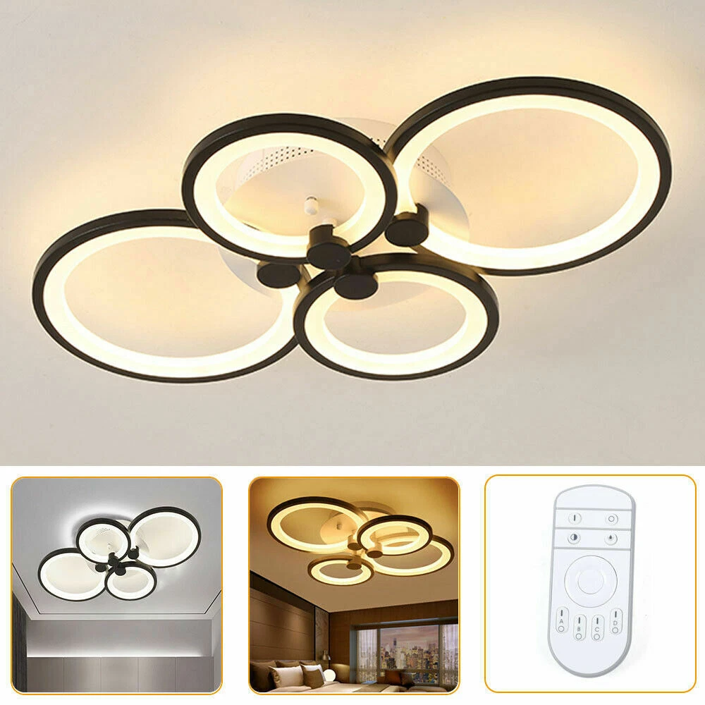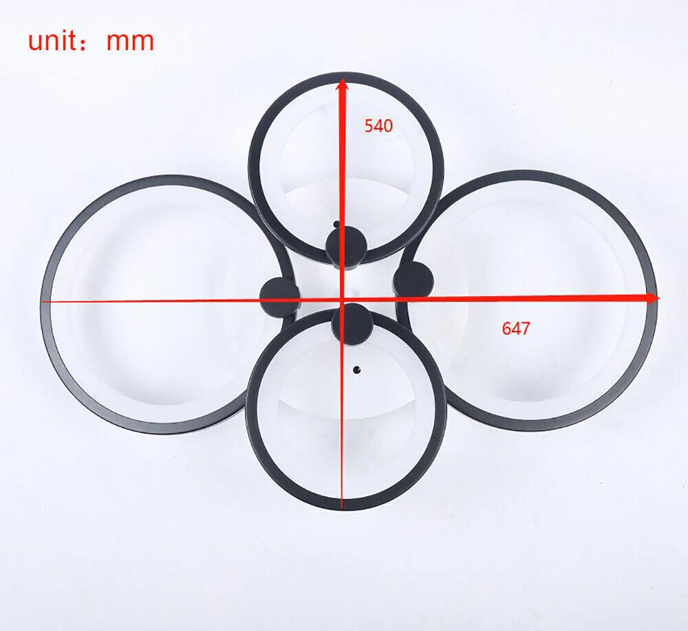 Features: Brand New and high quality. Perfect for balcony, bar, cafe, clothing store, aisle, etc. Nice pattern to create soft light, bring you a good brightness. Made of acrylic material, steady, do not fade and fine workmanship. Specification: Material: Iron base and Acrylic lampshade Power: 45w Pattern: 4/6/8 Heads Voltage: AC 110v, 50Hz Body Color: black Light Source: 2835 LED SMD Light mode: stepless dimming Light color: White light, Warm light, Neutral light Average service life: 30000(h) Remote Controller: 2x AAA Batteries (not included) Suitable area: about 8-15㎡/15~25㎡ /25~30㎡ Luminous flux: 6750lm 4 Heads Size: 647mm*450mm*105mm Package Included: 1 Pcs Ceiling Light 1 Pcs Remote controller (b Modern LED Acrylic 4-Head Ceiling Light Flush Mount Lamp Chandelier Living Room! Modern Led Acrylic 4-Head Ceiling Light Flush Mount Lamp Chandelier Living Room! Specification Material: Iron Base and Acrylic Lampshade Voltage: Ac 110v, 50hz Power: 60w Luminous Flux: 6750lm Pattern: 4 Heads Body Color: Black Light Source: 2835 Led Smd Light Mode: Stepless Dimming Light Color: White Light, Warm Light, Neutral Light Remote Controller: 2x Aaa Batteries Suitable Area: About 8-15m²/86.11ft²-161.46ft² Product Size: 64.7*45*10.5cm/25.5*17.73*4.14in Package Included 1 * Ceiling Light 1 * Remote Controller 2 * Aaa Batteries All Accessories for Assembly Description The Body of the Ceiling Lamp Is Creatively Designed with Four Composed Circulars with Fine Workmanship, Bringing More Brilliance to Your Life and Highlighting Your Taste. This Ceiling La mp Is Infinitely Dimmable with Three Adjustable Colors Including White Light, Warm Light, and Neutral Light, You Can Adjust It According to Your Own Needs. This Ceiling Lamp Is Perfect for Living Rooms, Balconies, Bars, Cafes, Clothing Stores, Aisles, Etc. It Is Suitable for an Area of About 86.11ft²-161.46ft². Key Features Creative Design: the Body of the Ceiling Lamp Is Creatively Designed with Four Composed Circulars with Fine Workmanship, Bringing More Brilliance to Your Life and Highlighting Your Taste. High Durability: the Lampshade of the Ceiling Lamp Is Made of Acryli c That Has Good Transparency, Chemical Stability, and Weather Resistance, so It Is More Durable and Can Be Used for a Long Time. Remote Control : This Ceiling Light Is Equipped with Remote Control. so You Can Easily Control the Light While Lying in Bed and Don't Need to Get up and Press the Switch. Good Light Transmission: This Ceiling Lamp Made of Acrylic Has Good Light Transmission, Which Can Create a Brighter and Warm Atmosphere for You. Stepless Dimming: This Ceiling La mp Is Infinitely Dimmable with Three Adjustable Colors Including White Light, Warm Light, and Neutral Light, You Can Adjust It According to Your Own Needs. Energy Efficient: This Ceiling Lamp Adopts the Led Light Source, Which Is Highly Efficient, Energy-saving, and Has a Long Service Life. Easy Installation: All the Four Light Heads Are Connected, You Do Not Need to Modify the Line When You Install It, Saving Your Time and Energy. Guaranteed After-sales Service: We Aim to Provide Quality Products and Services, If You Have Any Problems, Please Feel Free to Contact Us. We Will Reply and Solve the Problem for You As Soon As Possible. Details Acrylic Lampshade: the Lampshade of the Ceiling Lamp Is Made of Acrylic That Has Good Transparency, so It Has Better Light Transmission, Which Can Create a Brighter and Warm Atmosphere for You. Reinforced Base: the Base of the Ceiling Lamp Is Made of Reinforced Iron, Making It More Stable. Application This Ceiling Lamp Is Perfect for Living Rooms, Balconies, Bars, Cafes, Clothing Stores, Aisles, Etc. It Is Suitable for an Area of About 86.11ft²-161.46ft². Notes 1. All the Four Light Heads Are Connected, Do Not Modify the Line When You Install It. 2. the Remote Control Needs to Be Used in the Code, Press and Hold the Vertical Line Above Until the Light Flashes, That Is, the Code Is Successful, and You Can Remotely Control It. 3.Please Allow the Slight Color Difference Caused by the Shooting Light and 1-3cm Error Due to Manual Measurement, and Make Sure You Do Not Mind Before Ordering. Payment Delivery details Terms of sales About us Contact us Payment We accept ebay payment 。 Fees such as import duties, taxes are not included in the item price or shipping costs. These charges are the buyer's responsibility. Delivery details Shipping: 2-9 working days to: USA Terms of sales We maintain high standards of excellence and strive for hundred percent customer satisfaction. Feedback is very important to us. We hope that you contact us immediately before you give neutral or negative feedback, so that we can address your concerns. It is impossible to address issues if we do not know about them! About us Your satis faction is our ultimate goal. We work hard to earn your trust and future business. Our certified technicians have tested each item before shipping. The unit comes with 1 year limited warranty on all manufacturing defects. a) If you receive a defective item, you may return it or ask for a discount. Please contact us within 14 days after you receive the package. b) What you returned must be intact and in its original packaging as re? u. Customer is responsible for shipping costs of the returned item. c) We will cover the cost of shipping back t with the shipping rate indicated in the registration page. We will send you a new unit or refund the full payment you paid. Thank you. Contact us Business Hour Business Hour: Monday To Friday: 8:30 AM to 5:00 PM (Beijing China time) Due to time zones, our reply to your questions may not be immediately. But within above working time, we will reply your email within 24 hours. If it's non-workdays, please kindly be patient and wait till Monday. Please contact us with ebay message. Please feel free to contact us if you have any questions. Monday To Friday: 8:30 AM to 5:00 PM (Beijing China time) Due to time zones, our reply to your 