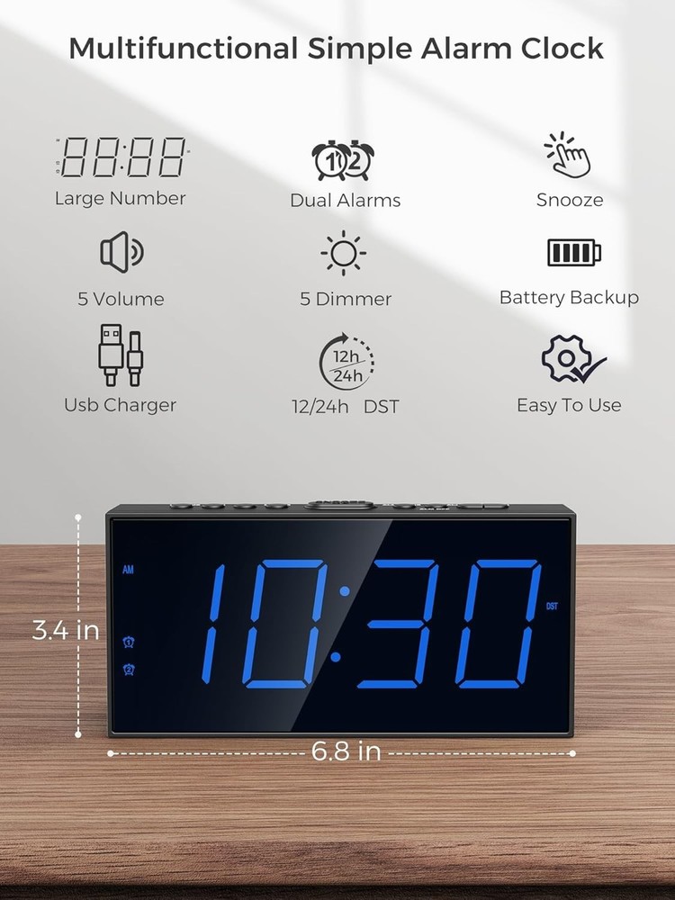 Stylish Alarm Clock with Battery Backup & Adjustable Brightness for Bedroom ‹ › ‹ › ‹ › ‹ › ‹ › ‹ › ‹ › ‹ › ‹ › Stylish Alarm Clock with Battery Backup & Adjustable Brightness Elevate your bedroom experience with this elegant and functional dual alarm clock, meticulously designed to cater to the diverse needs of your family. Features: 𝗘𝗔𝗦𝗬 𝗧𝗢 𝗨𝗦𝗘: Set two different alarms for your unique schedules. Perfect for families with varied routines. 𝗜𝗡𝗖𝗟𝗨𝗗𝗘𝗦: 4-level adjustable alarm volume and 5-level digits brightness dimmer for customized settings. 𝗕𝗨𝗜𝗟𝗧-𝗜𝗡 𝗨𝗦𝗕 𝗖𝗛𝗔𝗥𝗚𝗜𝗡𝗚 𝗣𝗢𝗥𝗧: Seamlessly charge your smartphone or tablet without extra plugs. 𝗟𝗔𝗥𝗚𝗘 𝟳" 𝗟𝗘𝗗 𝗗𝗜𝗦𝗣𝗟𝗔𝗬: Perfect for easy time checking from across the room; visible and clear for all. 𝗕𝗔𝗧𝗧𝗘𝗥𝗬 𝗕𝗔𝗖𝗞𝗨𝗣: Ensures your alarms and time settings stay intact during power failure. 𝗦𝗡𝗢𝗢𝗭𝗘 𝗙𝗨𝗡𝗖𝗧𝗜𝗢𝗡: Enjoy an extra 9 minutes of sleep with a simple tap on the top button. Benefits: Hassle-free usability with clearly labeled buttons for easy set-up. Stylish design complements any bedroom decor, suitable for teens, kids, and adults. The ultimate gift for holidays, birthdays, or any special occasion, perfect for friends and family. Daylight Saving Time compatibility and multiple time formats for added convenience. Why Choose This Stylish Alarm Clock? This beautifully designed alarm clock is not just a timepiece; it's an essential part of your daily routine that enhances your lifestyle. With exceptional features such as battery backup, USB charging, adjustable alarm volume, and a delightful snooze function, it guarantees you’ll wake up comfortably and in style. Don't settle for ordinary—transform your mornings into an elegant experience. Order this Stylish Alarm Clock today and embrace both functionality and sophistication! Great Gift Idea: Backed by a 365-day product , this clock is an ideal gift for any occasion. Give the gift of style and practicality to your loved ones! Shipping Free & Fast Shipping - We offer free shipping to most of the USA with a normal delivery time of 3-7 days. However, due to the current situation, additional delivery time (up to 3 weeks) may be required for some items. Alternative Carriers - We may use alternative carriers (e.g. USPS, FedEx, UPS, etc.) to ensure your package arrives safely and on time. Due to the use of multiple carriers, we are unable to provide a tracking number automatically. Handling Time - Orders are processed and shipped within 1-2 business days of receiving cleared payment. Shipping Restrictions - Shipping to Alaska, Hawaii, Puerto Rico, Guam, and other US territories may incur shipping charges or delivery restrictions. Please contact us before ordering, or your order can be refunded/cancelled. State Restrictions - There may be restrictions based on your state of purchase. For example, certain items may not be shipped to California due to state regulations. Contact for Tracking Updates - If you require tracking updates or have any concerns about the delivery of your order, please feel free to contact us, and we will be happy to assist you. Return 30-Day Hassle-Free Returns - We want you to be completely satisfied with your purchase. If you are not, you can return the item within 30 days of receiving it for a full refund or exchange. Easy Return Process - To start a return, simply contact us and we will provide you with a prepaid return shipping label and detailed instructions. Restocking Fee - There are no restocking fees for returns. However, the buyer is responsible for return shipping costs if the return is not due to a seller's error. Refund Processing Time - Refunds will be processed within 5 business days of receiving the returned item in its condition. Payment We accept all major credit cards, PayPal, and Apple Pay for your convenience. Your payment information is secure and encrypted to ensure a safe and seamless transaction. Please complete your payment within 3 days of purchase to avoid any delays in shipping. Feedback Your feedback is extremely important to us. We strive to provide the best products and customer service possible. If you are satisfied with your purchase, please take a moment to leave us a positive review. If you have any concerns or issues with your order, please contact us before leaving negative feedback. We are committed to resolving any problems and ensuring your satisfaction. Contact Us If you have any questions or concerns, please feel free to out to our customer support team. You can contact us through the eBay messaging system. We are available Monday to Friday, 9:00 am to 5:00 pm EST, and we will do our best to respond to your inquiry within 24 hours. Buy it now and enjoy a pleasant shopping experience! Item Length: Dual Alarm Clock Product Line: Dual Alarm Clock Unit Quantity: 9.6 ounces Features: Battery Backup,Digital,Dual Alarm,Large Display,USB Phone Charger,Volume Control,Brightness Dimmer,Snooze Function,12-Hour Format,24-Hour Format,Daylight Saving Time (DST) Room: Bedroom,Kitchen,Kids Room Material: Plastic Department: Kids,Teens,Adults,All Type: Alarm Clock Display Type: LED Color: Blue Movement: Quartz (Battery Powered) Power Source: Corded Electric Style: Modern Finish: Glossy Era: 21st Century (2000-Now) Frame Material: Plastic Shape: Rectangular Protection Plan: No Coverage Item Height: 1.5 Inches Item Weight: Less Than 1 lb Number Type: Arabic Numerals Unit Type: oz