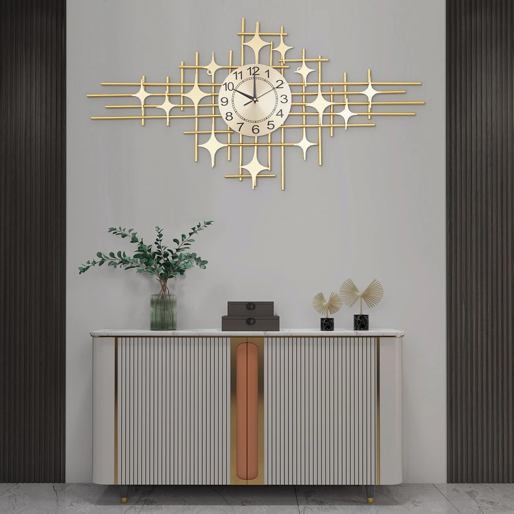 Wall Clock Modern Decorative Wall Clock Large Wall Clock for Living Room Office Description If you're tired of the monotonous wall or want to add more fun to your life, then this beautifully designed wall clock is the ideal addition. It is made of premium materials and adopts exquisite workmanship for excellent durability. It combines artistry and practicality, not only making your home decoration more exquisite, but also helping record your happy time with your lover, family, and friends. Key Features Selected Material : It is mainly made from premium iron with a baking painted process, which has excellent toughness, making this product resistant to rust, abrasion, fade, and corrosion, ensuring a long service life. Excellent Readability: The large dial with bold black numerals and bolded hands makes it clear and easy to read, so you can tell the time at a glance. Exquisite Appearance: The gold appearance embellished with beautiful four-pointed stars makes this product pleasing to the eyes and adds sophistication and taste to your living space. Spending Time with You : The wall-mounted clock records every second of your cozy moments with your family. It is a witness to your good memories. Accurate and Silent: With a premium silent movement and premium clock hands that run smoothly, it ensures a quiet environment while providing accurate time without disturbing learning, work, and sleep. Easy to Clean : The smooth baking paint finish makes it easy to clean. You just need to wipe it gently with a damp cloth (not included). Wall-mounted Design: Using the wall-mounted installation can effectively utilize the free space on the wall and beautify the home environment at the same time. Ideal Gift : With practical function and beautiful appearance, it is an ideal Christmas, Thanksgiving, housewarming, holiday, or birthday gift for your family and friends. Buy with Confidence: We stand behind all our guests and look forward to assisting you with your purchase. It is our pleasure to answer your confusion and questions. The end of the story between us is not "we sell and you buy". Details Aluminum Hands: Aluminum hands with high strength can resist wear and corrosion, which can extend the service life of the clock. Hanging Holes: The hanging holes on the back make the product easy to install on the wall and not easy to fall off. Application It is ideal for living rooms, bedrooms, sitting rooms, kitchens, dining rooms, hotels, offices, bars, cafes, shops, conference rooms, clubs, and so on. It is not only a clock but also a great decoration. How to Install Determine where nails will be installed. Secure the nails with a hammer (not included). Align the nail with the wall clock. Complete the installation easily and conveniently. Specifications Material: Iron, Aluminum Process: Baking Paint Color: Gold Style: Modern Indoor/Outdoor Use: Indoor Mounting Type: Wall Mounted Display Type: Pointers+ Numbers Power Source: Battery Powered Battery Type: 1* AA Battery(Not Included) Movement Type: Silent Movement Thickness: About 20mm/0.79in Gross Weight: 2.6kg/5.73lbs Net Weight: 2kg/4.41lbs Product Size(L*H): 100*50cm/39.37*19.69in Package Size: 101*55*8cm/39.76*21.65*3.15in Package Included 1* Wall Clock Other Accessorie s for Installation Notes Please avoid using it on rotting wood and peeling walls. Please use 1 AA battery(not included), please do not use alkaline batteries and some rechargeable batteries, as this can affect the lifespan and inaccurate timing of exercise. Please allow the slight color difference caused by the shooting light and 1-3cm error due to manual measurement, and make sure you do not mind before you order. Payment Delivery details Terms of sales About us Contact us Payment We accept ebay payment 。 Fees such as import duties, taxes are not included in the item price or shipping costs. These charges are the buyer's responsibility. Delivery details Shipping: 2-9 working days to: USA Terms of sales We maintain high standards of excellence and strive for hundred percent customer satisfaction. Feedback is very important to us. We hope that you contact us immediately before you give neutral or negative feedback, so that we can address your concerns. It is impossible to address issues if we do not know about them! About us Your satis faction is our ultimate goal. We work hard to earn your trust and future business. Our certified technicians have tested each item before shipping. The unit comes with 1 year limited warranty on all manufacturing defects. a) If you receive a defective item, you may return it or ask for a discount. Please contact us within 14 days after you receive the package. b) What you returned must be intact and in its original packaging as re? u. Customer is responsible for shipping costs of the returned item. c) We will cover the cost of shipping back t with the shipping rate indicated in the registration page. We will send you a new unit or refund the full payment you paid. Thank you. Contact us Business Hour Business Hour: Monday To Friday: 8:30 AM to 5:00 PM (Beijing China time) Due to time zones, our reply to your questions may not be immediately. But within above working time, we will reply your email within 24 hours. If it's non-workdays, please kindly be patient and wait till Monday. Please contact us with ebay message. Please feel free to contact us if you have any questions. Monday To Friday: 8:30 AM to 5:00 PM (Beijing China time) Due to time zones, our reply to your questions may not be immediately. But within above working time, we will reply your email within 24 hours. If it's non-workdays, please kindly be patient and wait till Monday. Please contact us with ebay message. Please feel free to contact us if you have any questions. Features high performance,good stability Fe'a'tu're's ★Stable performance and high quality★ Brand Unbranded Type wall clock UPC Does not apply