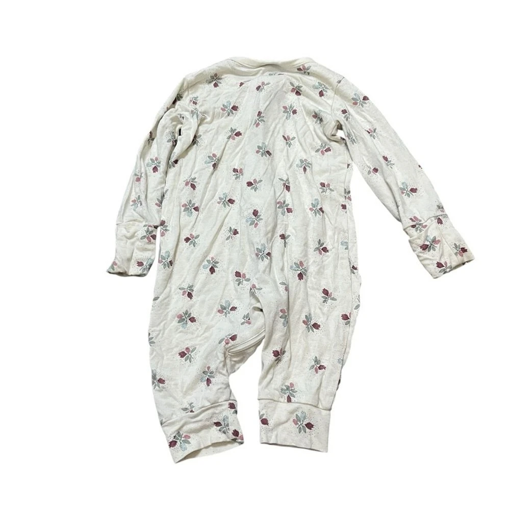 Adorable cream one piece with a charming floral pattern. Perfect for keeping your little one cozy and stylish. Bamboo viscose. Super soft. Comfy one piece long sleeve long pants pajamas In good preowned condition.